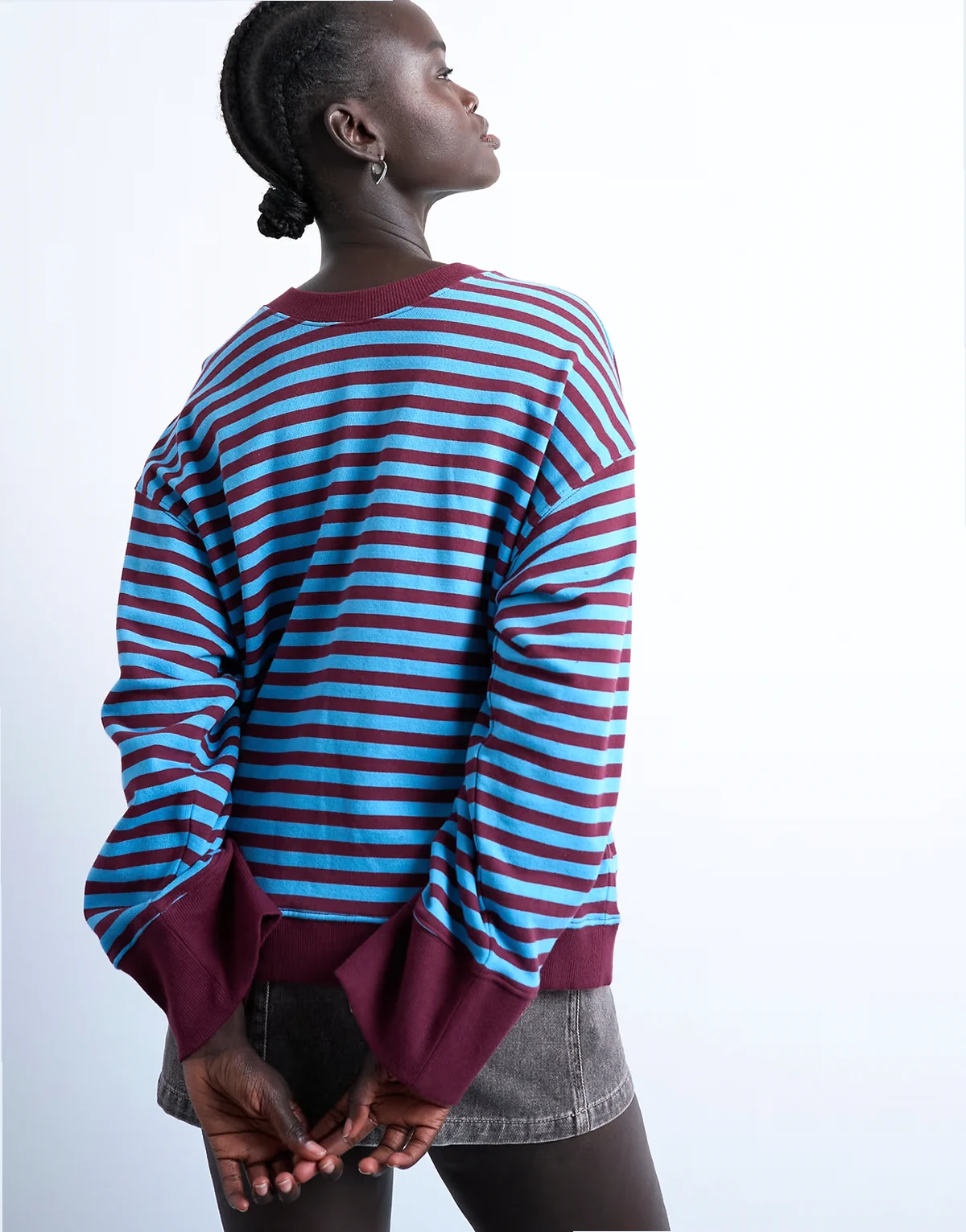Dieses T-Shirt besteht aus weichem, elastischem Jersey und ist mit einem Streifenmuster versehen. Mit Rundhalsausschnitt und überschnittenen Schultern bietet dieses Modell eine lockere Passform für ein lässiges Tragegefühl.