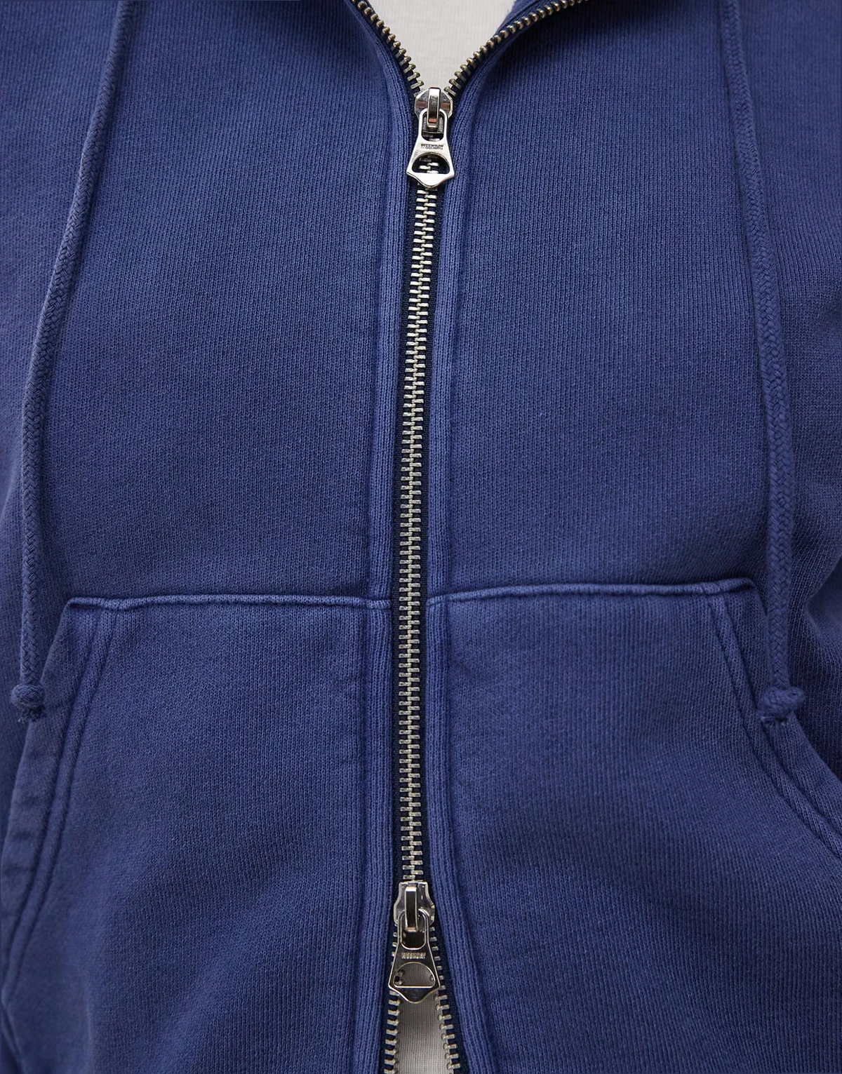 – Schmal geschnittene, figurbetonte Kapuzenjacke in Dunkelblau mit durchgehendem Reißverschluss
