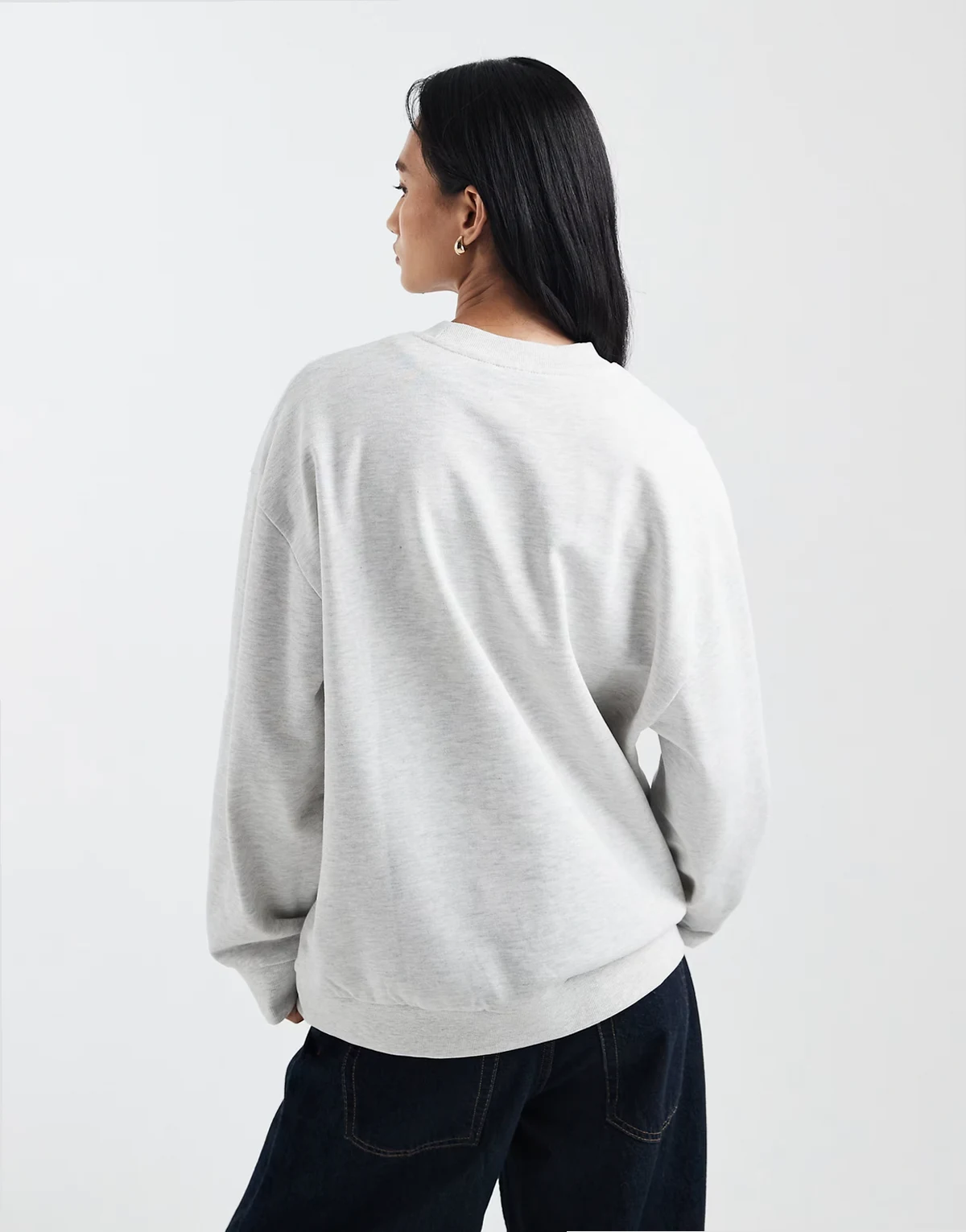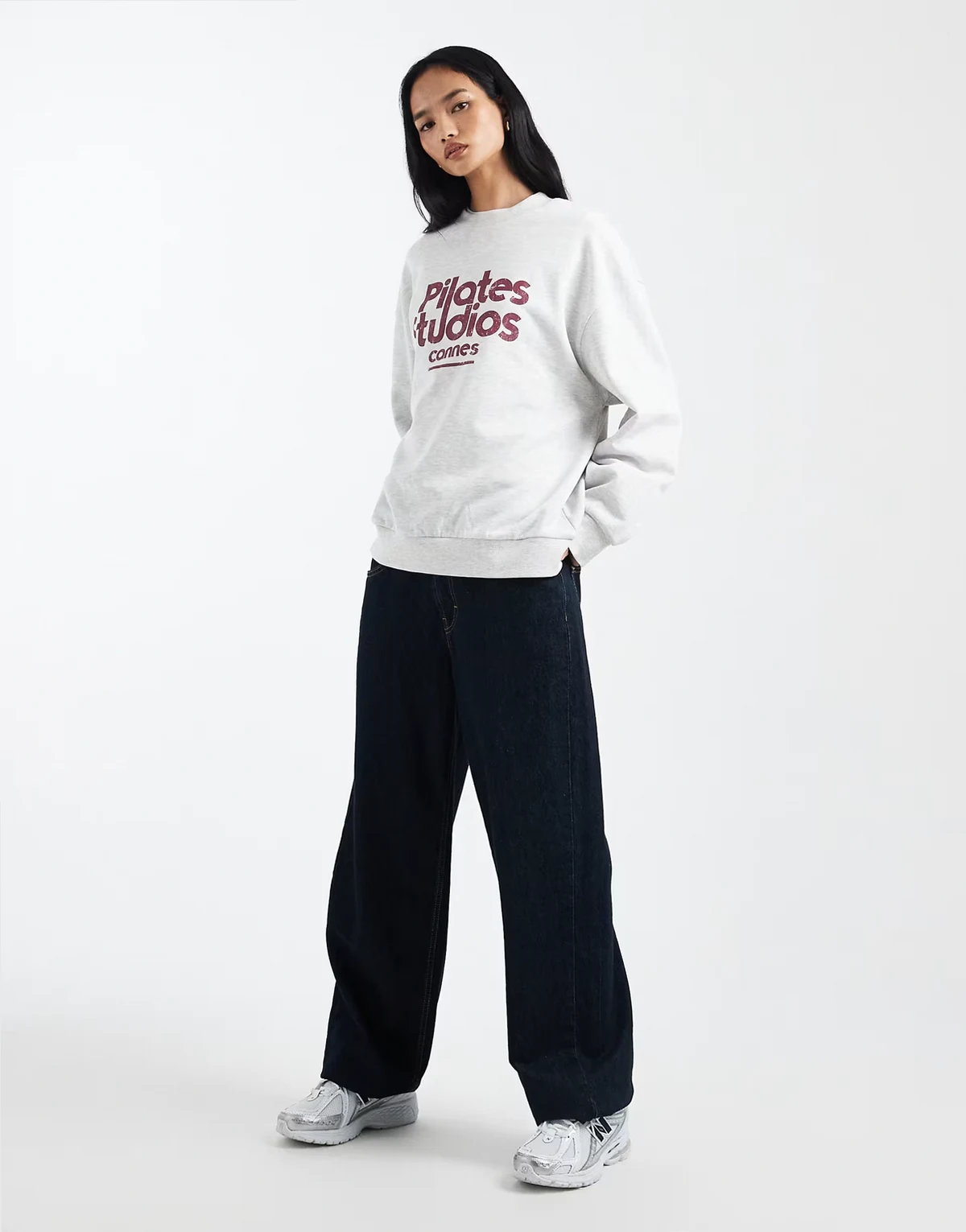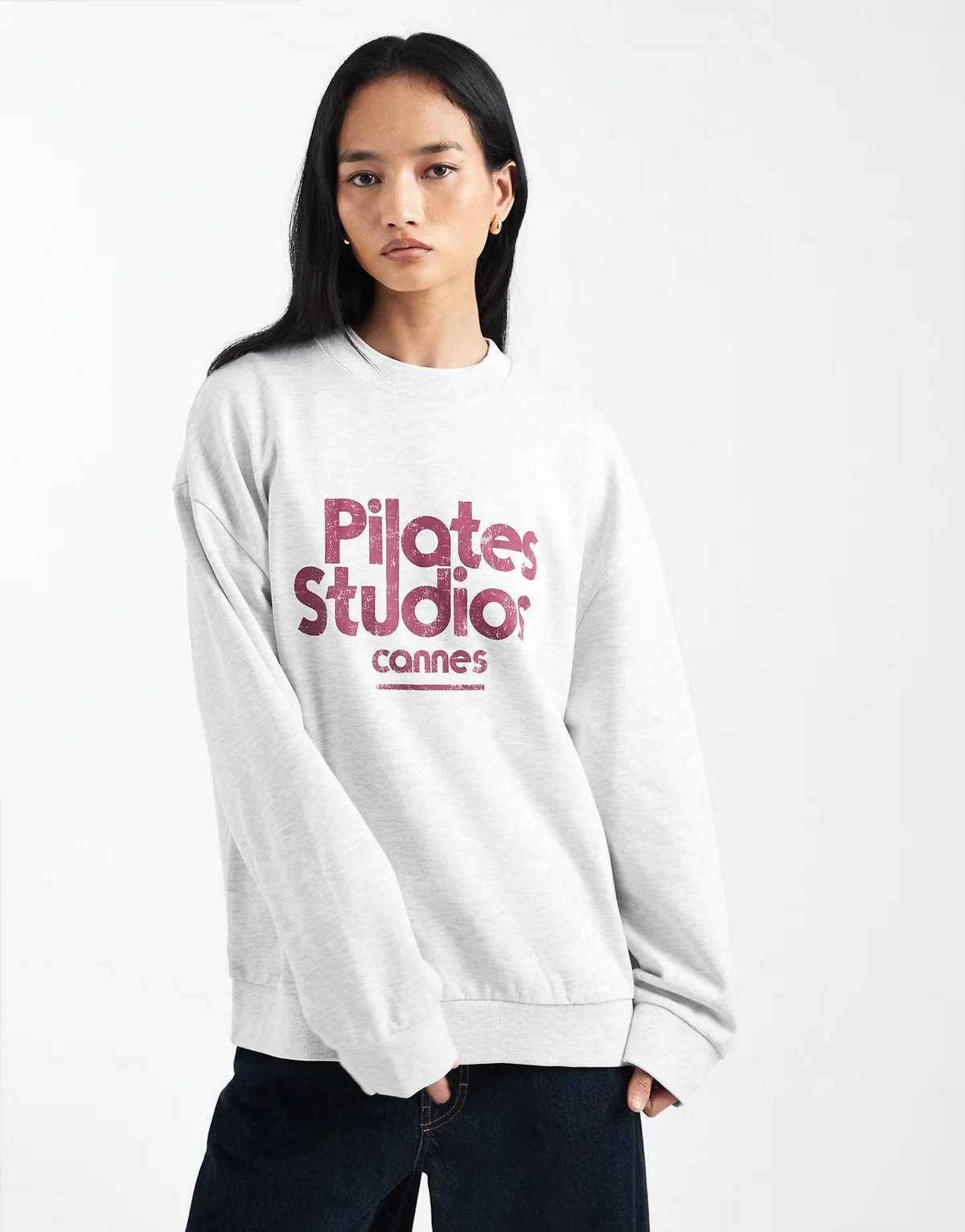 – Oversize-Sweatshirt in meliertem Eisgrau mit „Pilates Studio“-Grafikprint