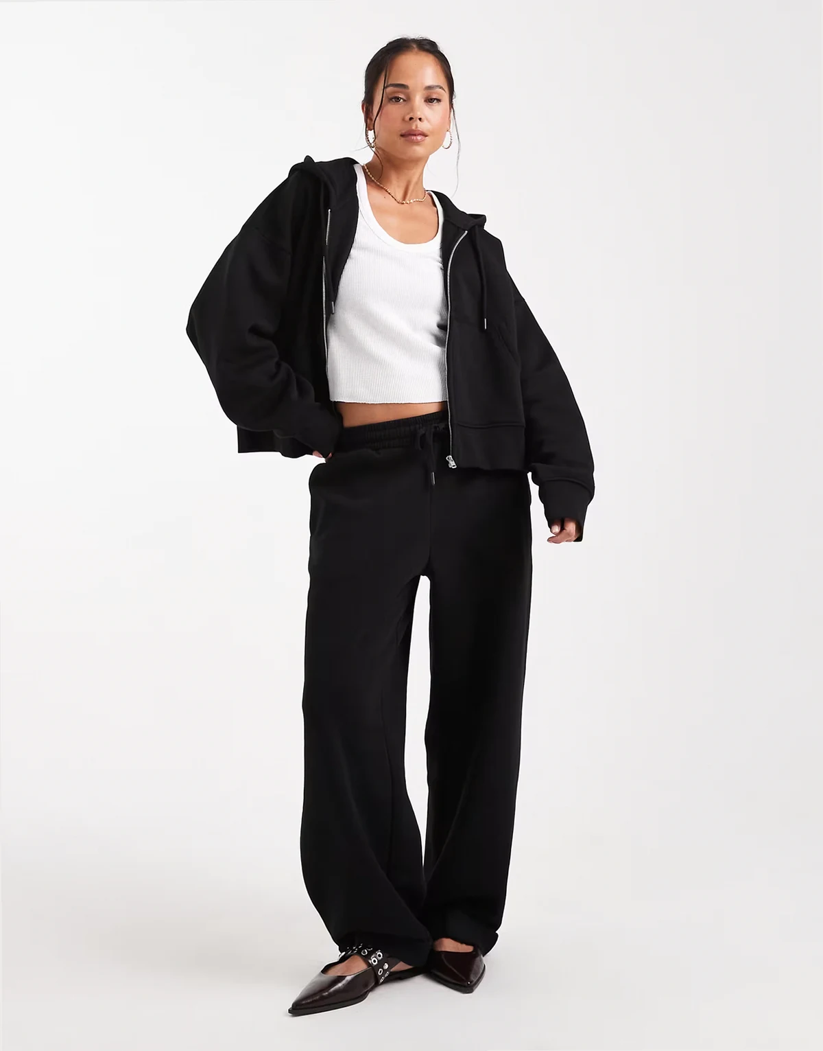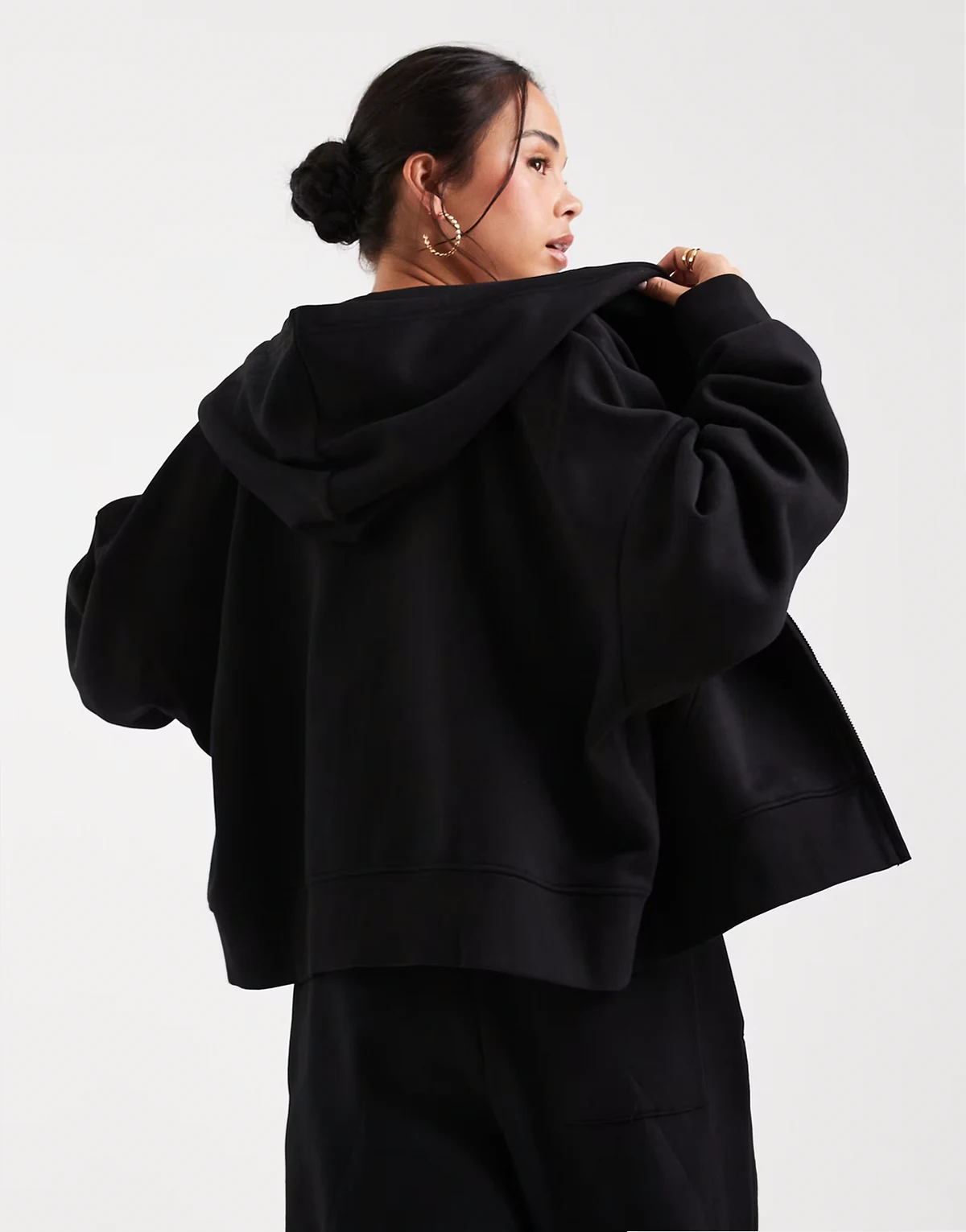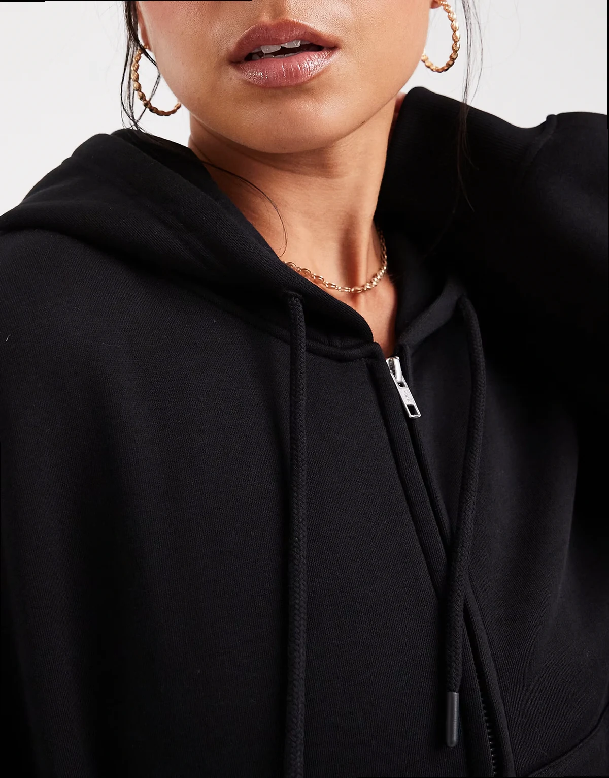 – Cropped-Kapuzenjacke in Schwarz mit weicher Innenseite und Reißverschluss
