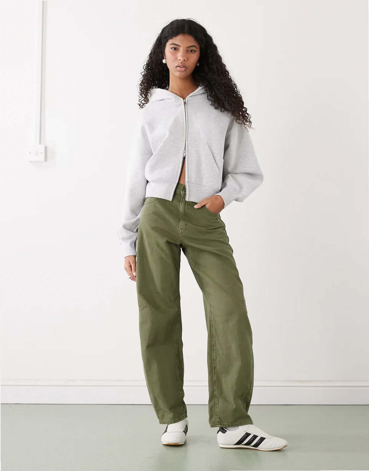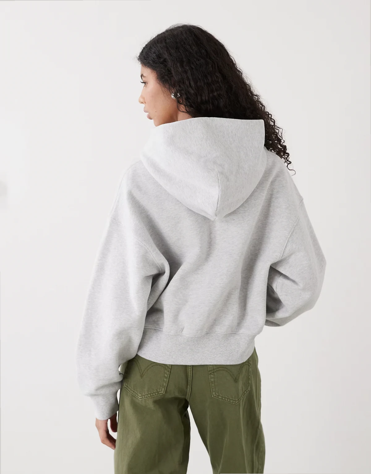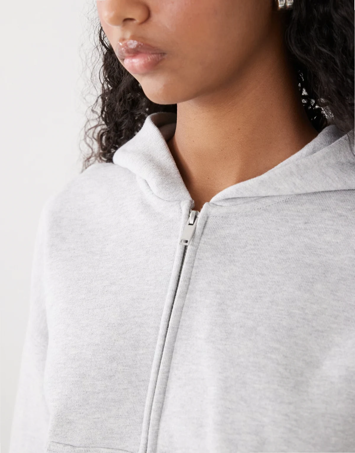– Kastig geschnittene Cropped-Kapuzenjacke in Grau meliert mit Reißverschluss