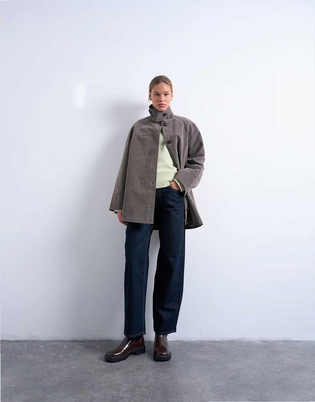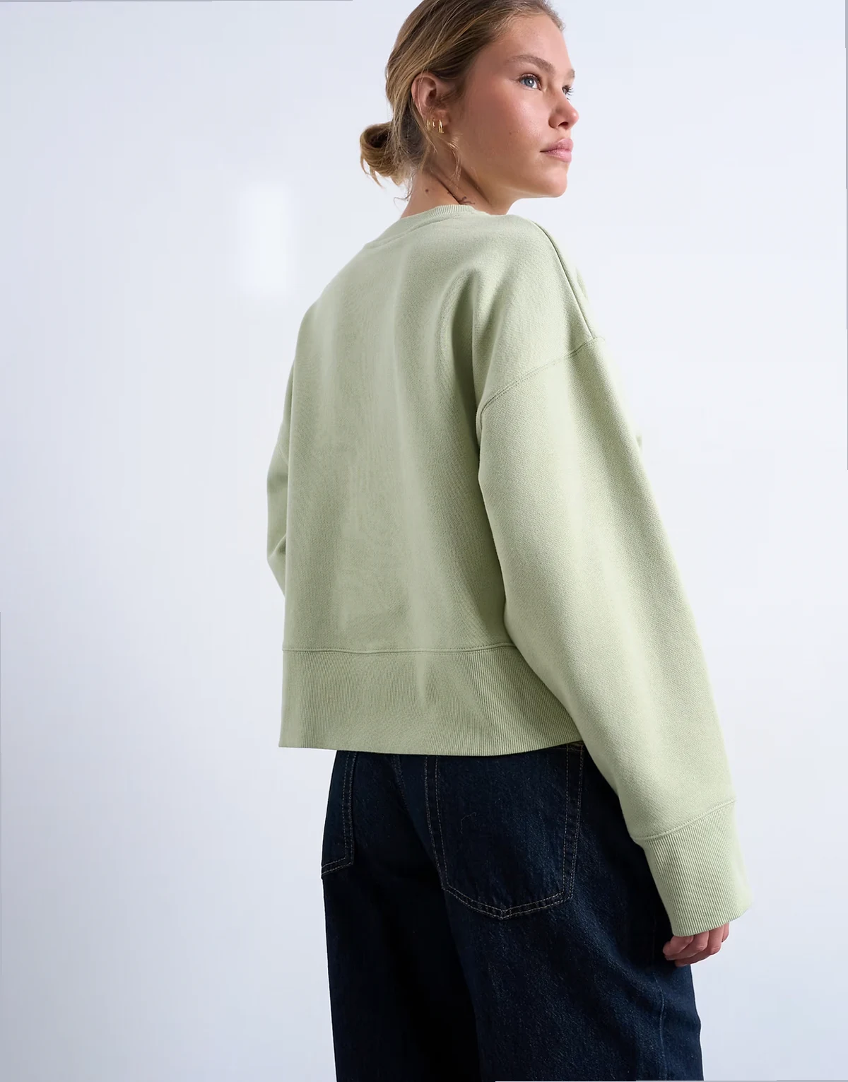 Dieses Sweatshirt ist aus schwerem Jersey in einem hellgrünen Farbton gefertigt. Dieses Modell mit Rundhalsausschnitt und überschnittenen Schultern ist mit breiten, gerippten Besätzen versehen und in einer kastenförmigen Passform geschnitten.