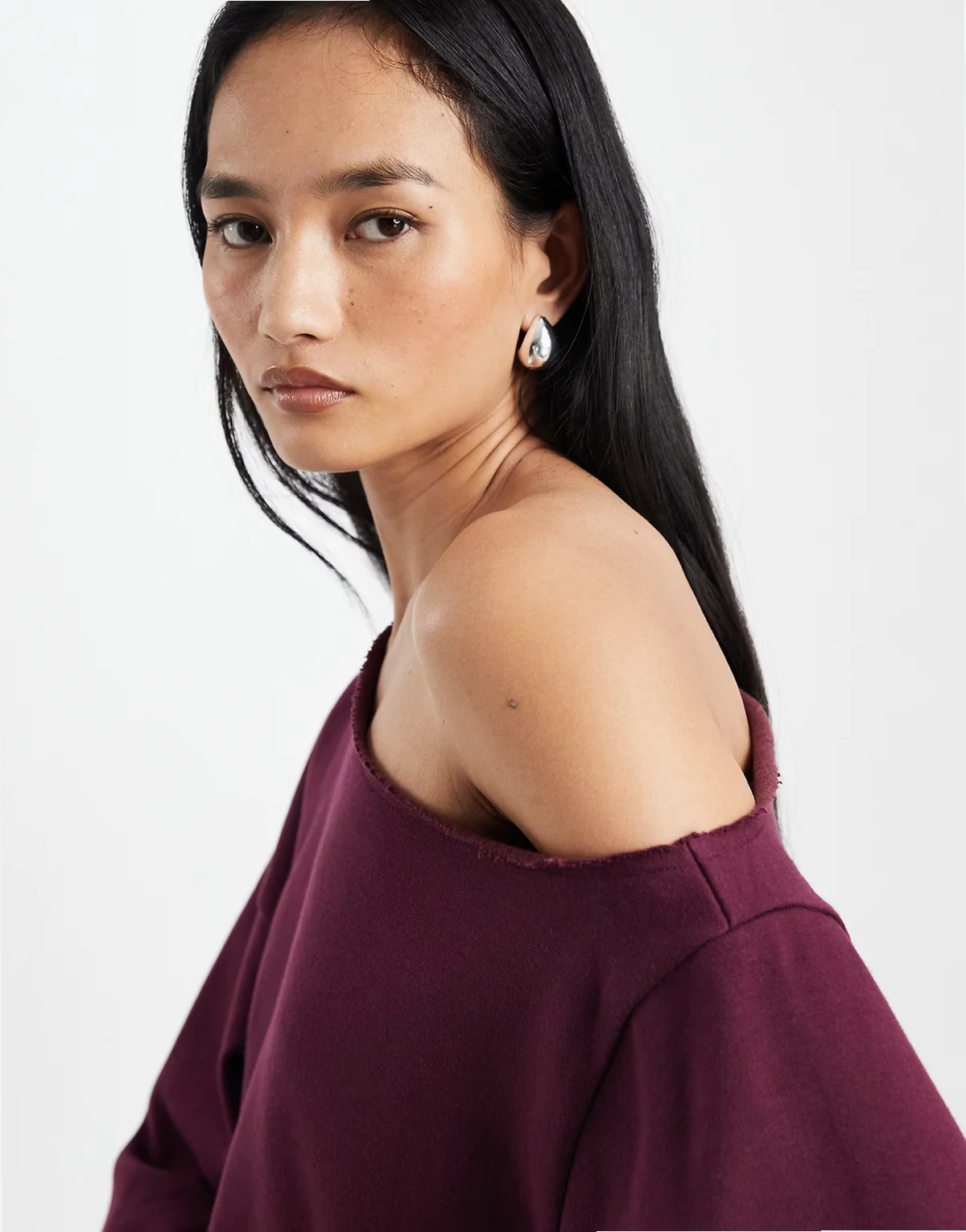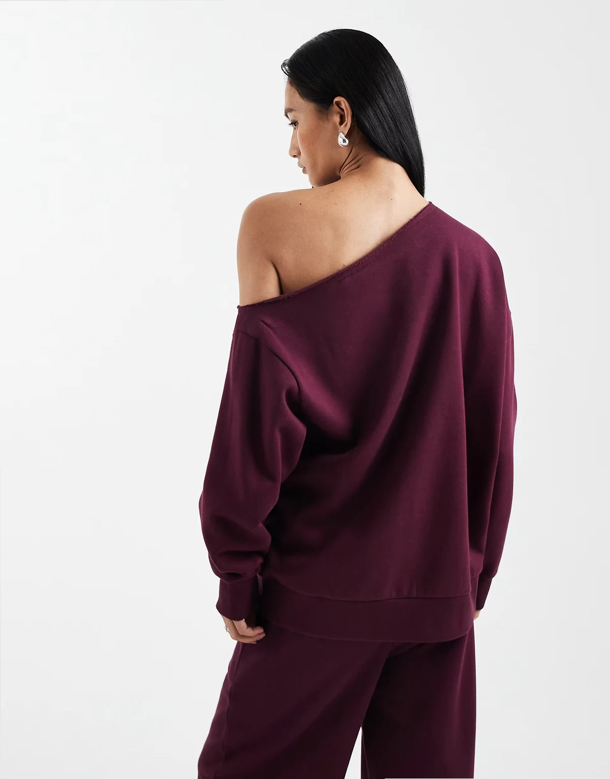 – Schulterfreies Sweatshirt in Pflaume mit weicher Innenseite