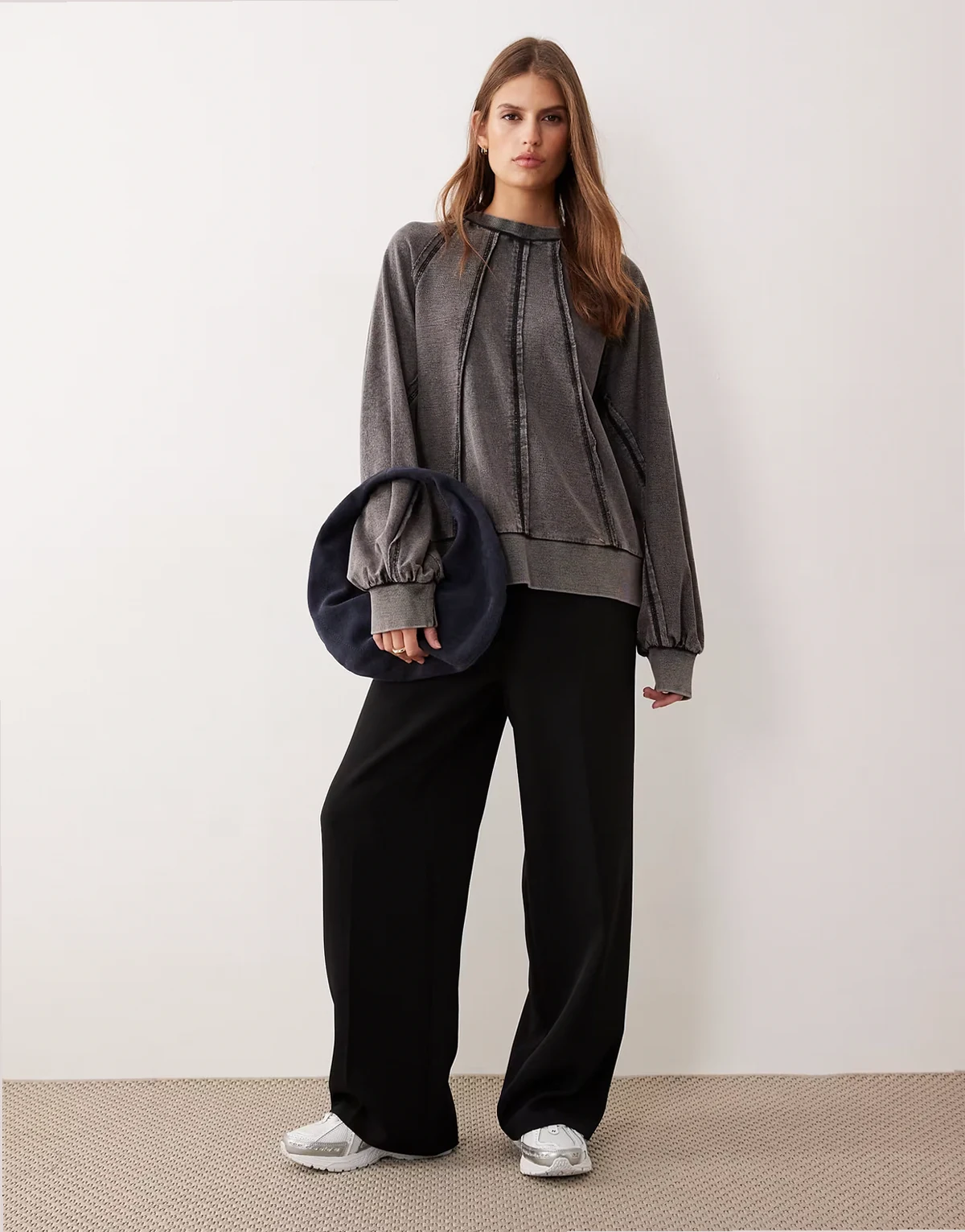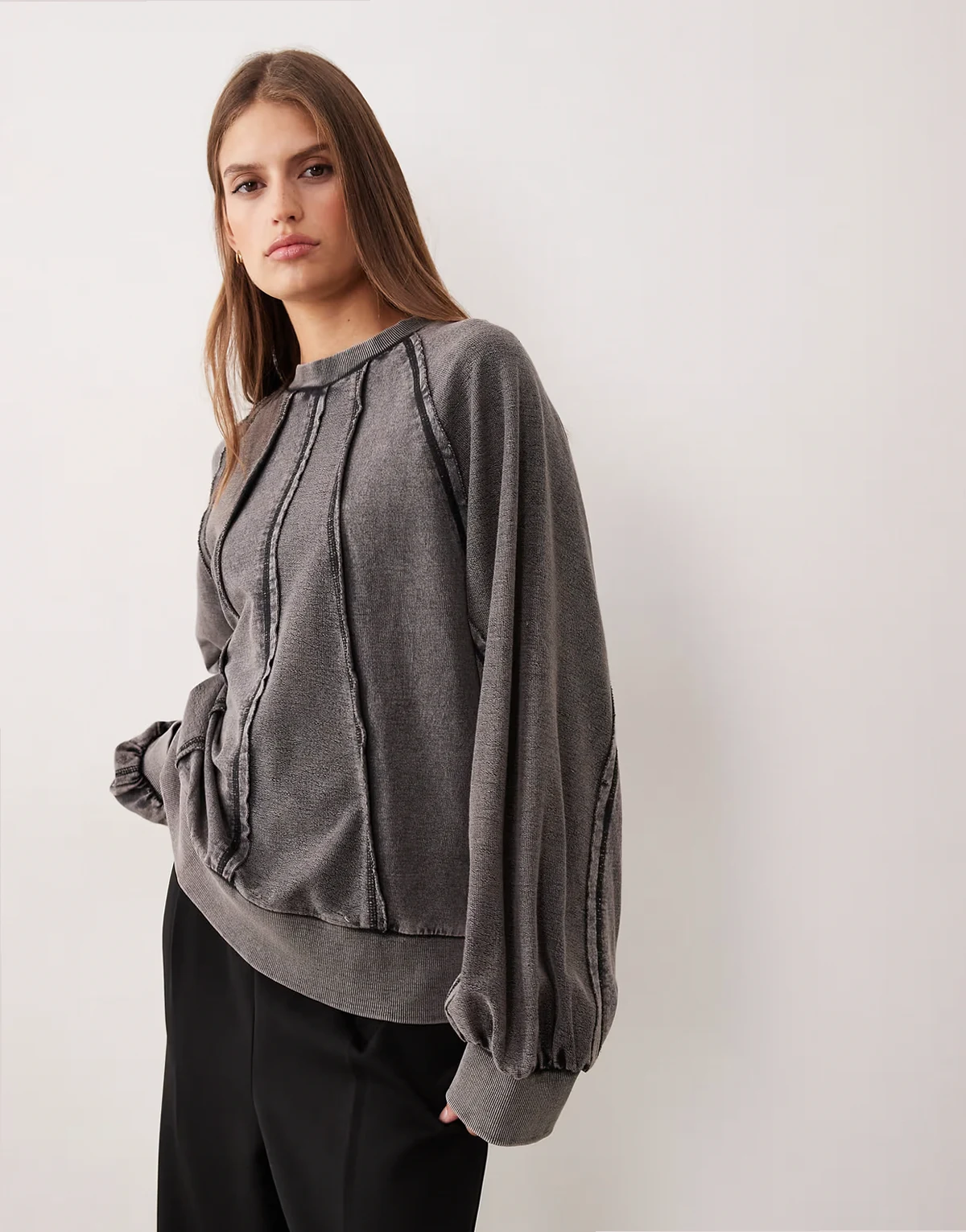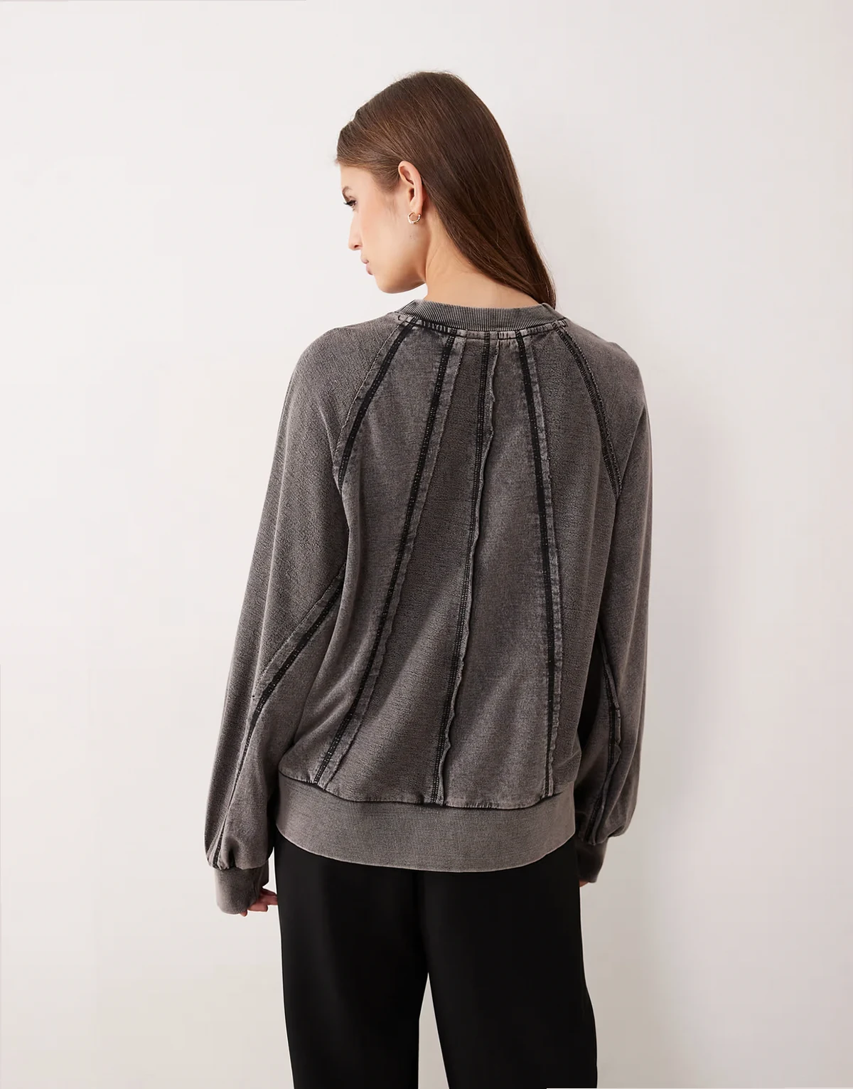 – Gesäumtes Sweatshirt in verwaschenem Anthrazit mit Einsätzen