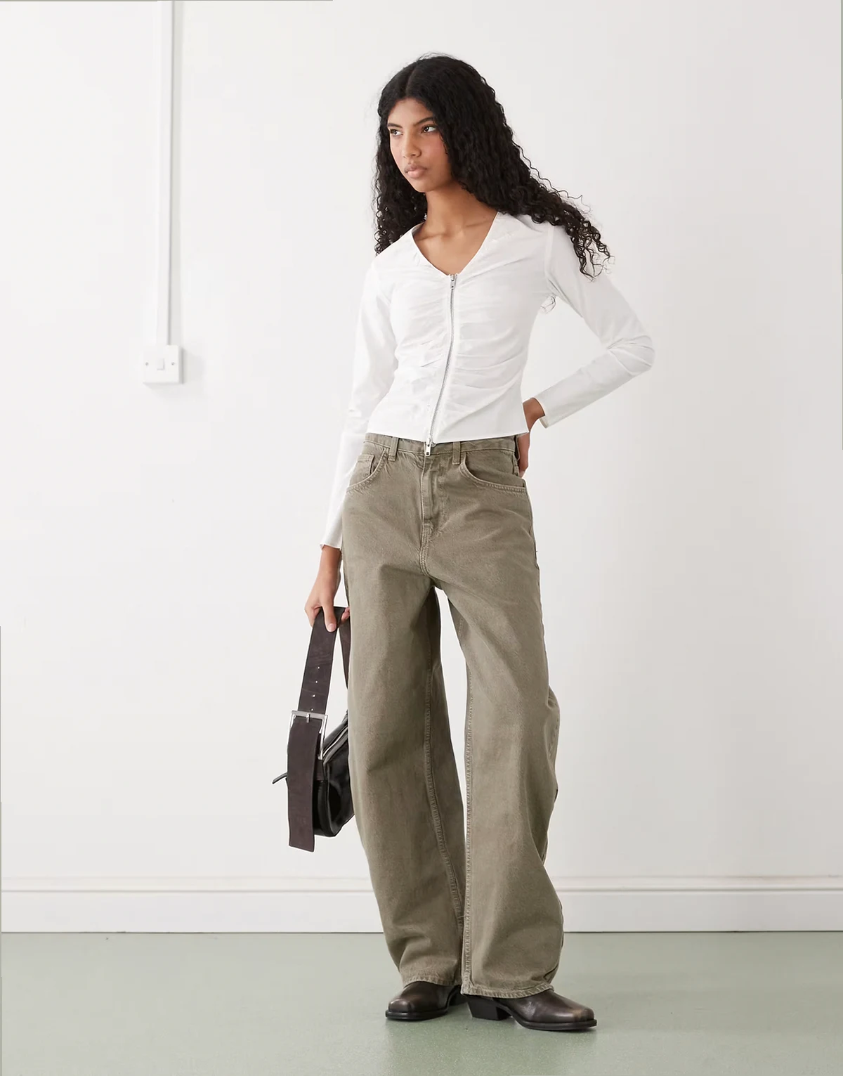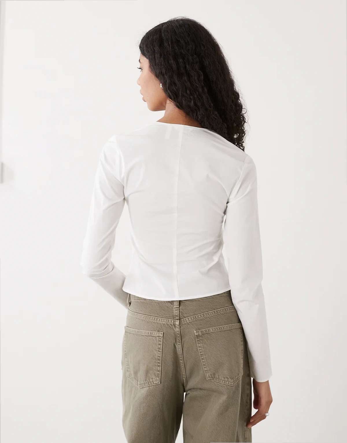 – Langärmlige Bluse in Weiß mit Raffung und Reißverschluss