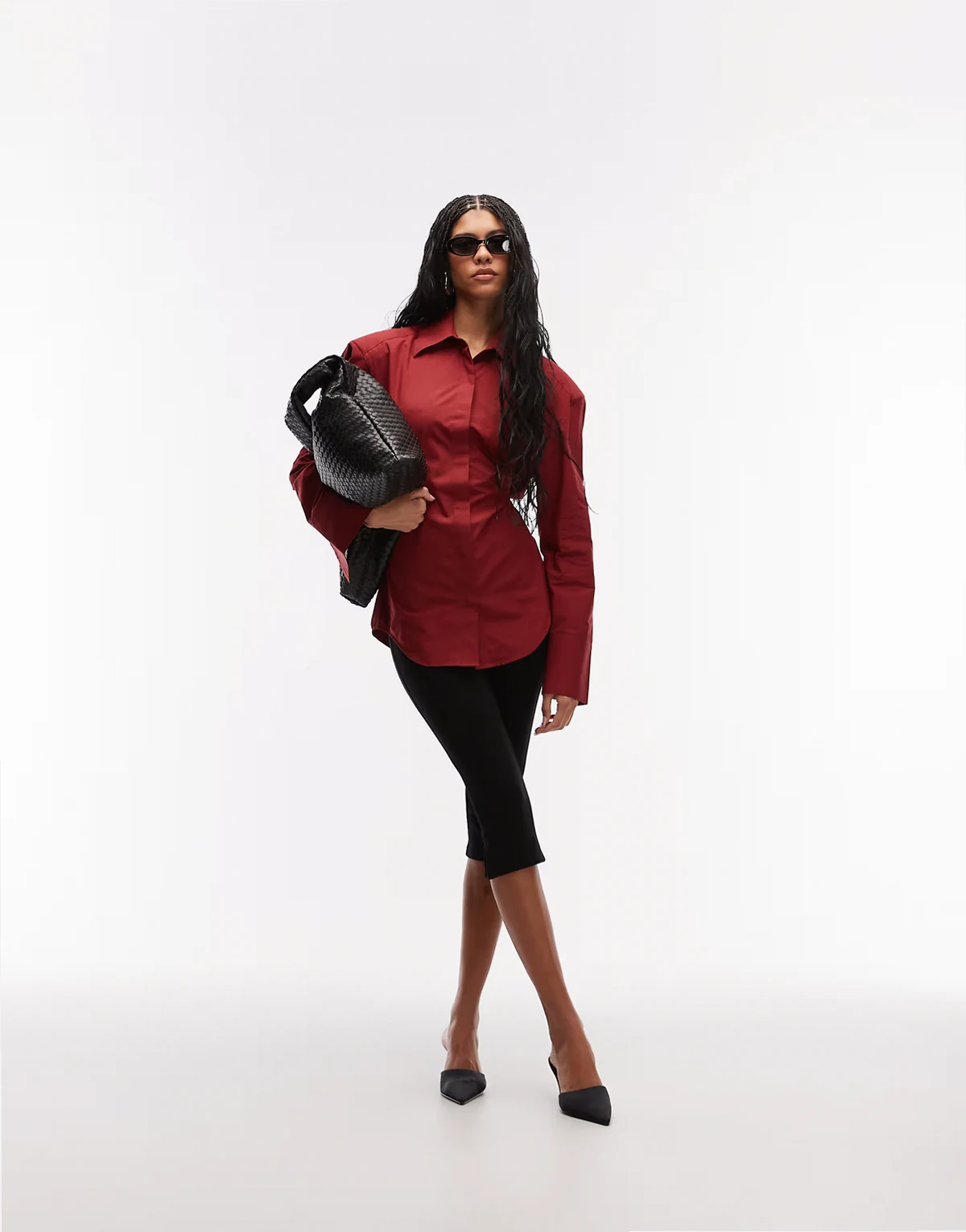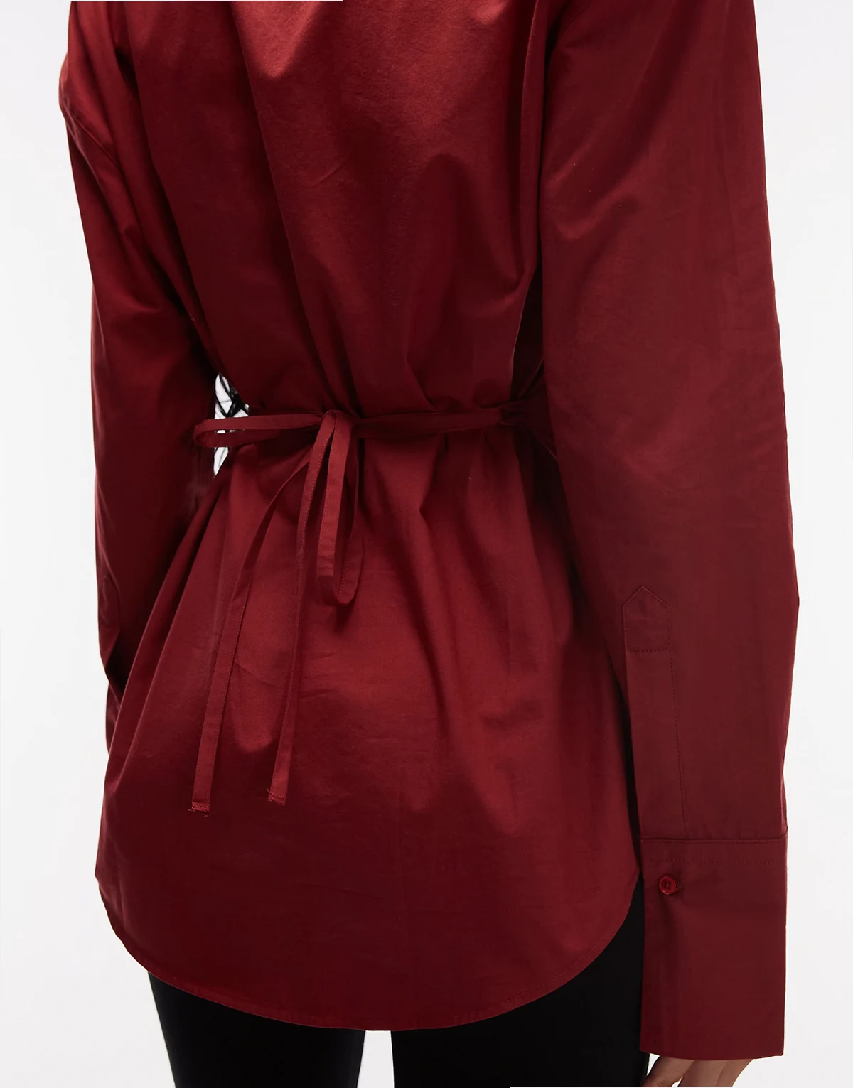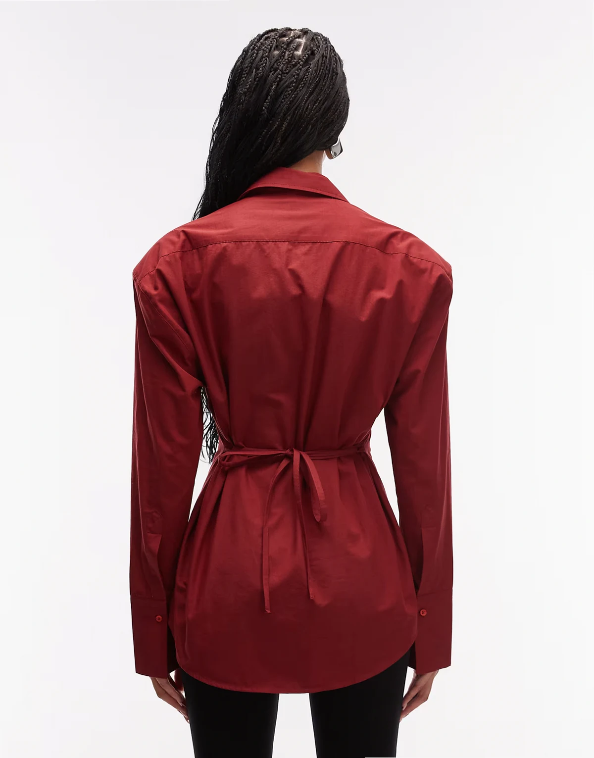 – Hemd in Rot mit Raffung, Schulterpolstern und Schnürung am Rücken