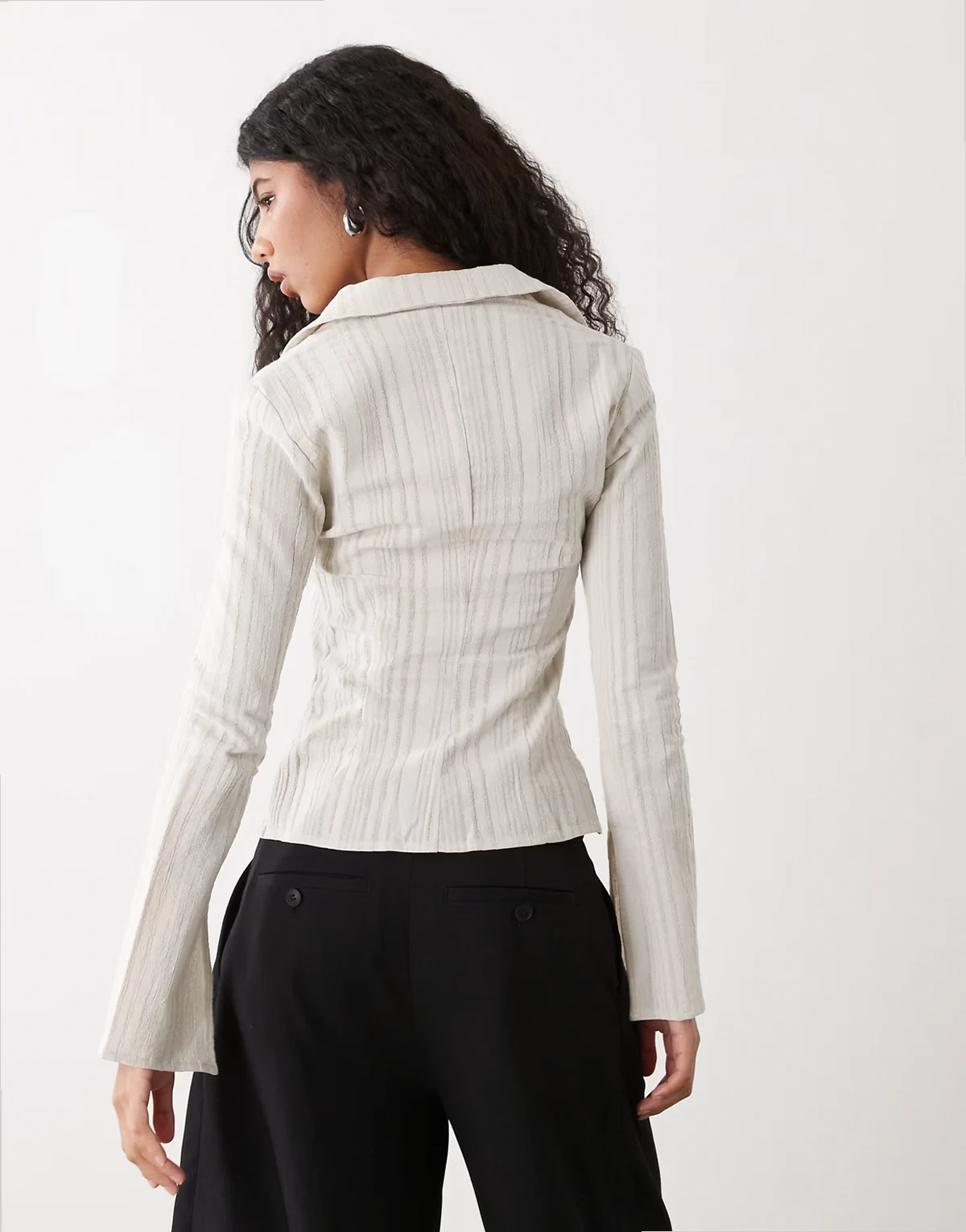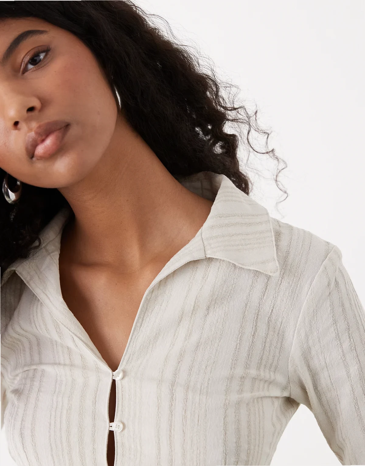 – Langärmlige Hemdbluse in gestreiftem Beige mit Knopfleiste