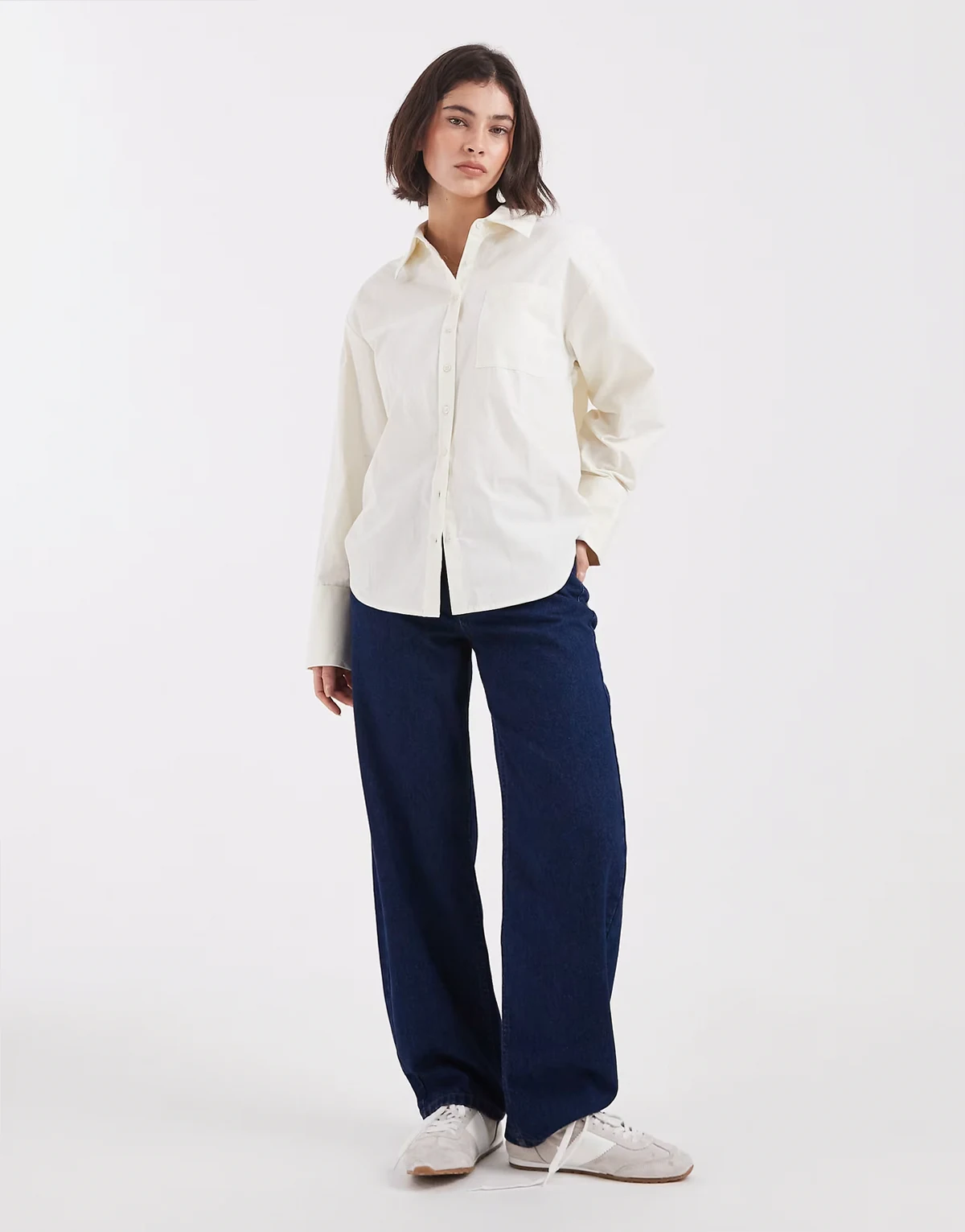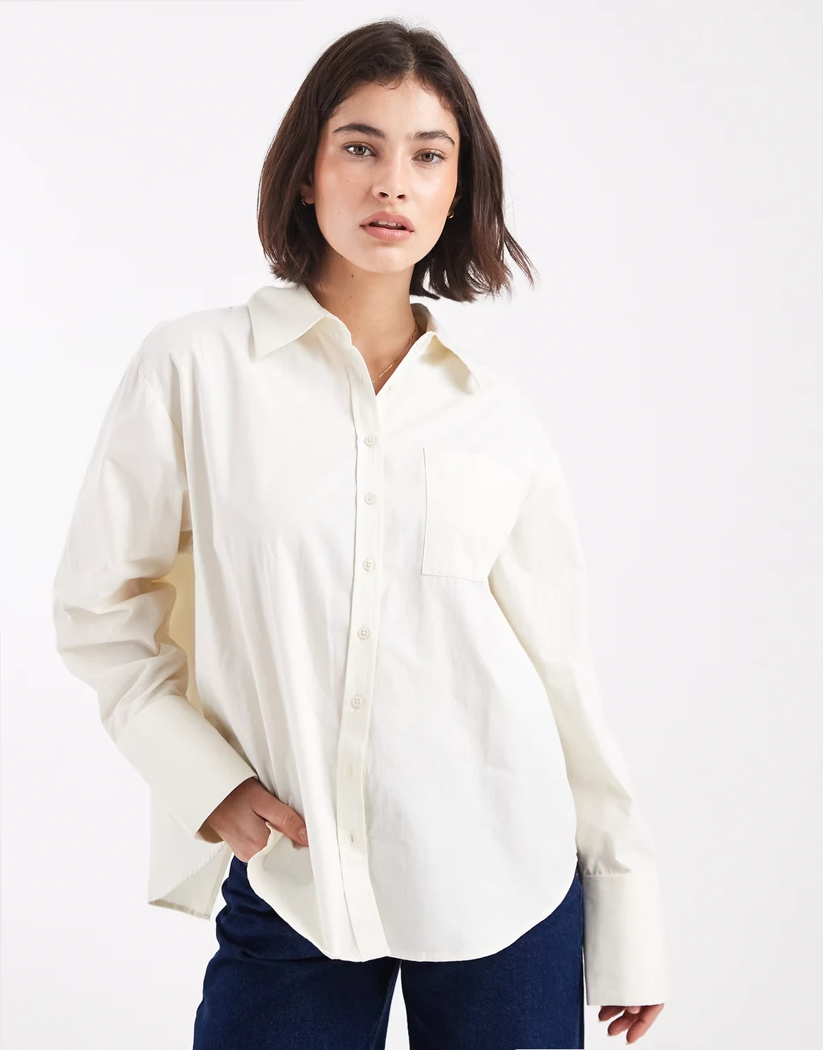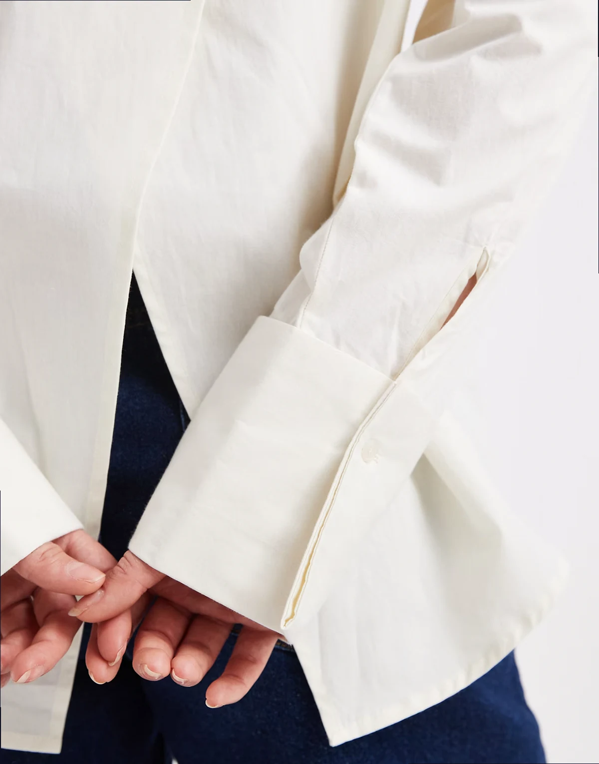 – Oversize-Hemd in Cremeweiß mit Wickeldetail