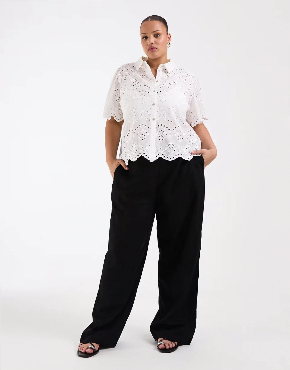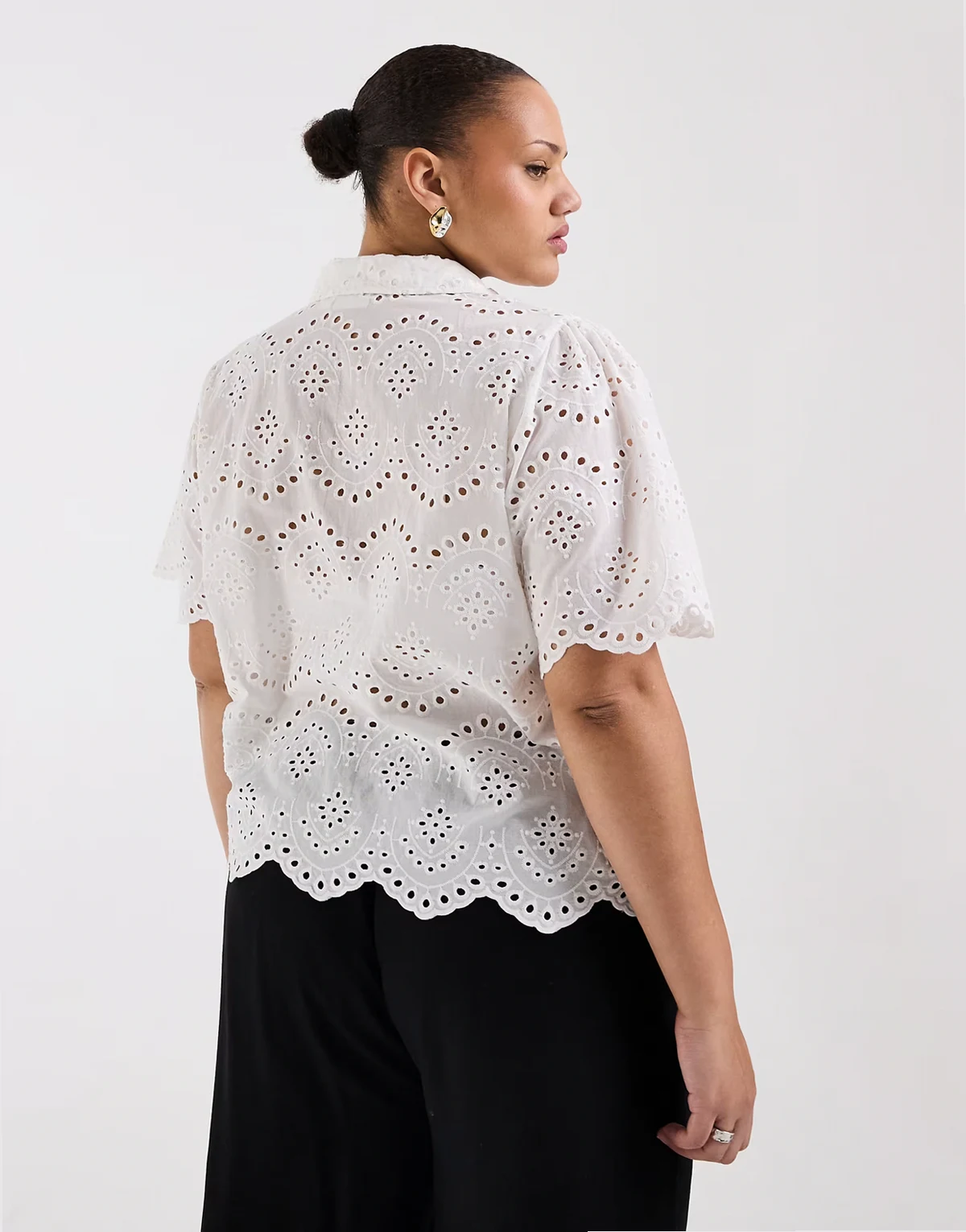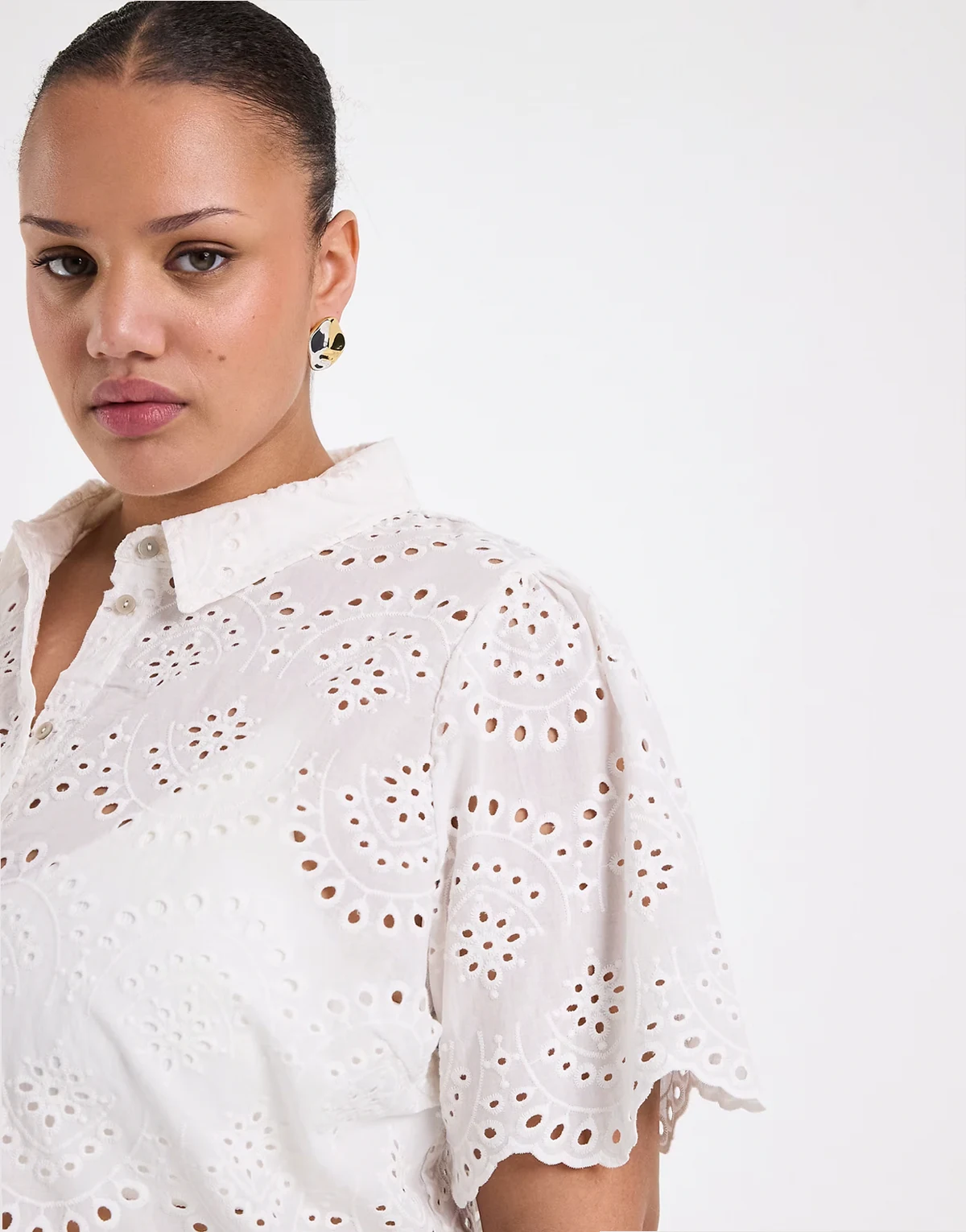 – Kurzärmlige Pointelle-Hemdbluse in Weiß