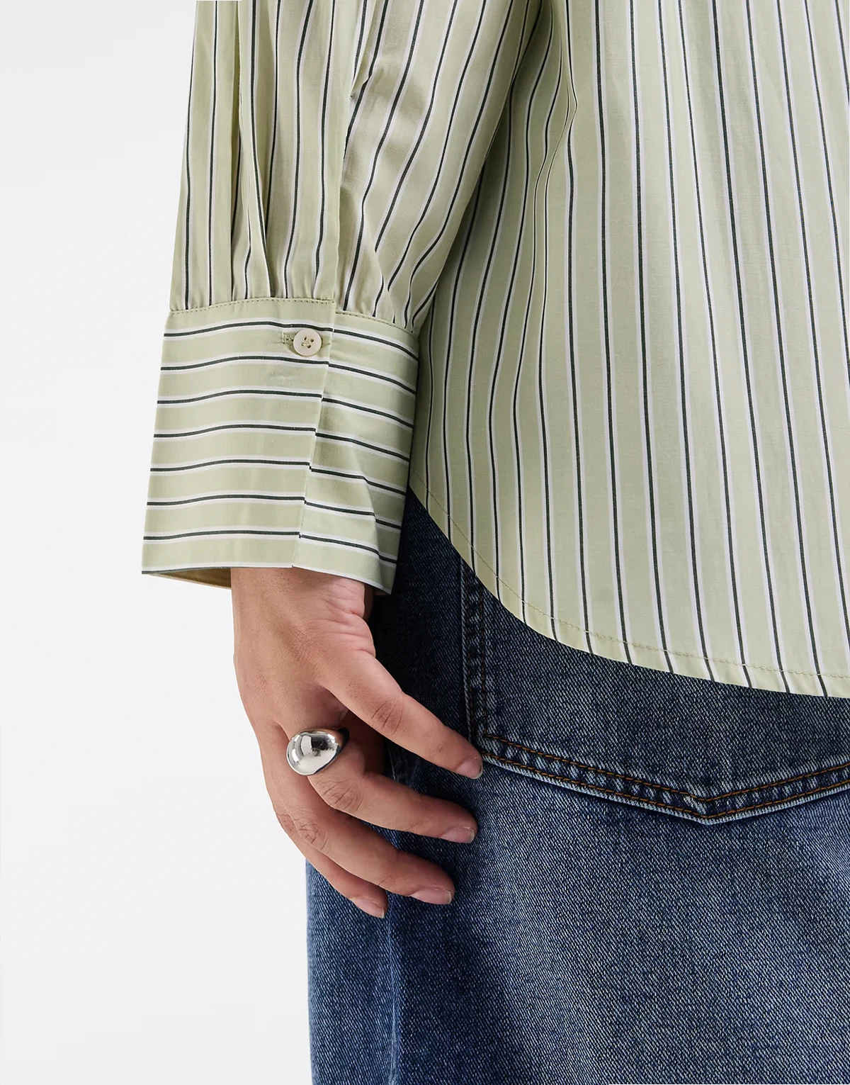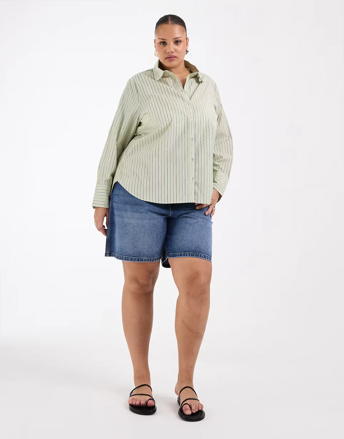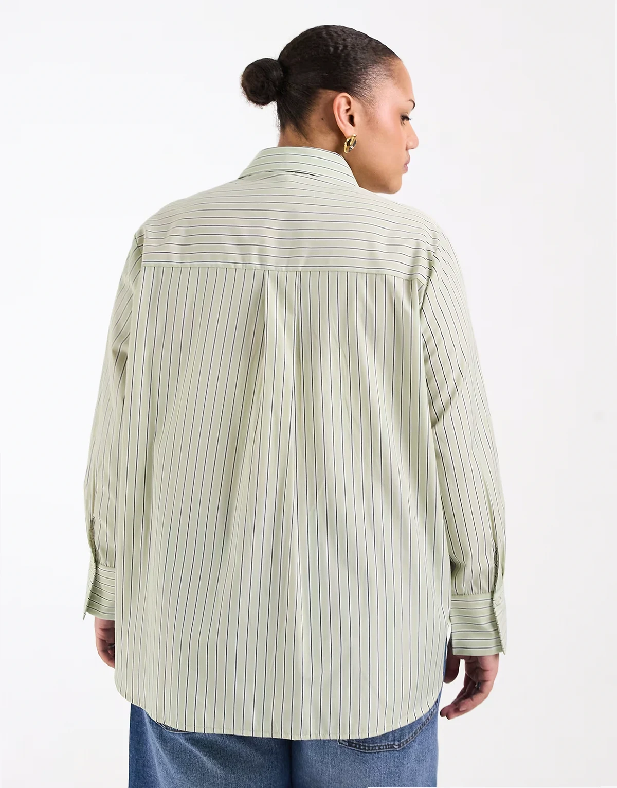 – Langärmlige Hemdbluse in Grün mit Streifen