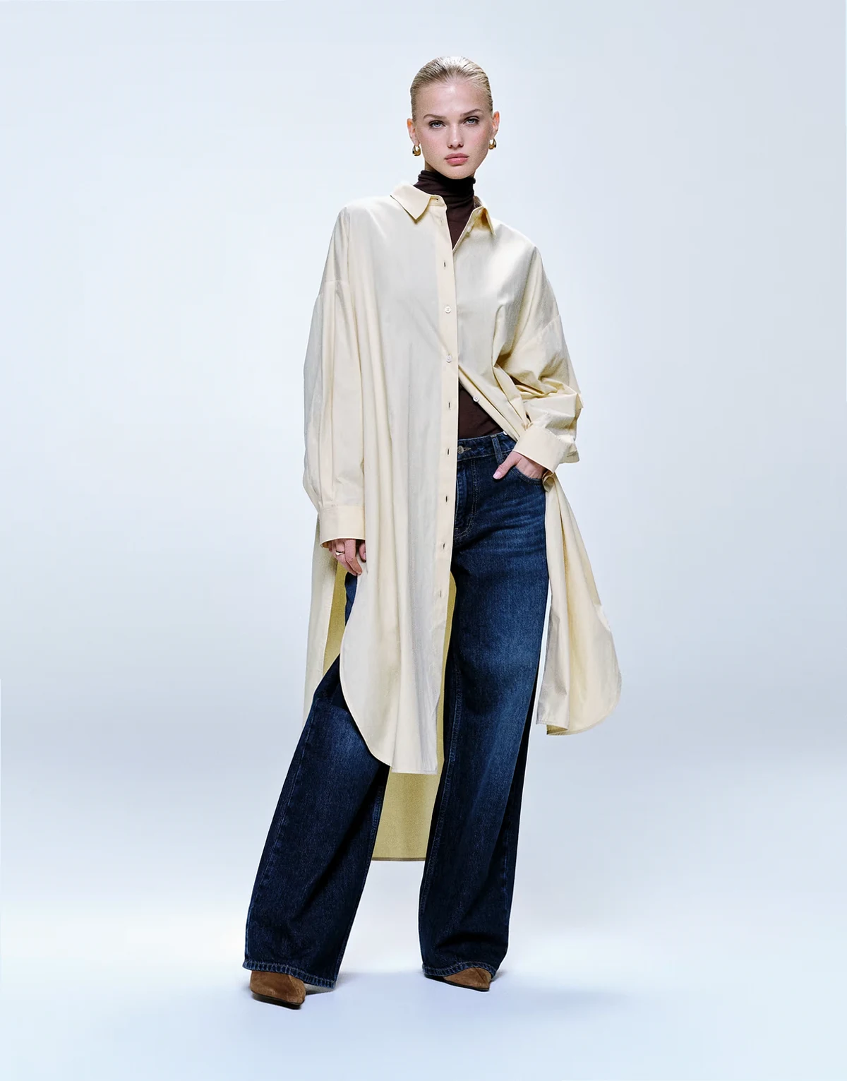 – Longline-Hemd in Buttergelb mit abgerundetem Saum