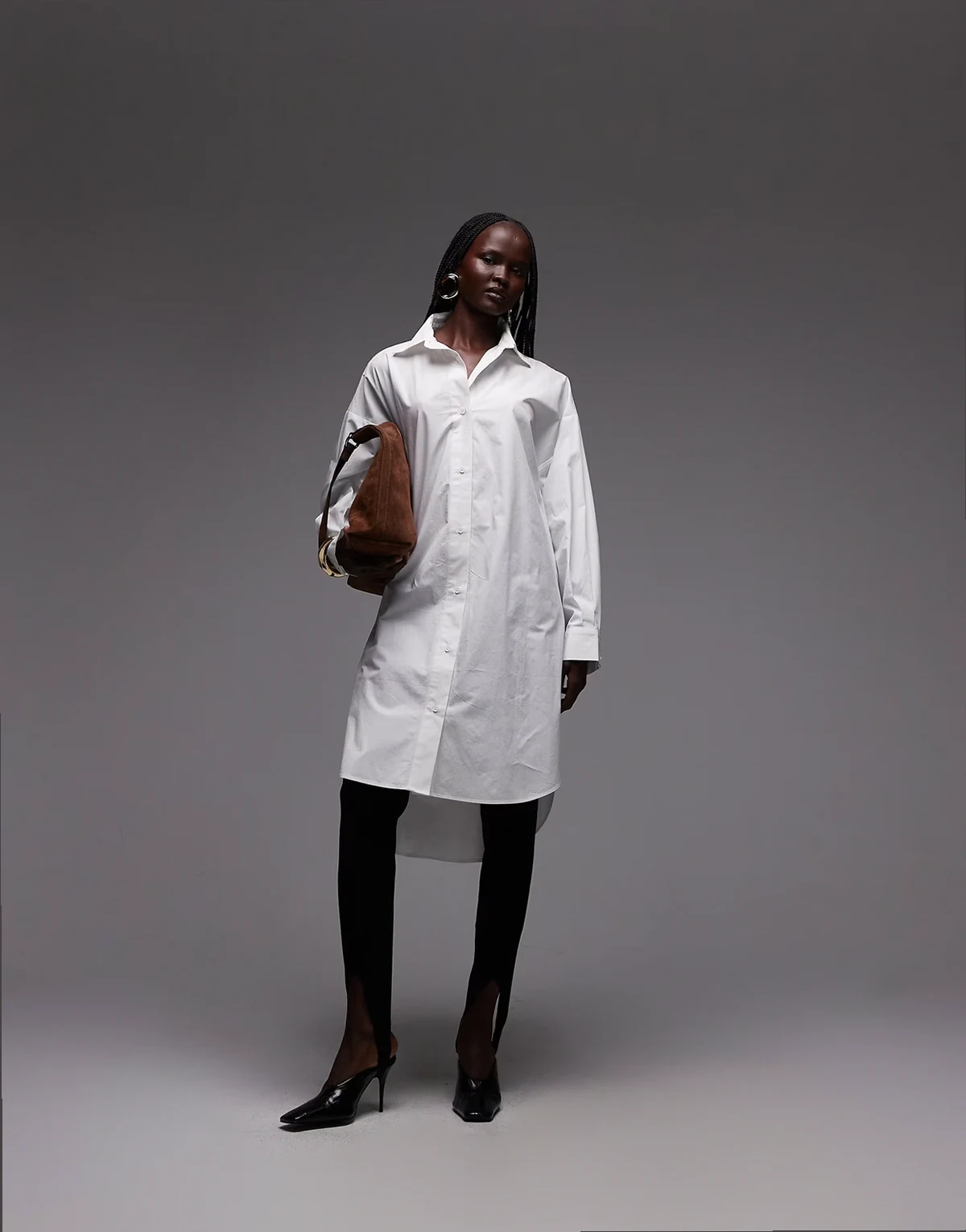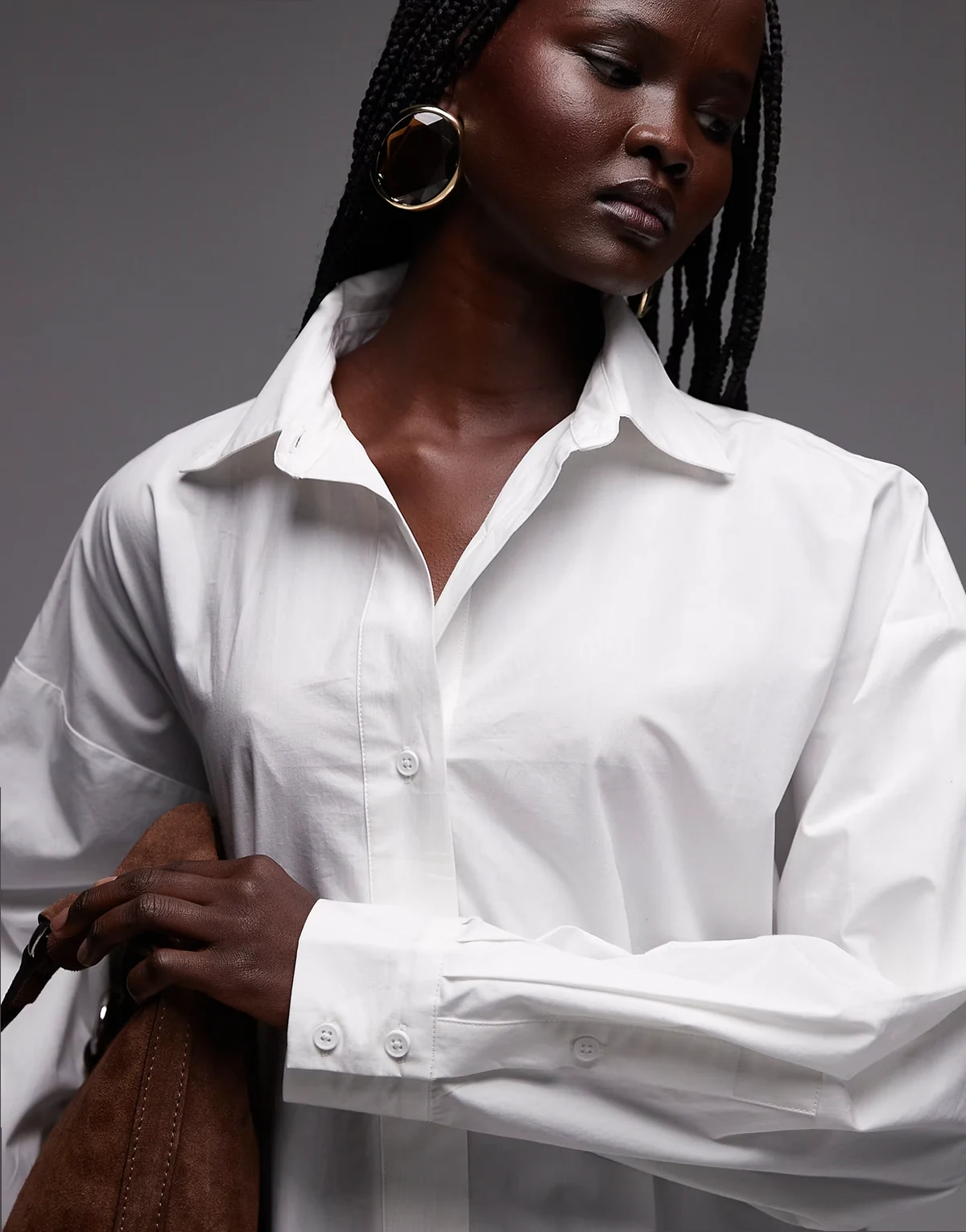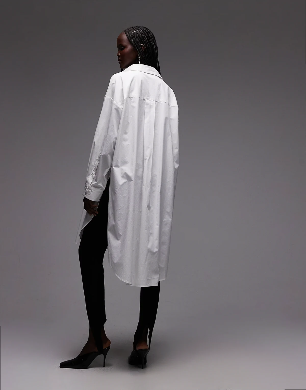 – Longline-Oversize-Hemd in Weiß mit breiten Manschetten