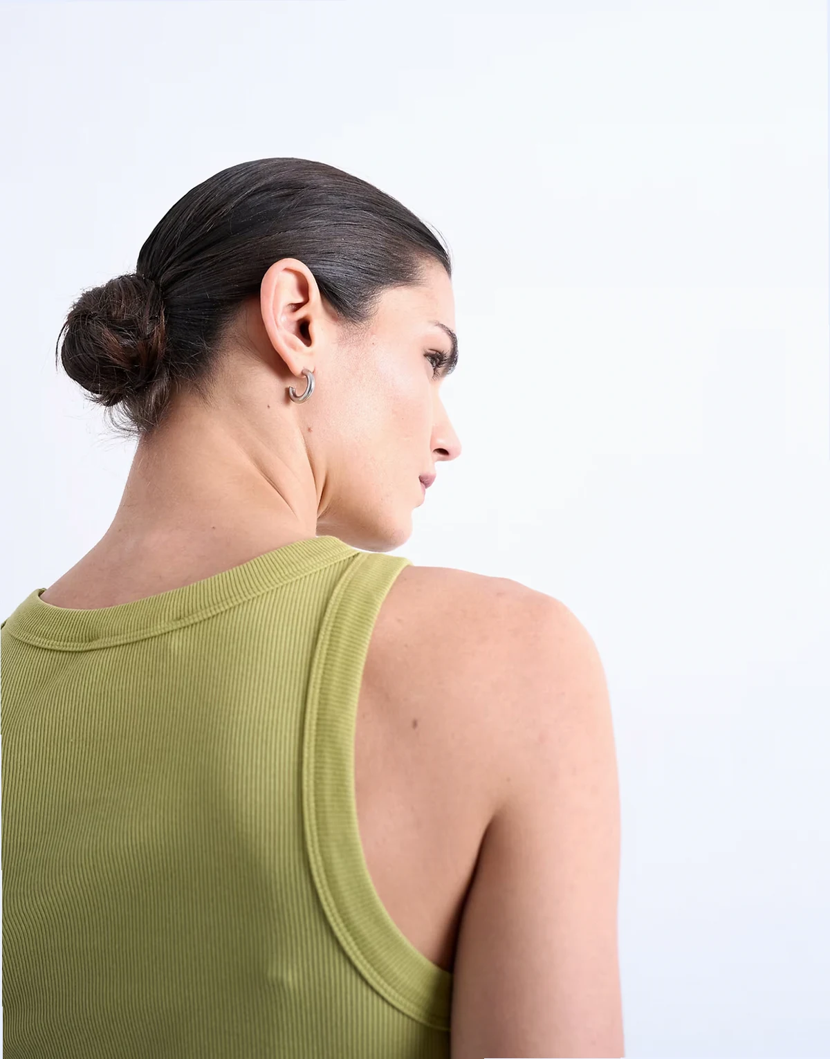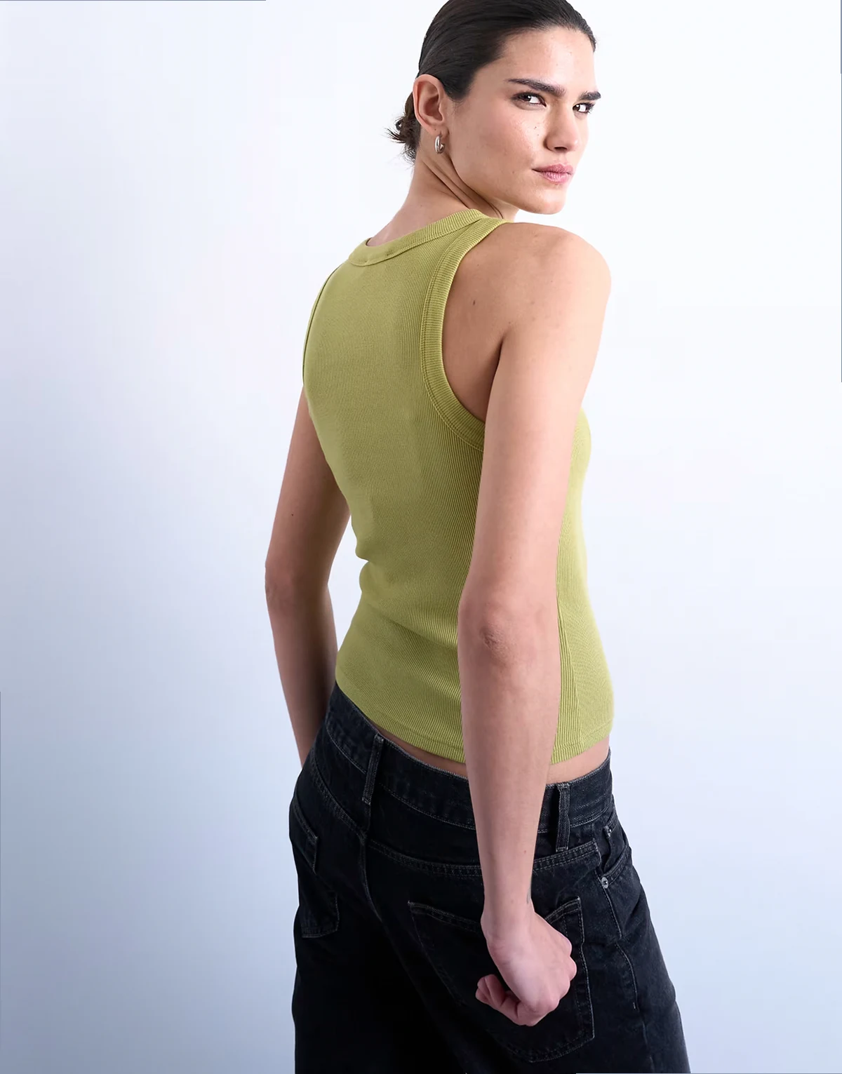 – Geripptes Trägertop in Olivgrün mit Ringerrücken