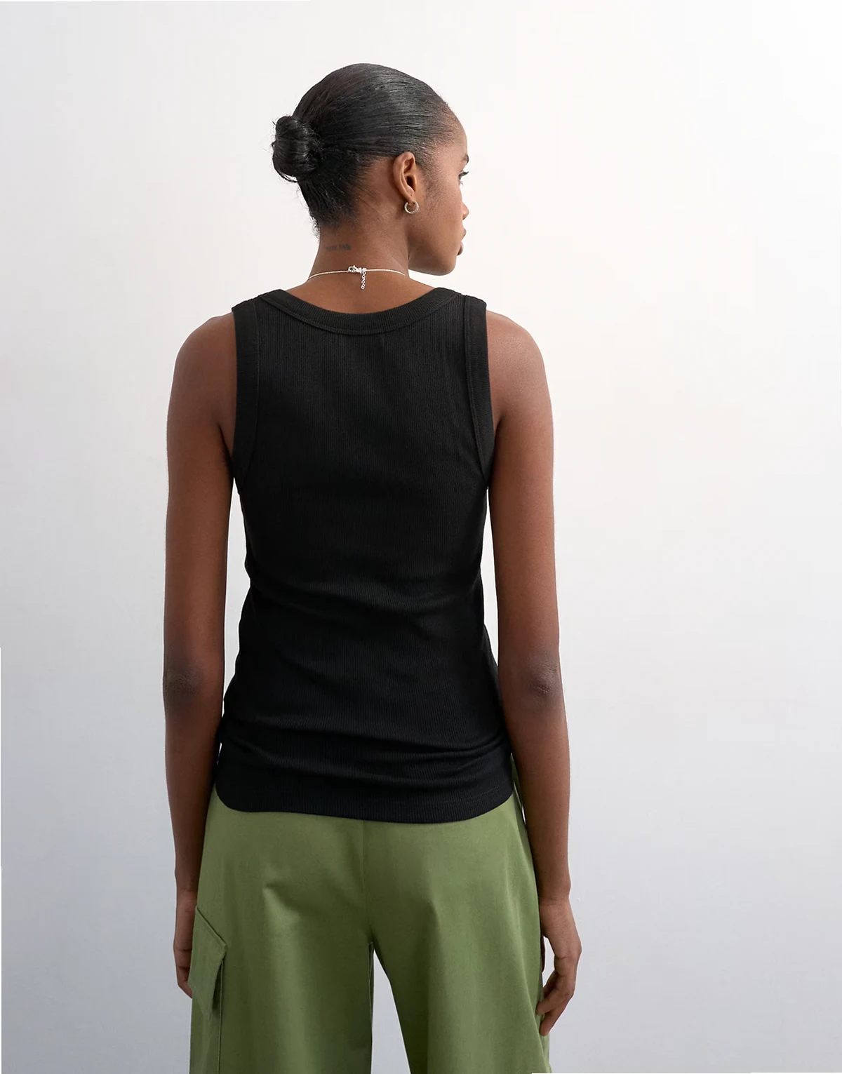 Dieses Westen-Trägertop ist aus geripptem Jersey in einem zeitlosen Schwarz gefertigt. Das ärmellose Modell wird durch einen U-Ausschnitt und eine schmale Passform abgerundet.