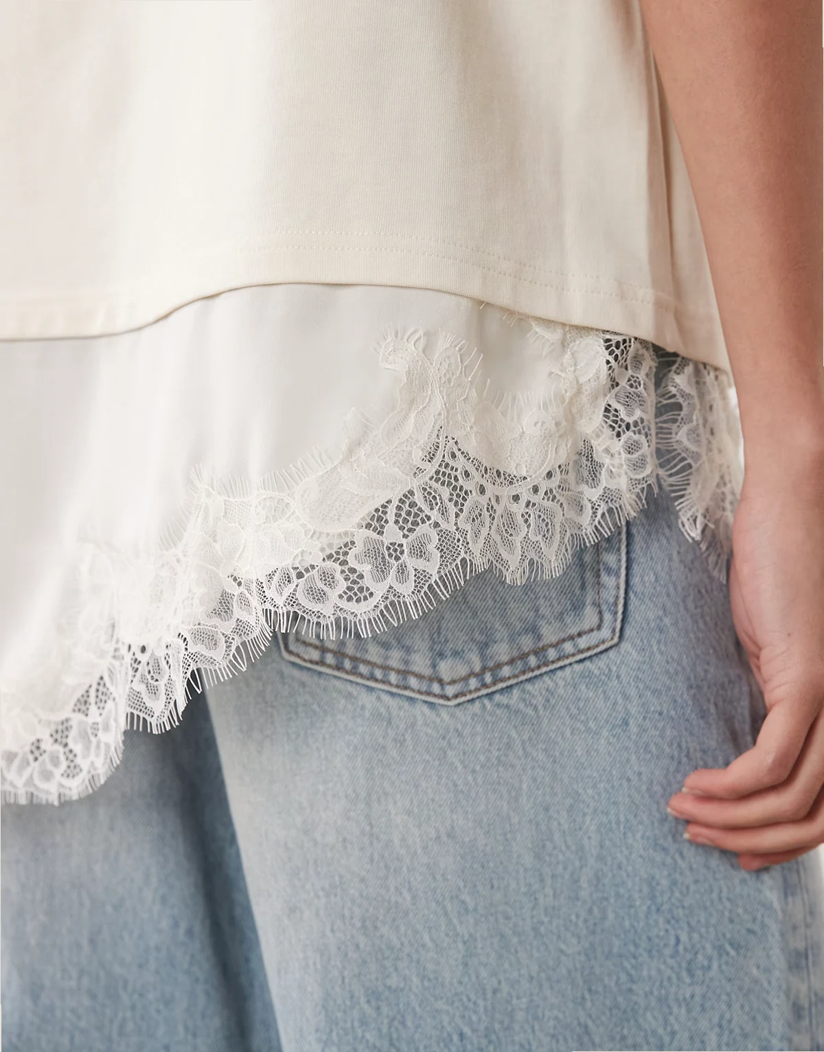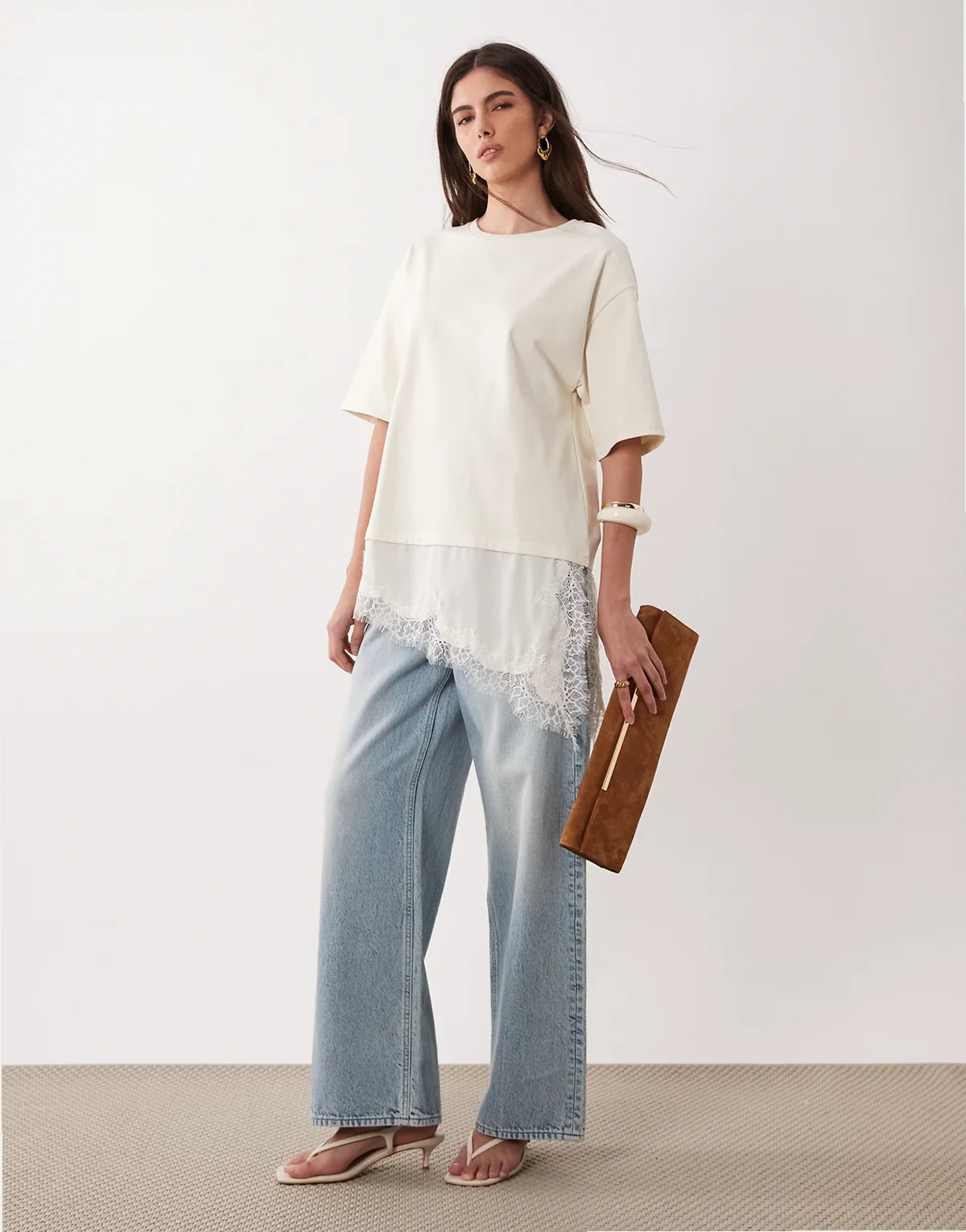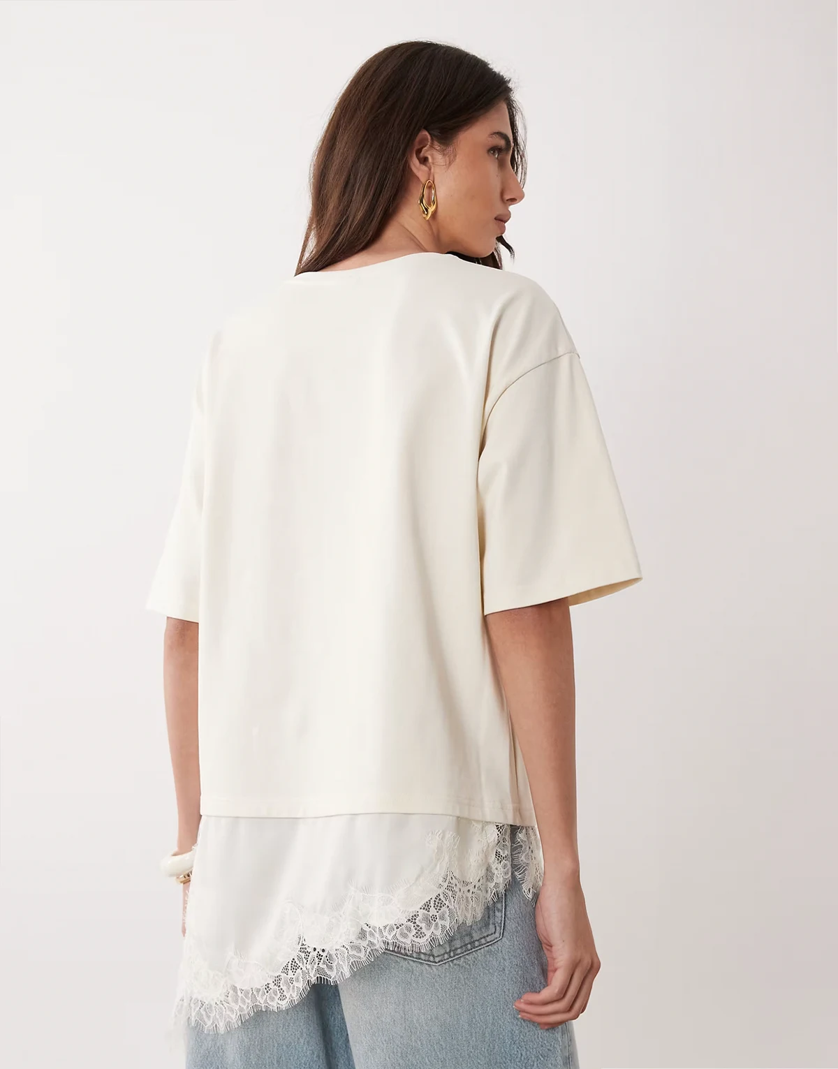 – Oversize-T-Shirt in Weiß mit Spitzendetails