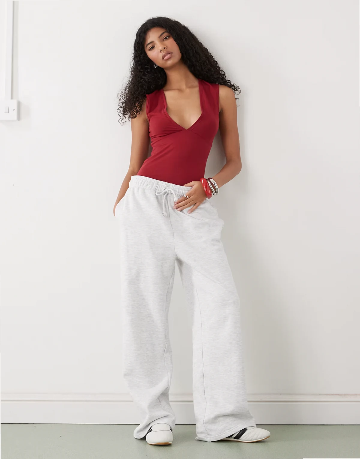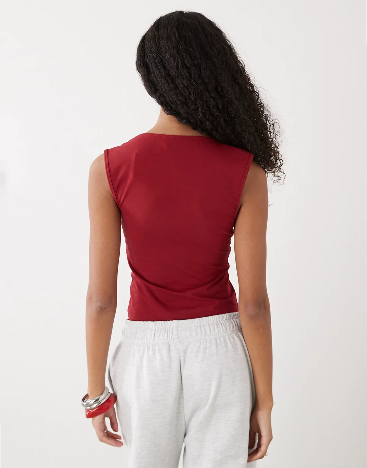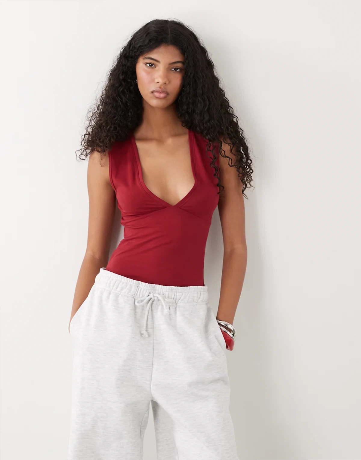 – Oberteil in Kirschrot mit tiefem V-Ausschnitt
