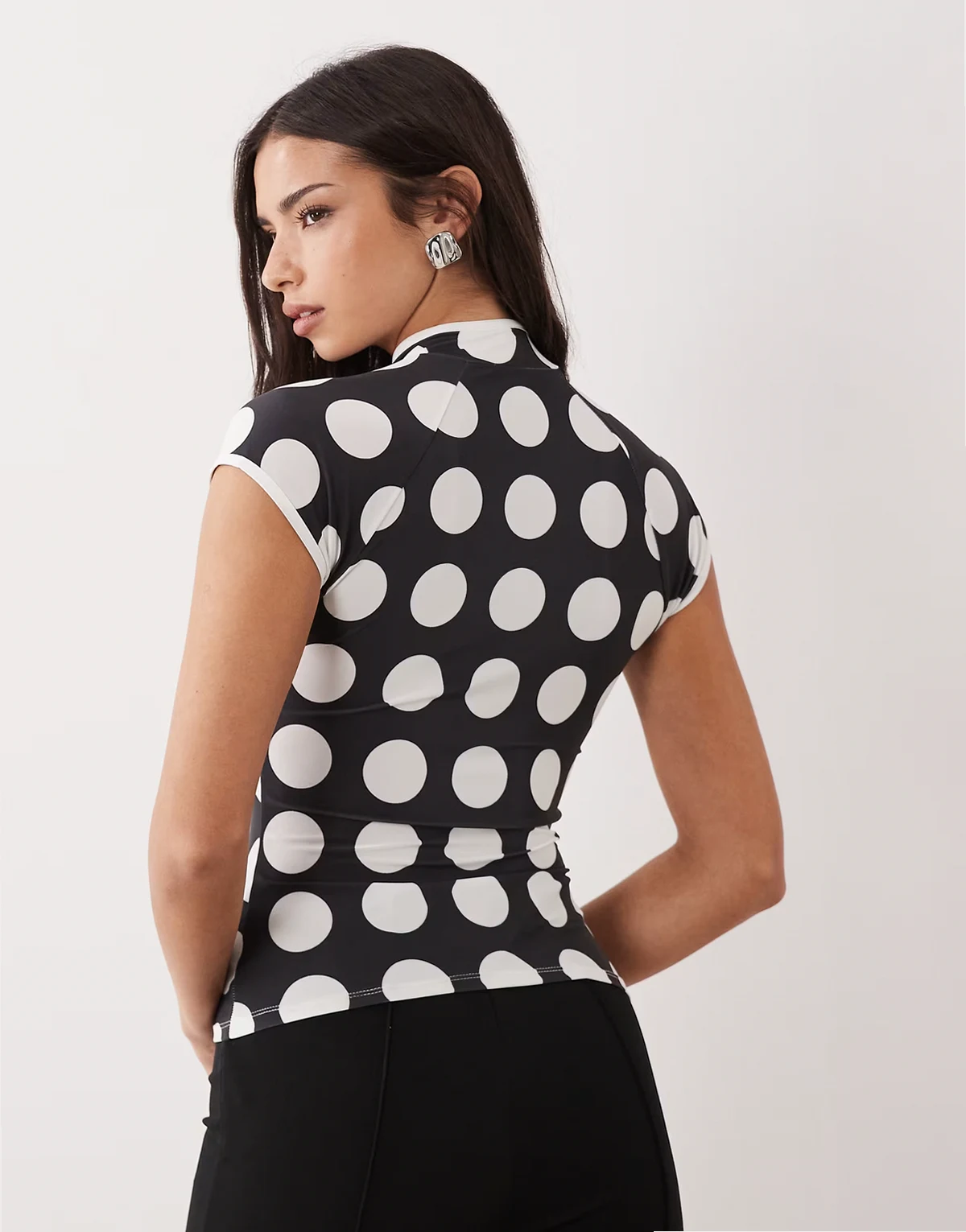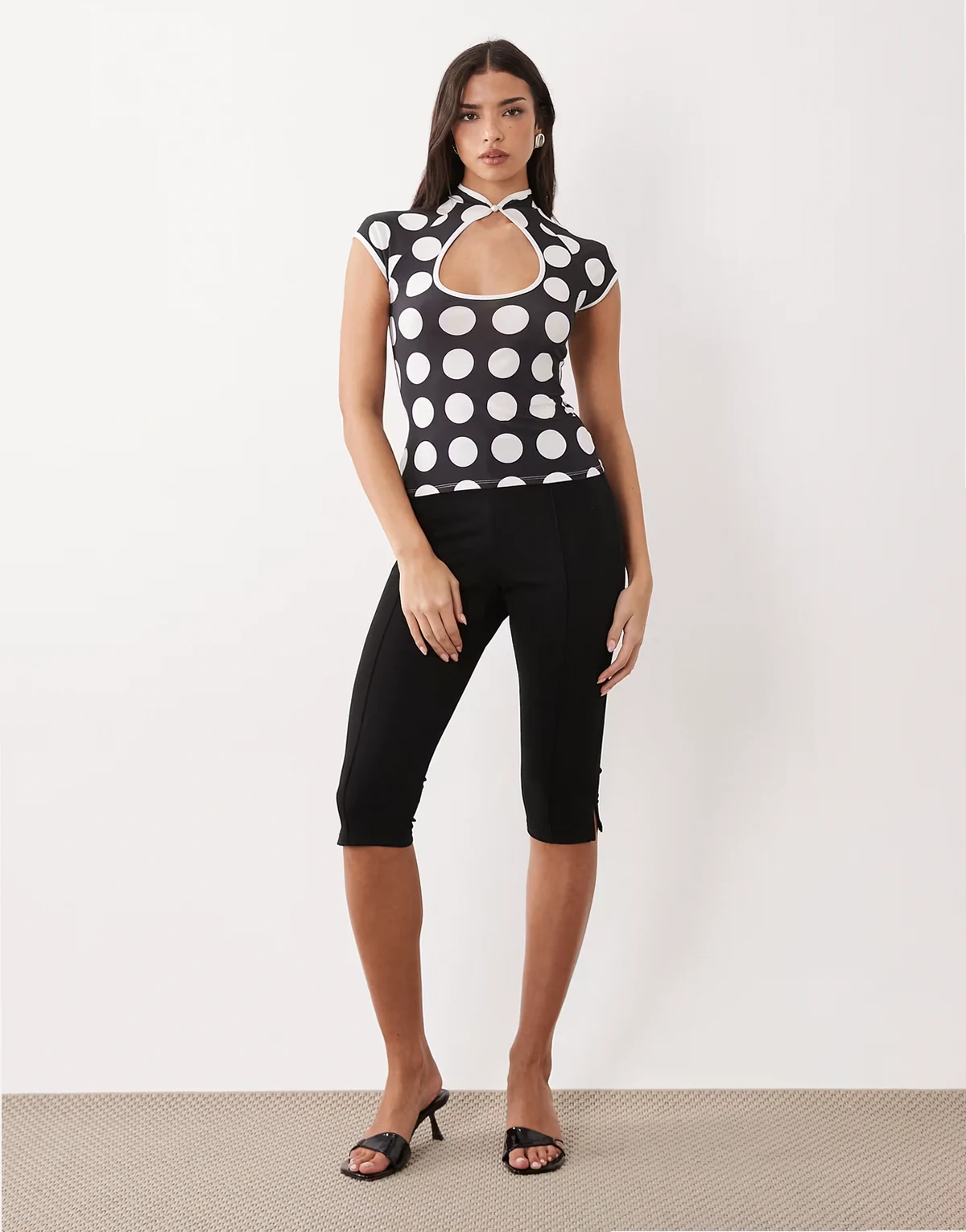 – Kurzärmliges Oberteil mit Punktemuster und Zierausschnitt