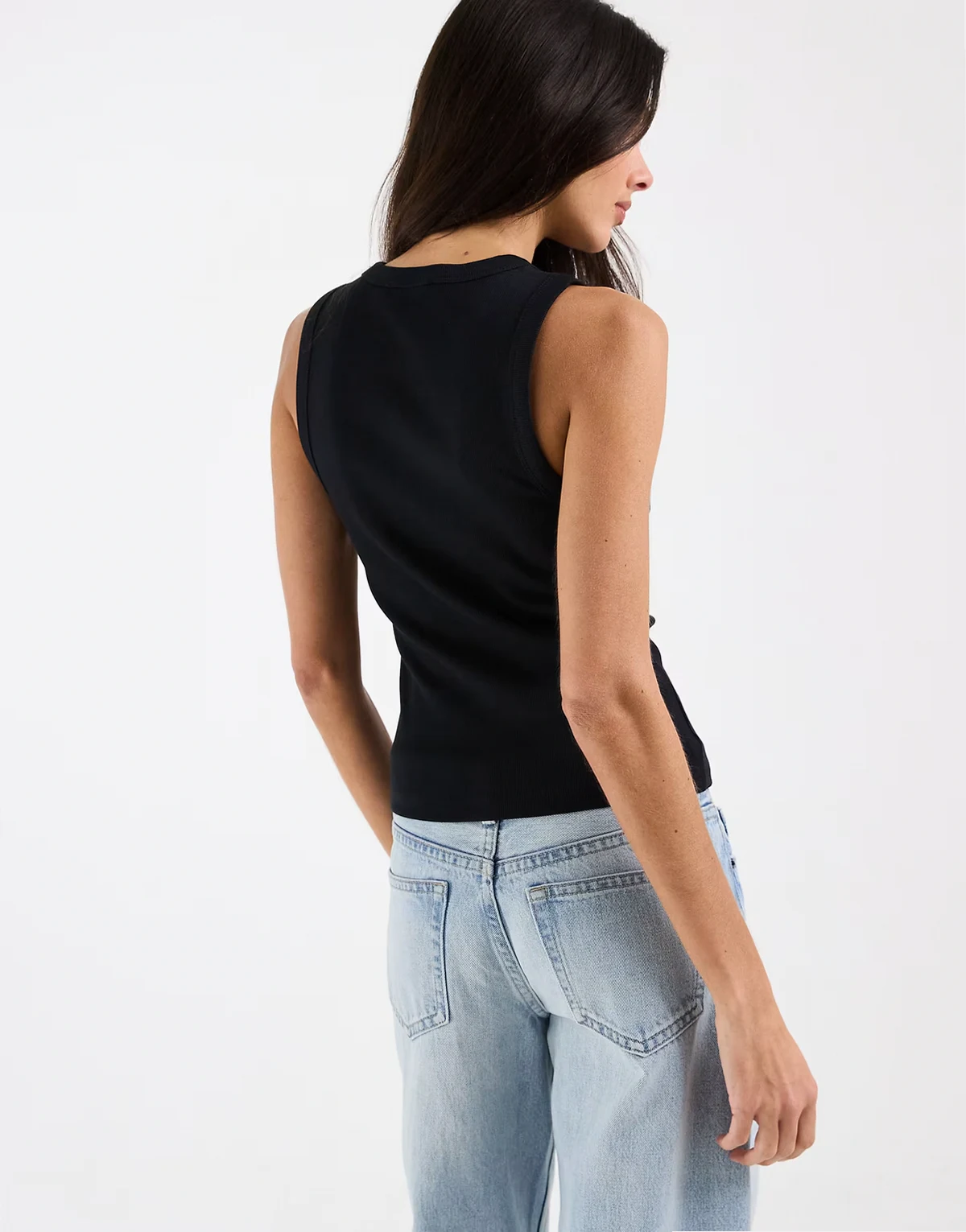 – Geripptes Trägertop in Schwarz mit Druckknöpfen