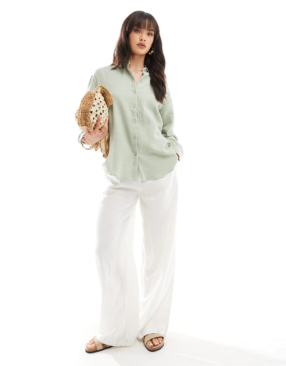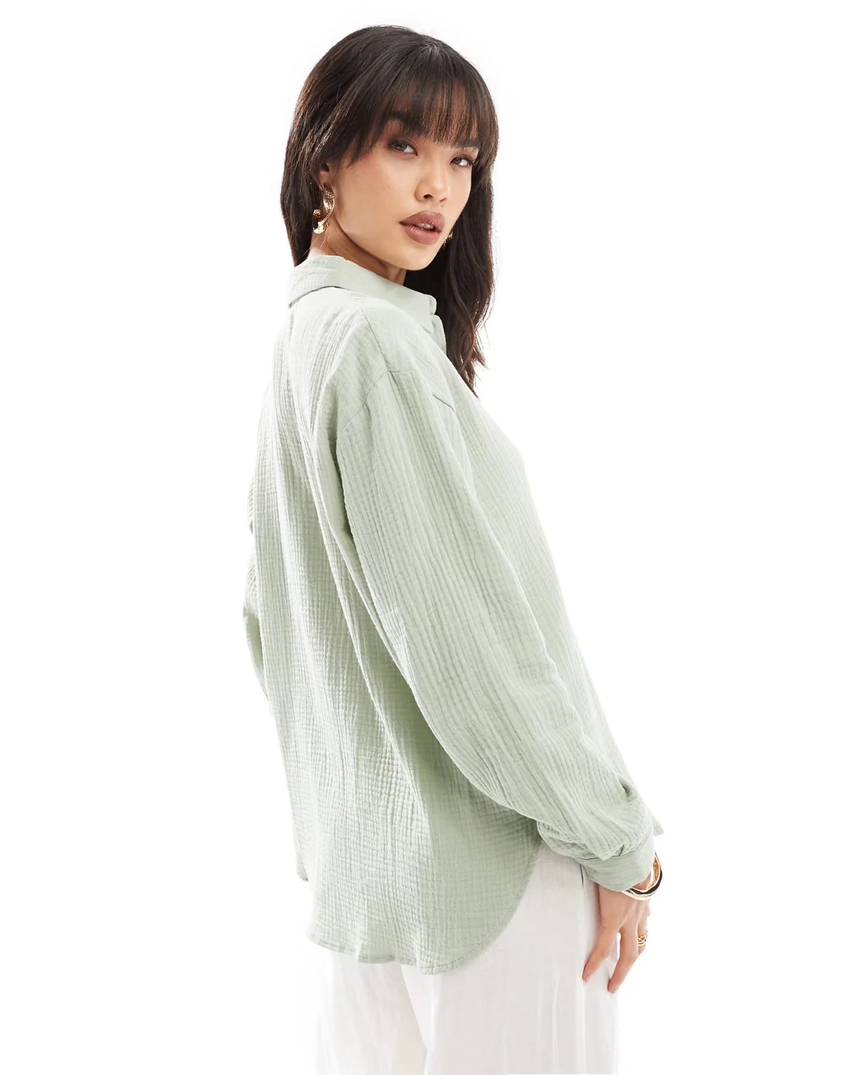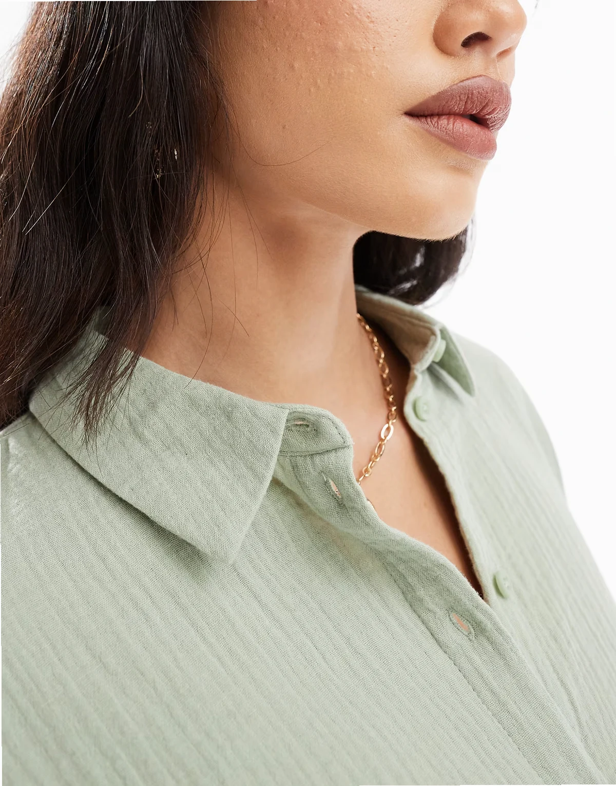 – Loose-Fit-Hemd aus grob gewebter Baumwolle in Salbei, Kombiteil