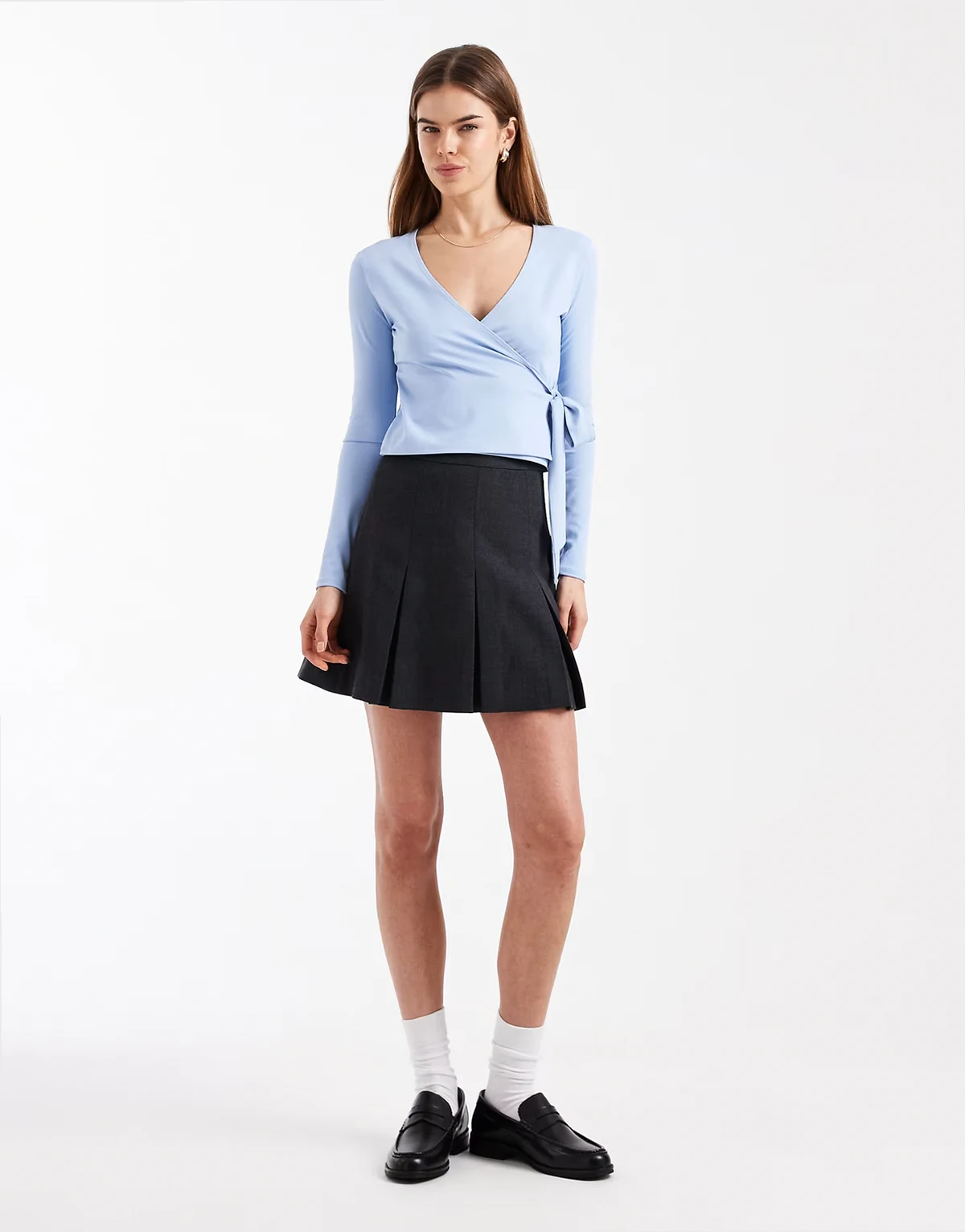 – Langärmliges Wickeloberteil in Hellblau
