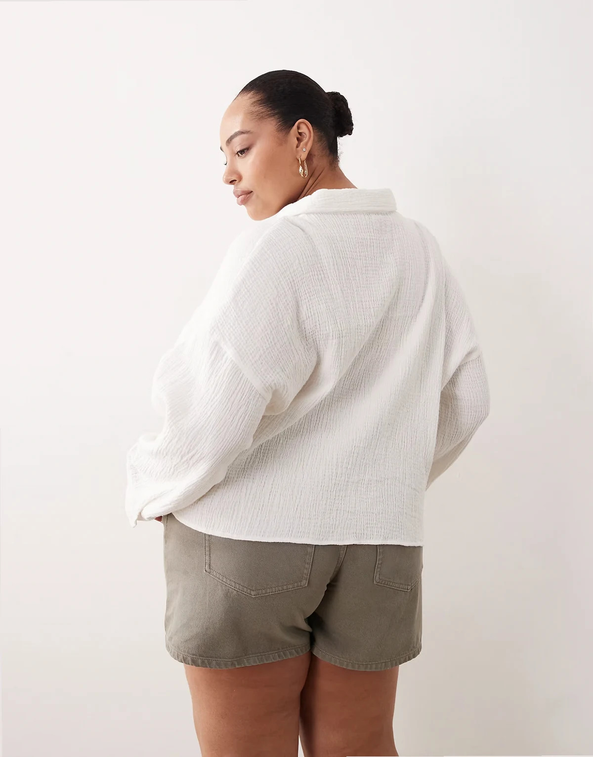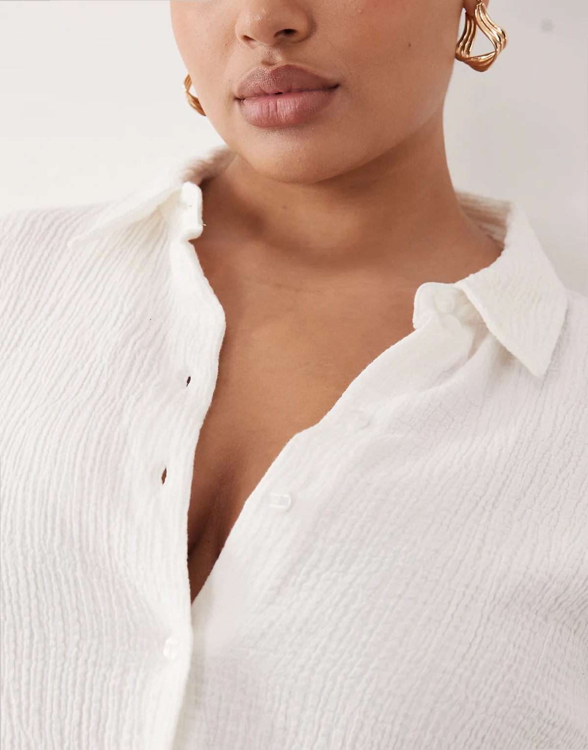 ASOS DESIGN Curve – Cropped-Hemd aus strukturierter Baumwolle in Elfenbeinweiß