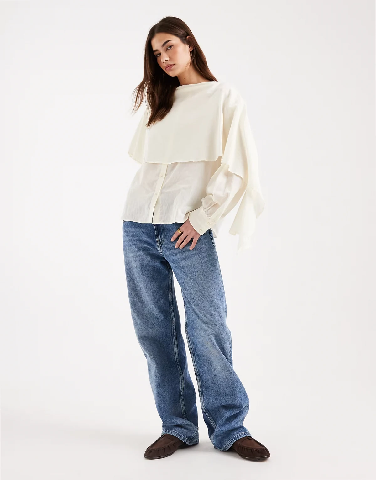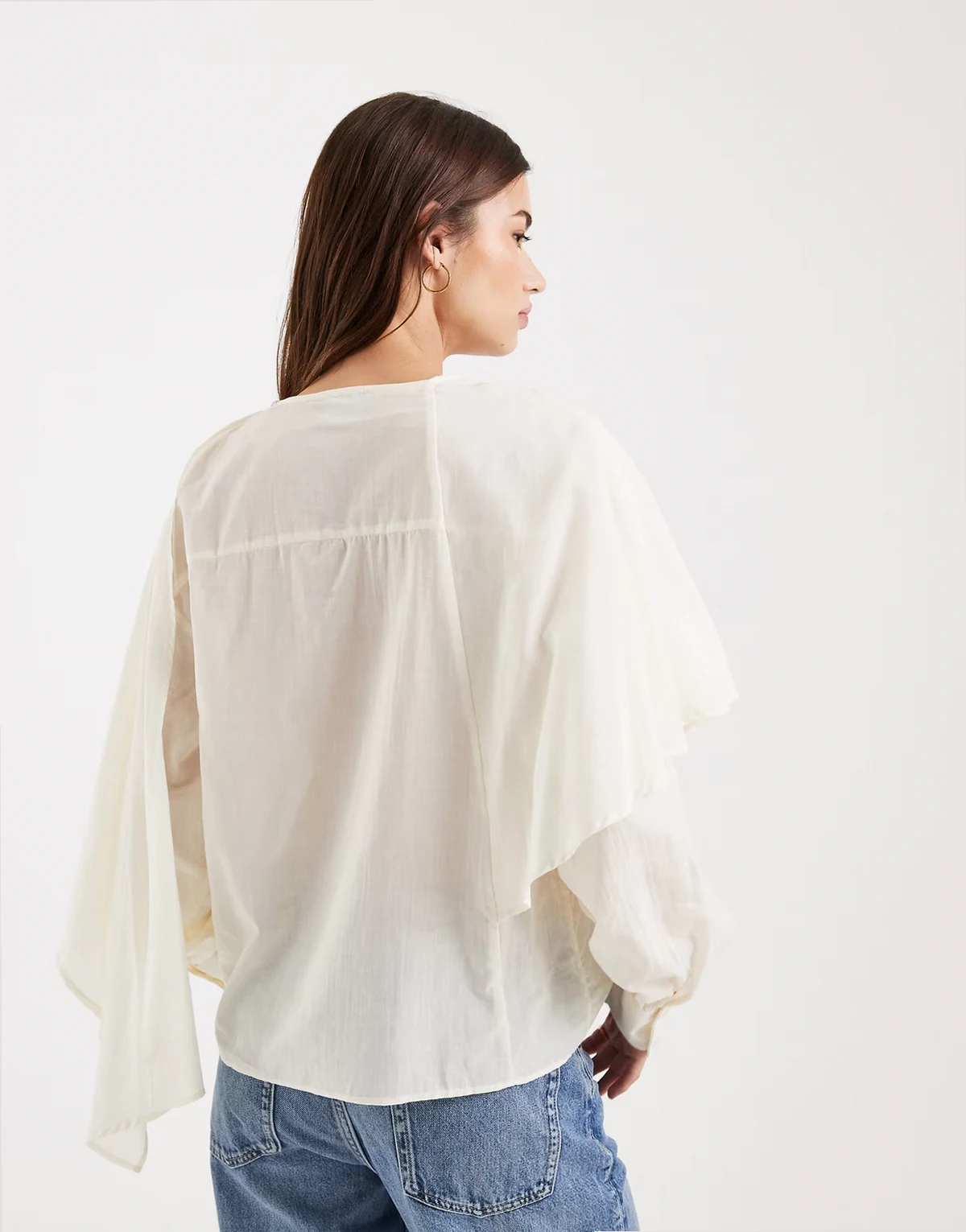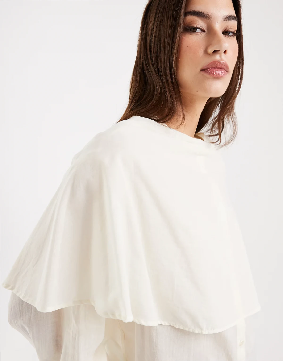– Cape-Bluse aus Baumwoll-Voile in Weiß