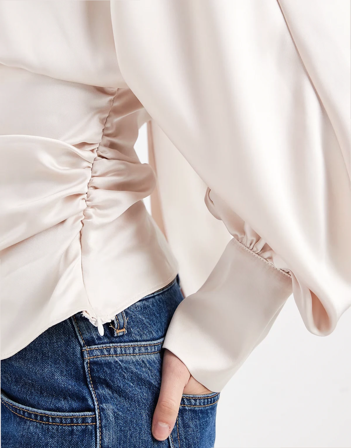 Satinähnliches Material: glänzend, drapiert und seidigglatt