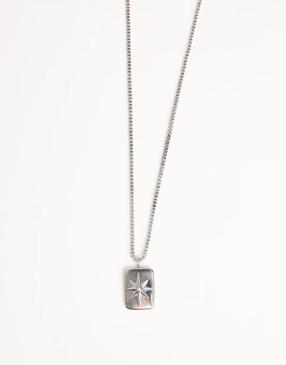 – Silberfarbene Halskette mit bauschigem Sternenanhänger in gehämmerter Optik