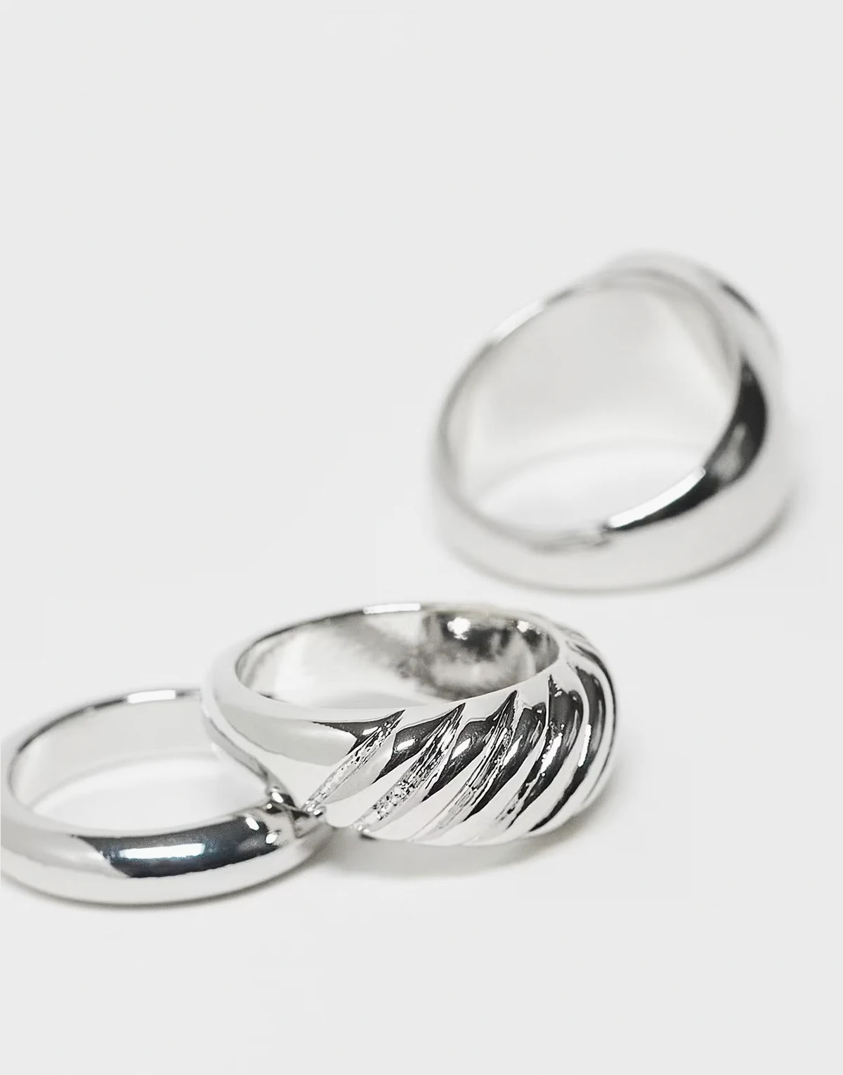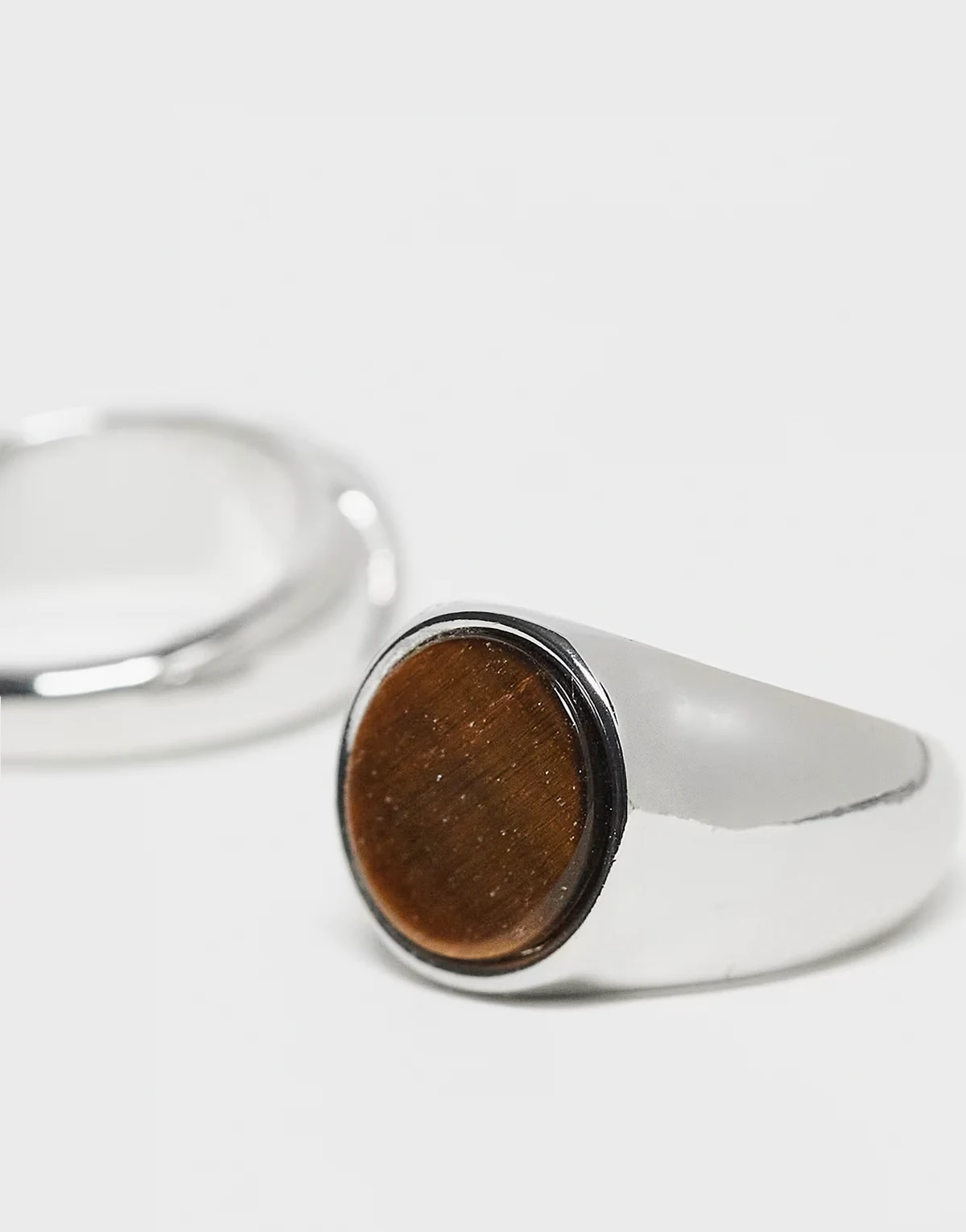 – 3er-Pack silberfarbene Unisex-Ringe mit Tigerauge-Halbedelstein