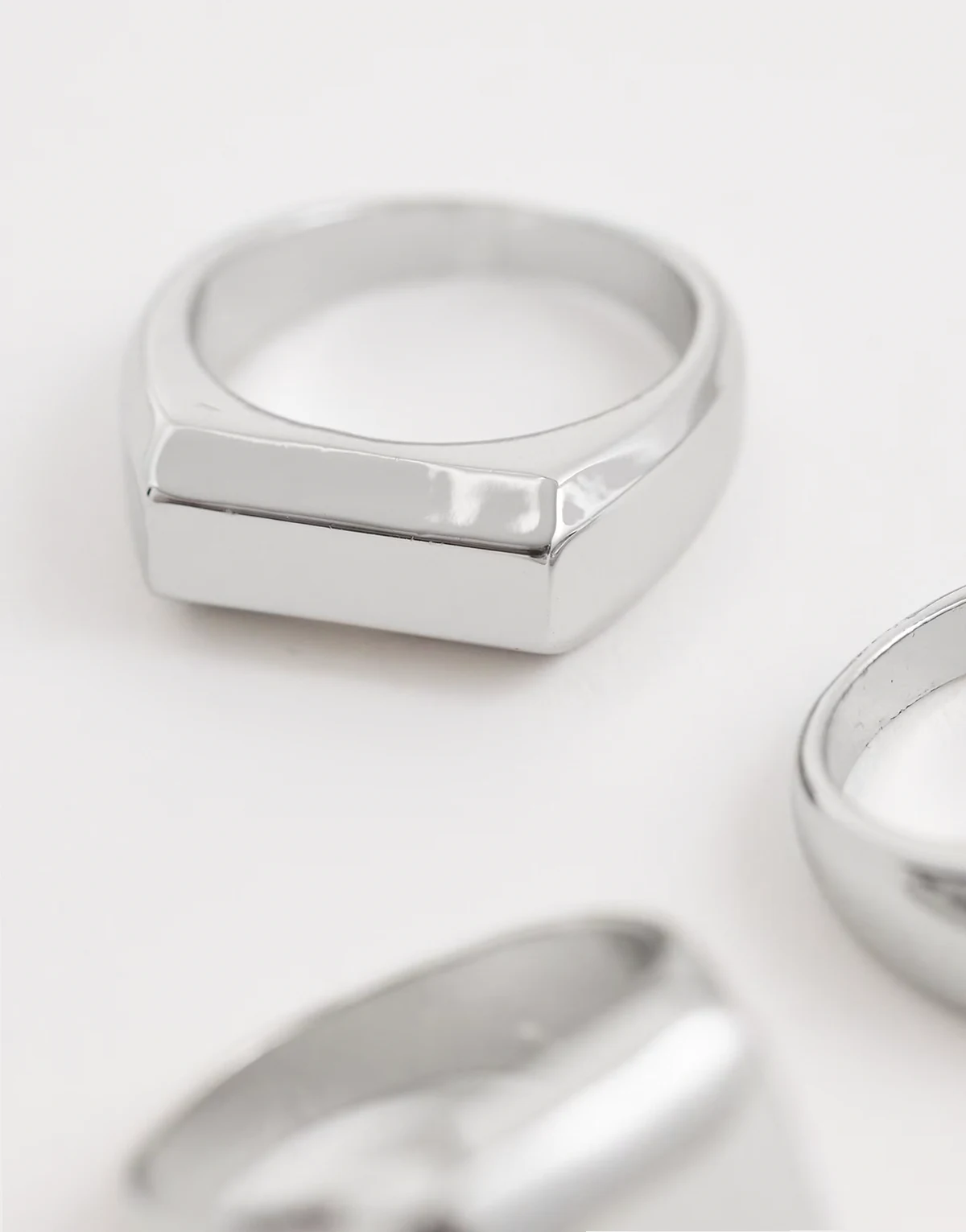 – 3 er-Pack silberfarbene Siegelringe mit flacher Oberseite