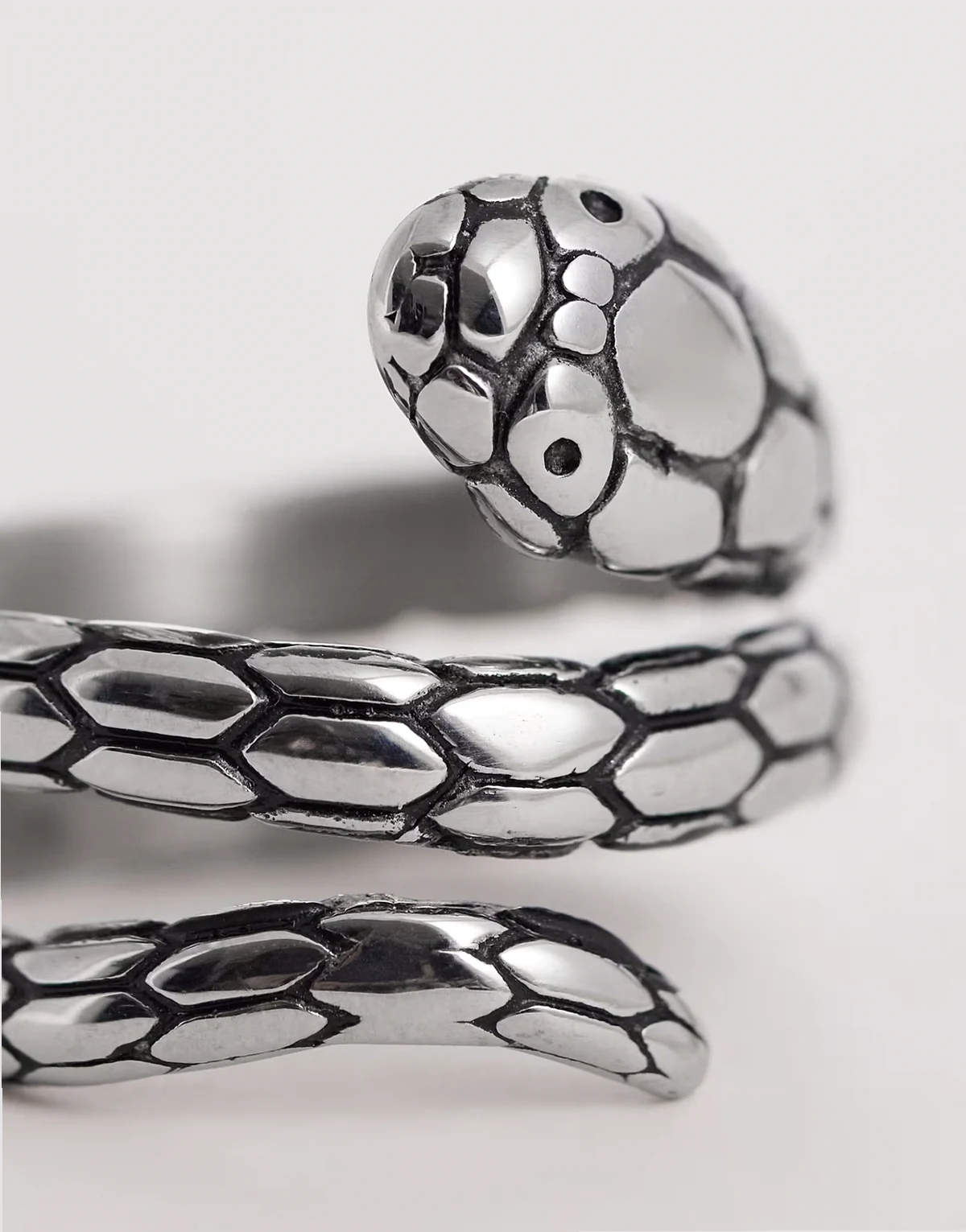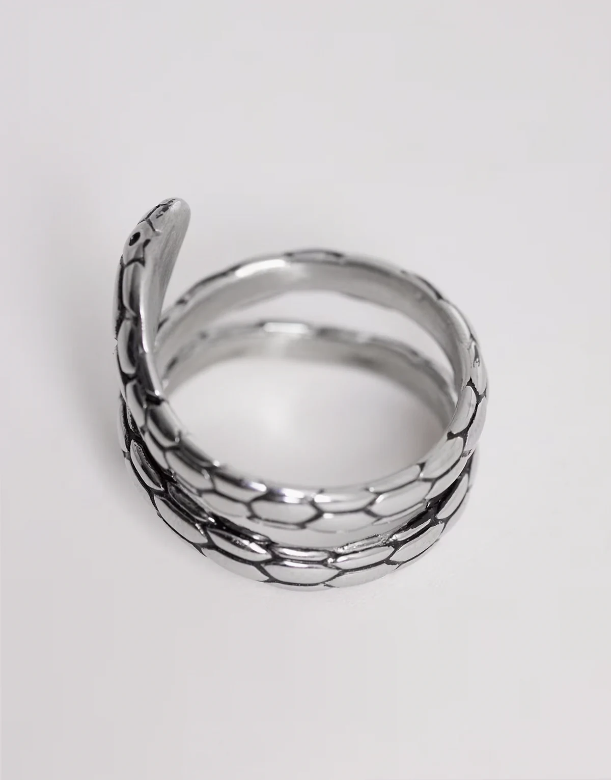 – Silberfarbener Ring aus wasserfestem Edelstahl mit Schlangen-Wickel-Design