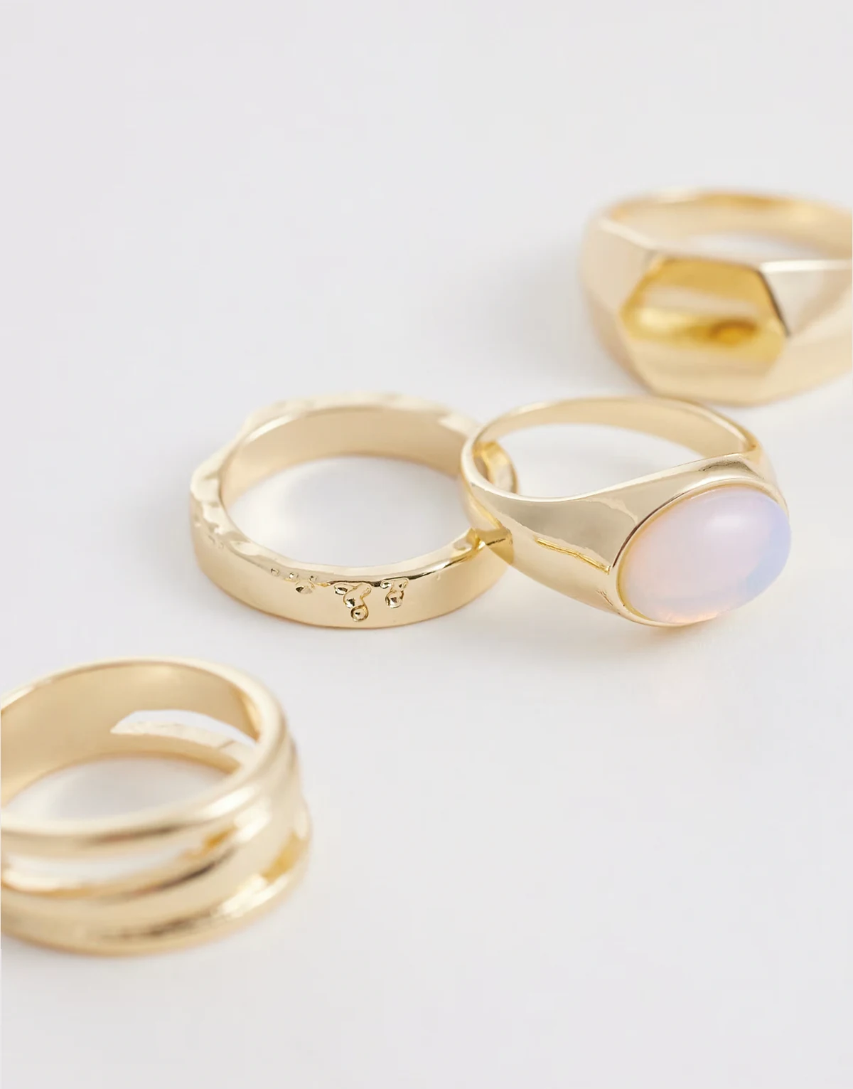 – 4er-Pack goldfarbene Ringe mit Opal-Halbedelstein und sechseckigem Design