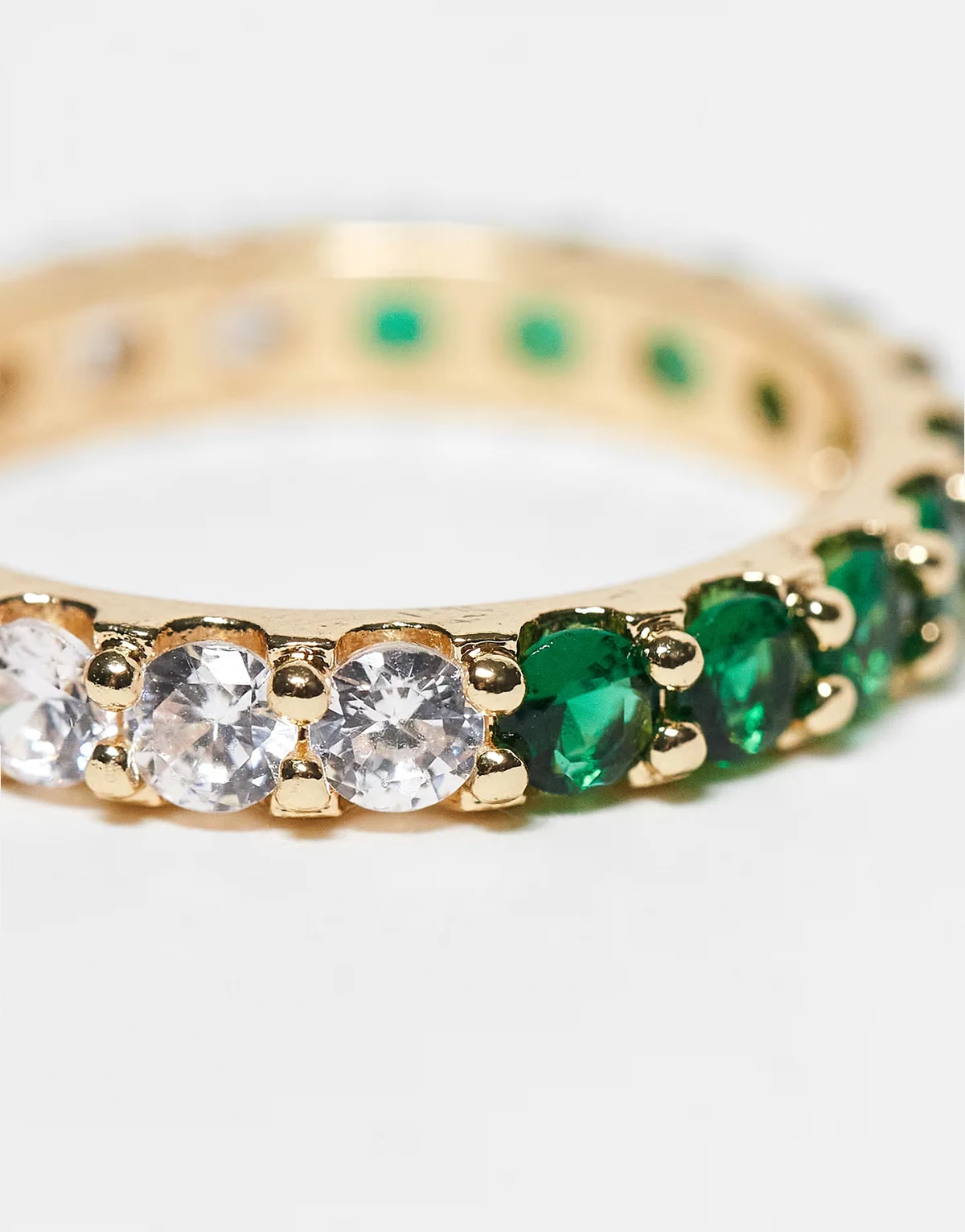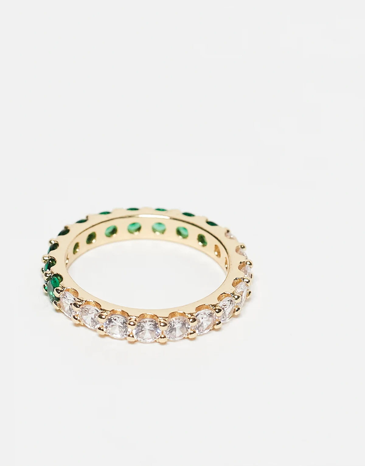 – Halbseitig mit Zirkonia-Steinen besetzter Ring in Goldoptik