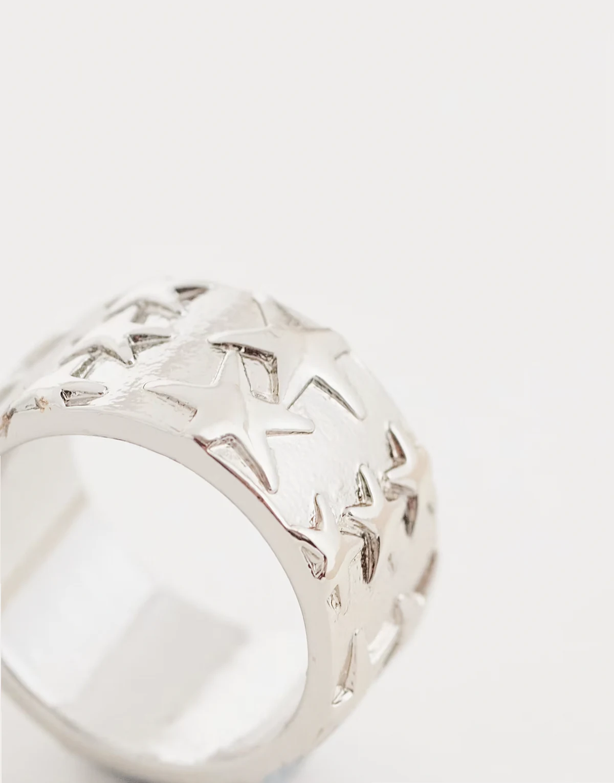 – Breiter Unisex-Ring in Silberoptik mit Stern-Design