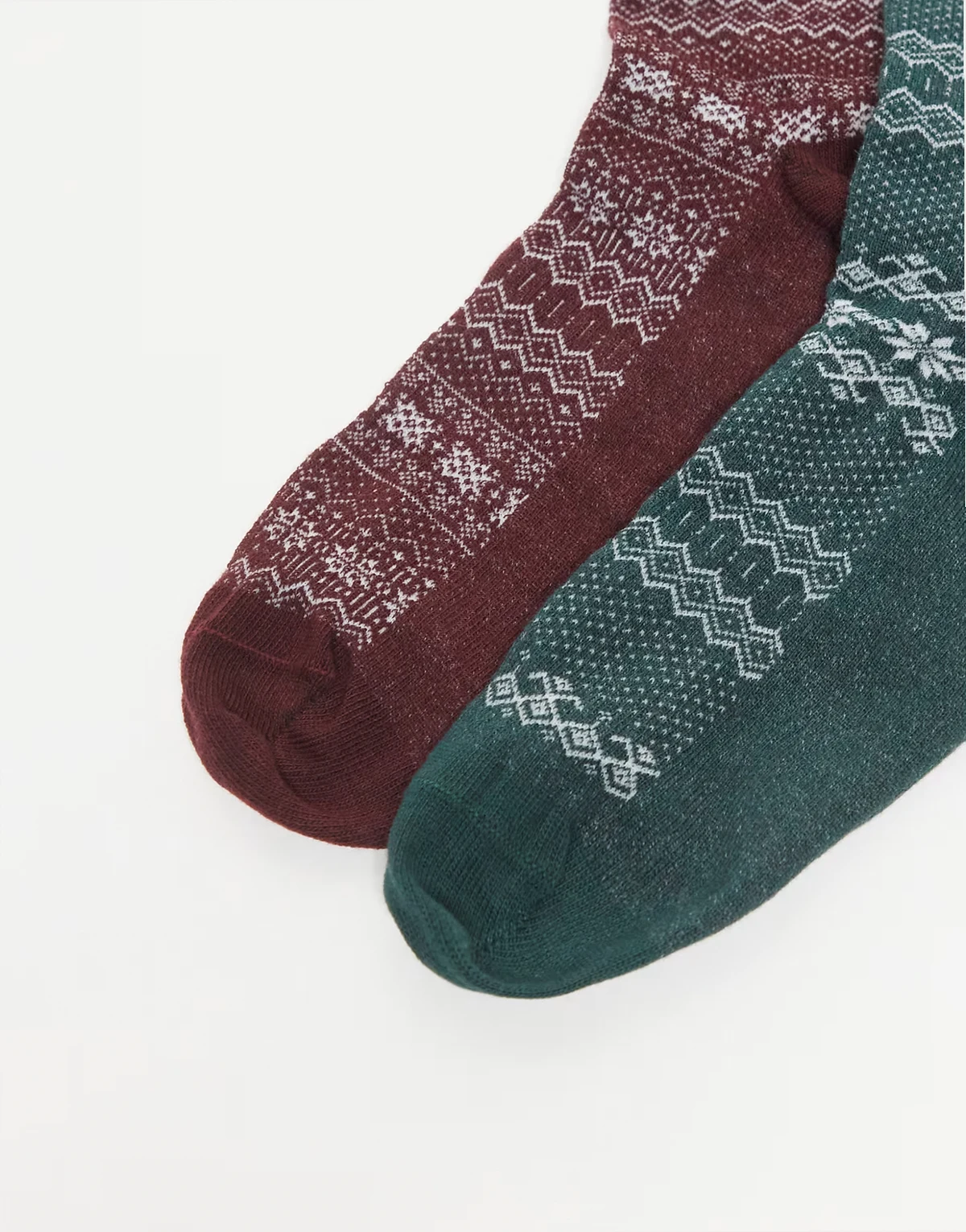 – 2er-Pack Socken in Rot und Grün mit Norwegermuster