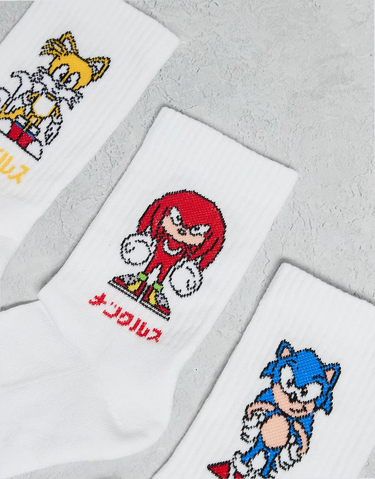 – 3er-Pack Socken in Weiß mit Sonic-Grafik
