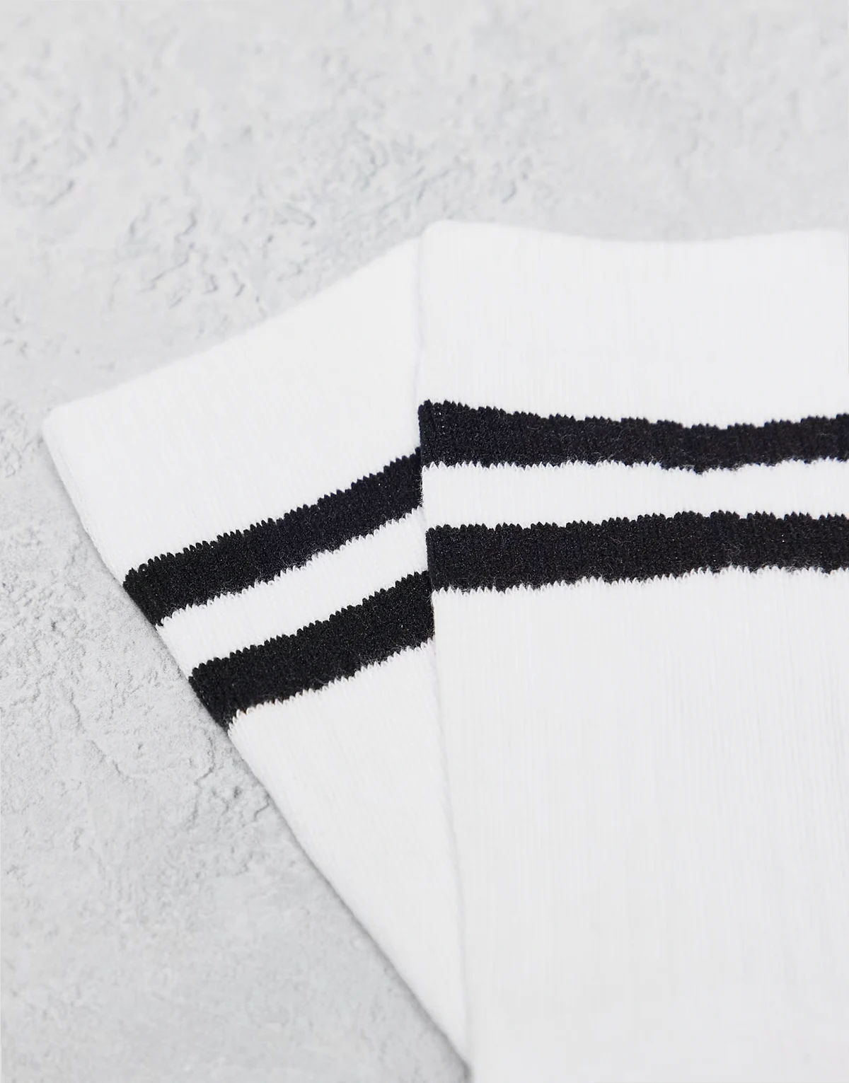 – Socken in Weiß mit Streifen in Schwarz, 2er-Pack
