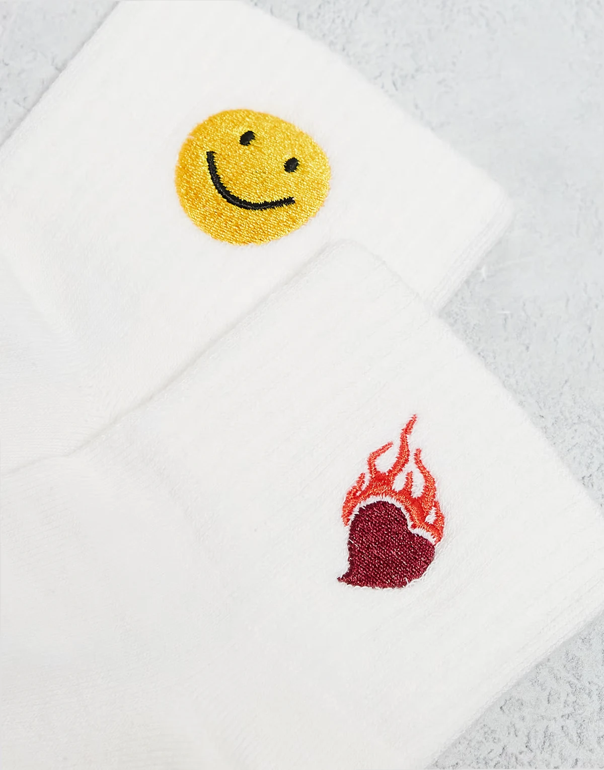 – 2er-Pack Socken in Weiß mit aufgestickten Symbolen