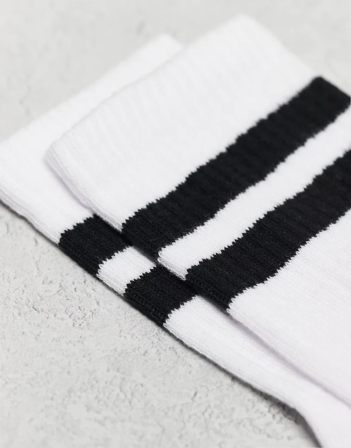 – 5er-Pack Sportsocken in Weiß mit schwarzen Streifen