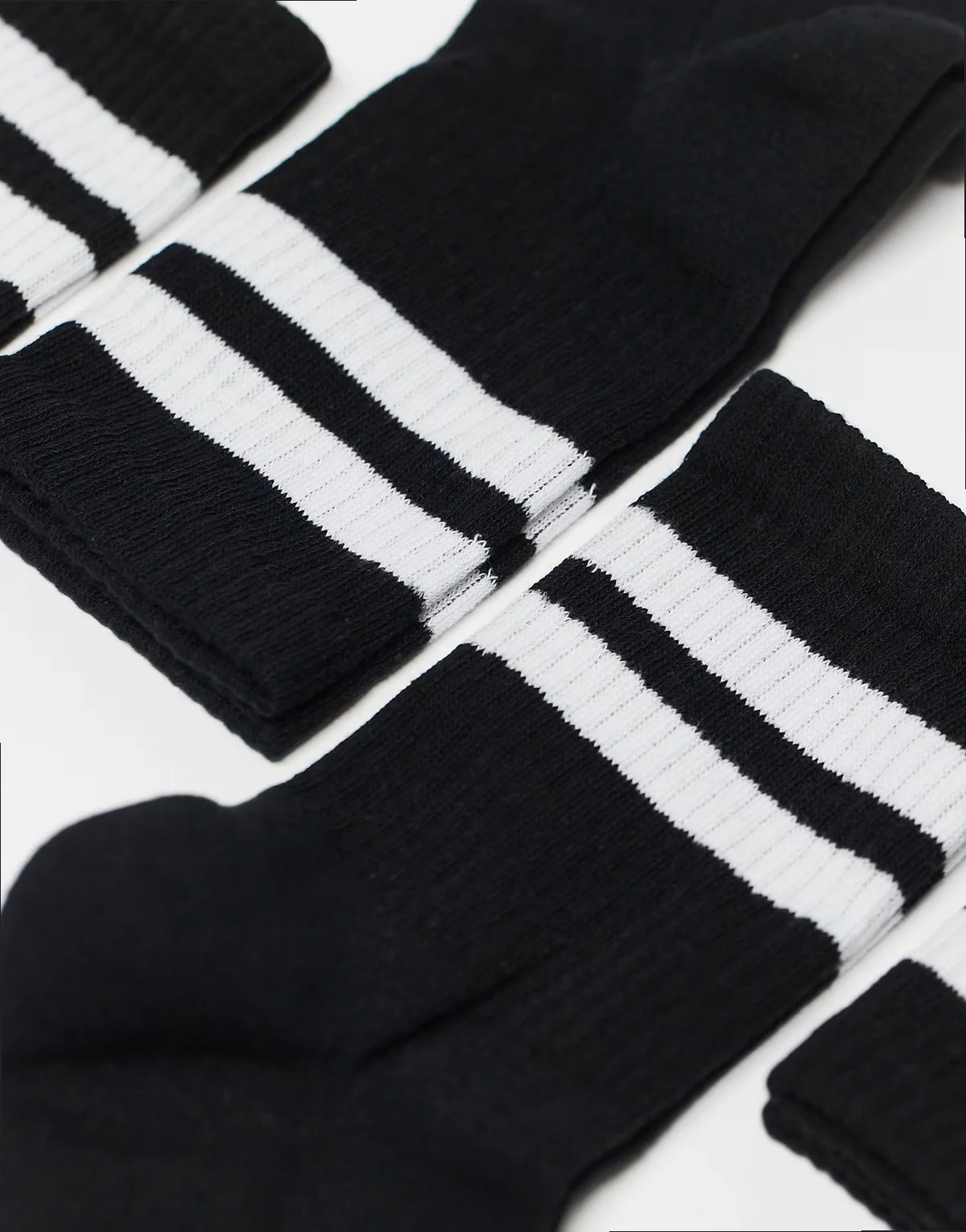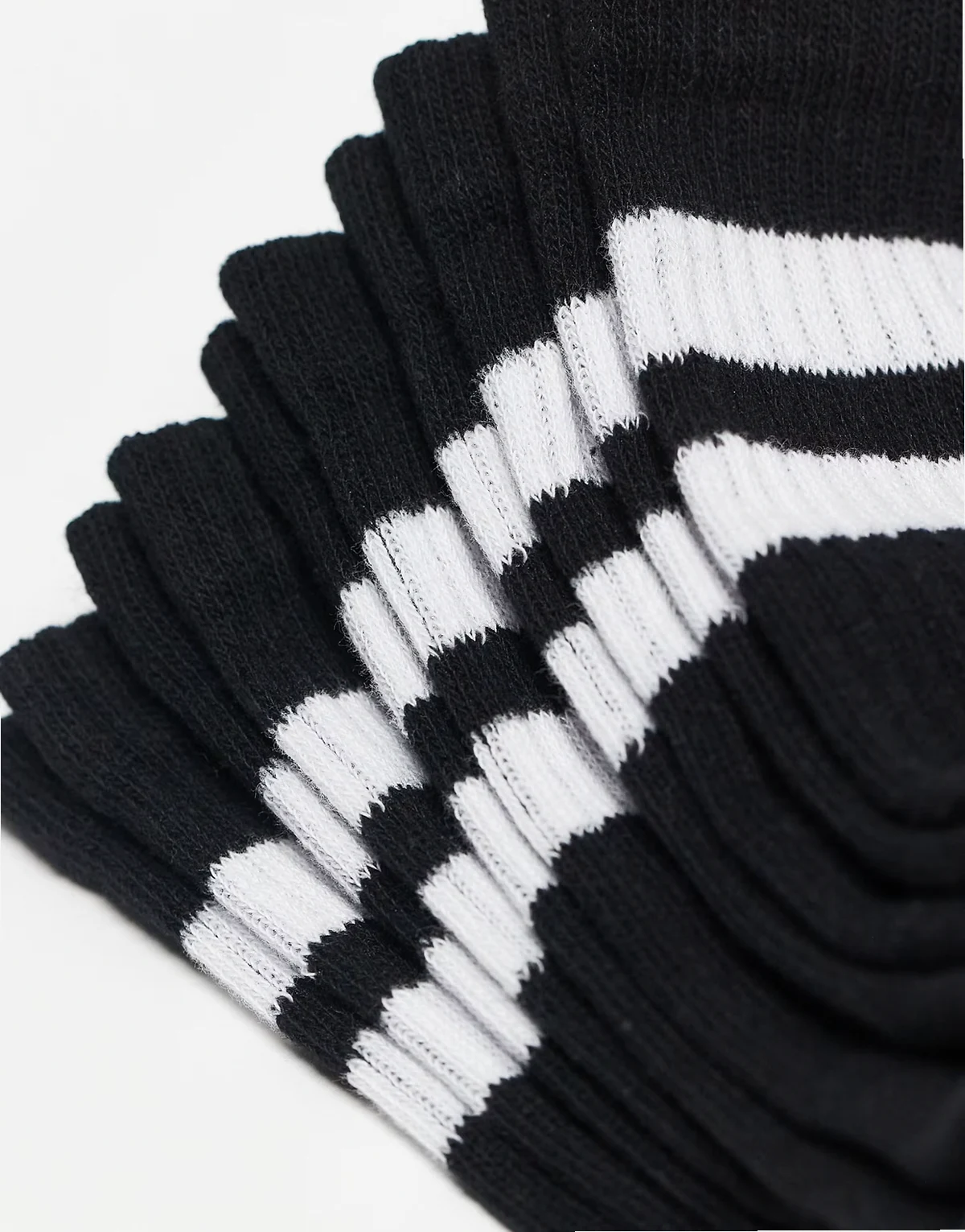 – 5er-Pack Sportsocken in Schwarz mit Streifen in Weiß