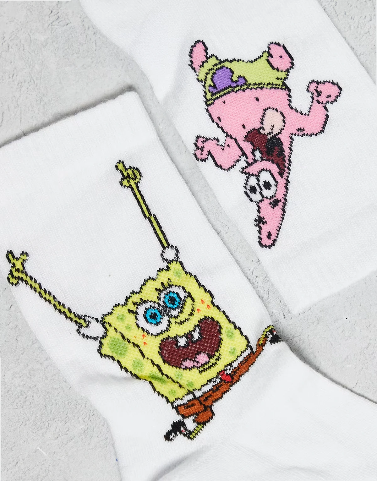 – 2er-Pack Socken mit SpongeBob und Patrick Grafik in Weiß