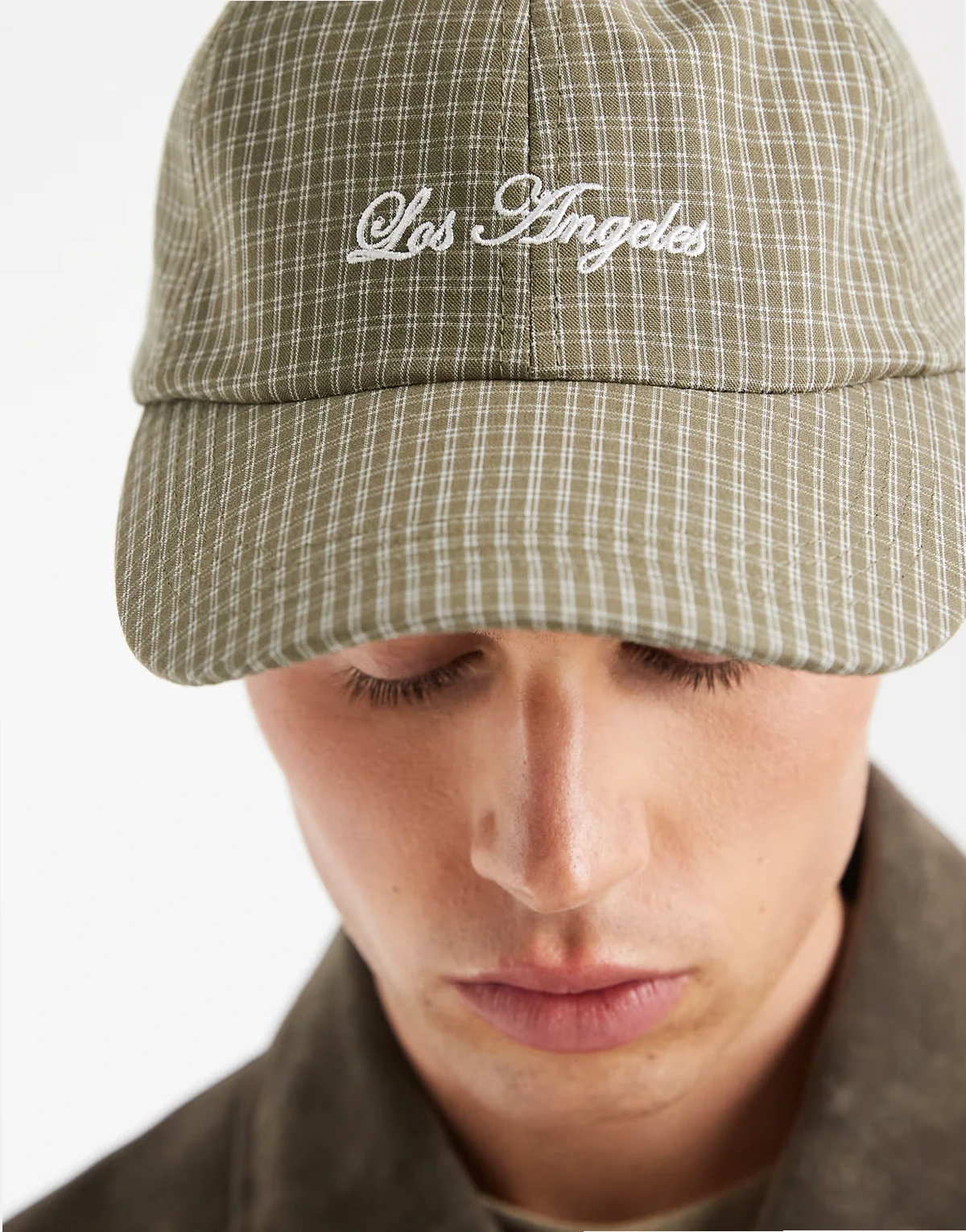 – Karierte Kappe in Grün mit Stickerei
