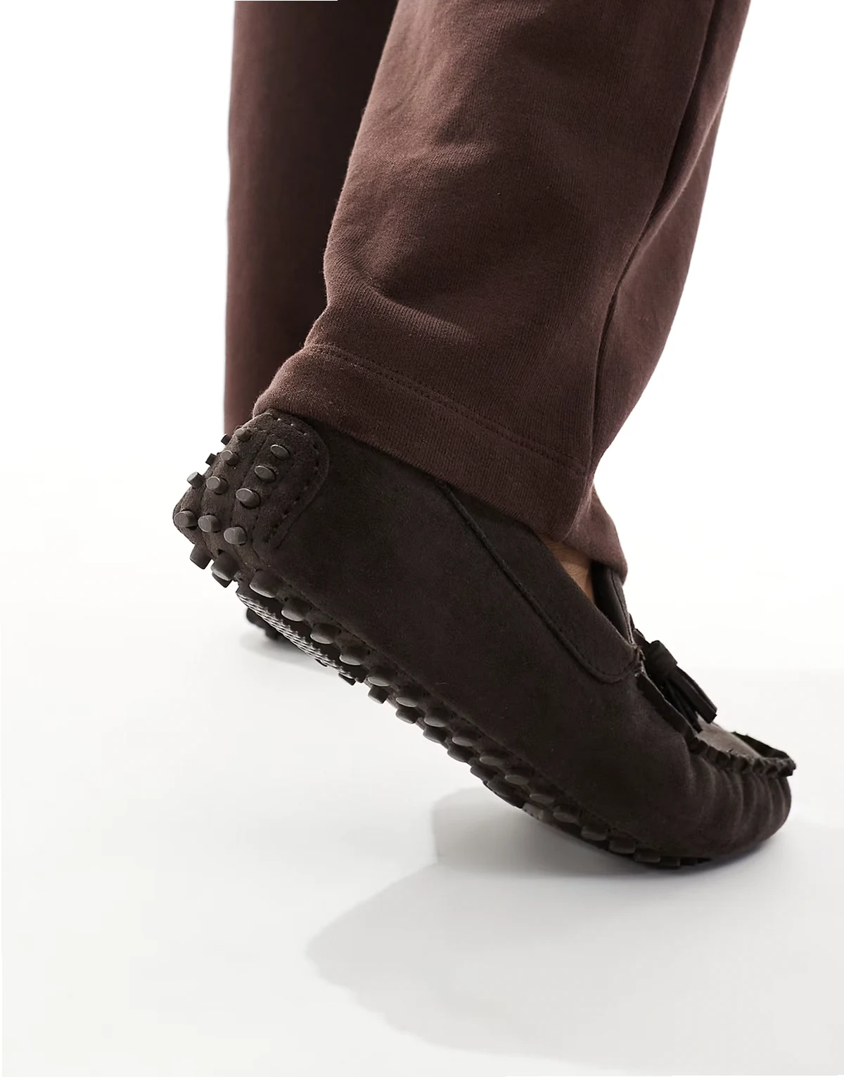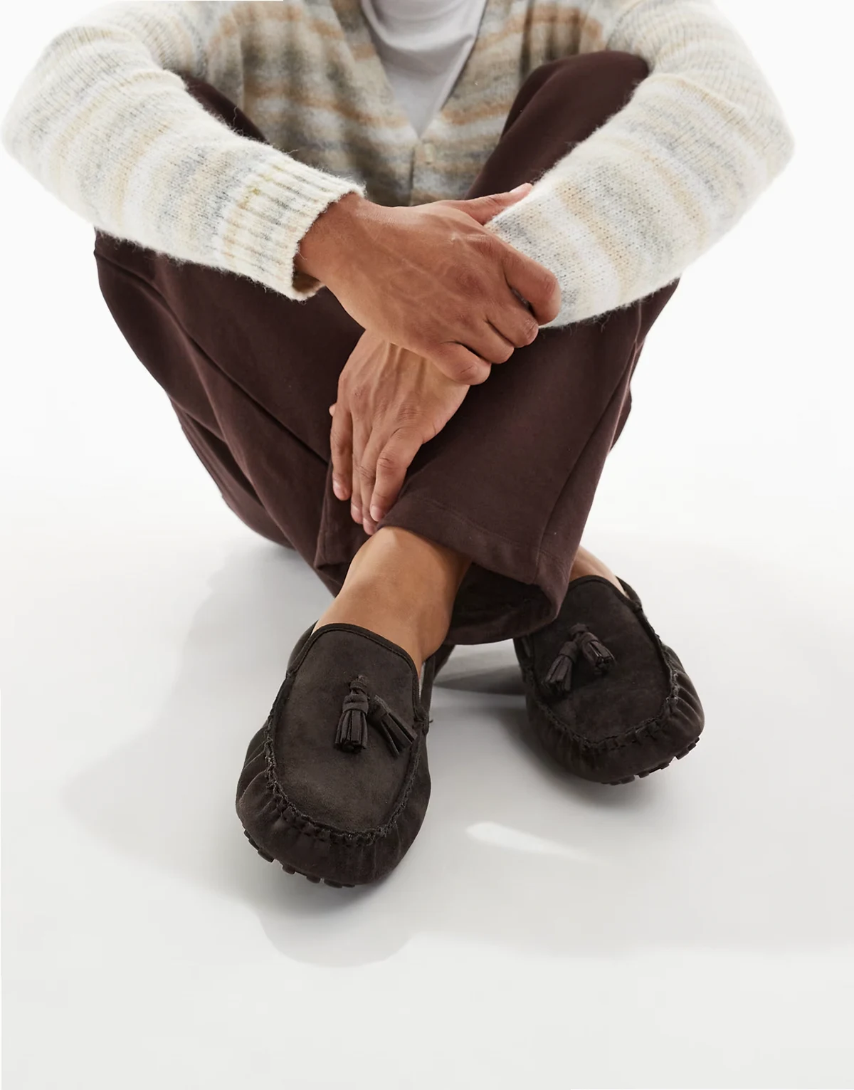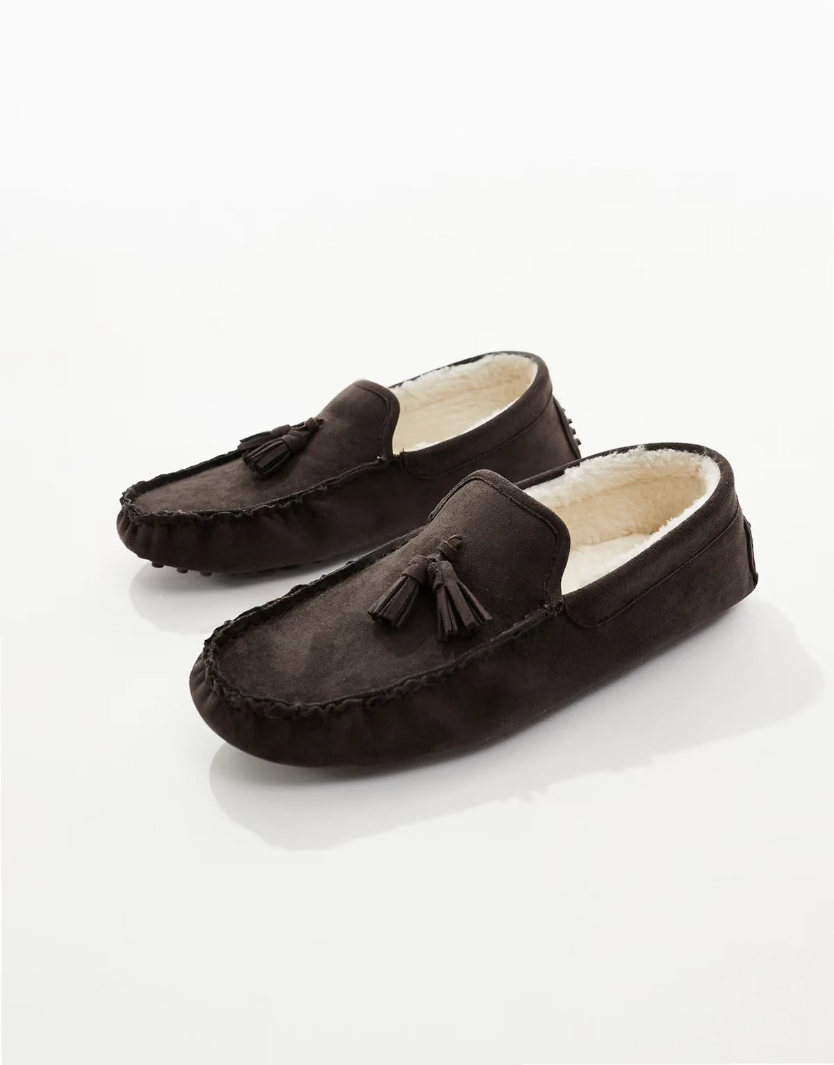 – Pelzgefütterte, geraffte Mokassins in Schokobraun