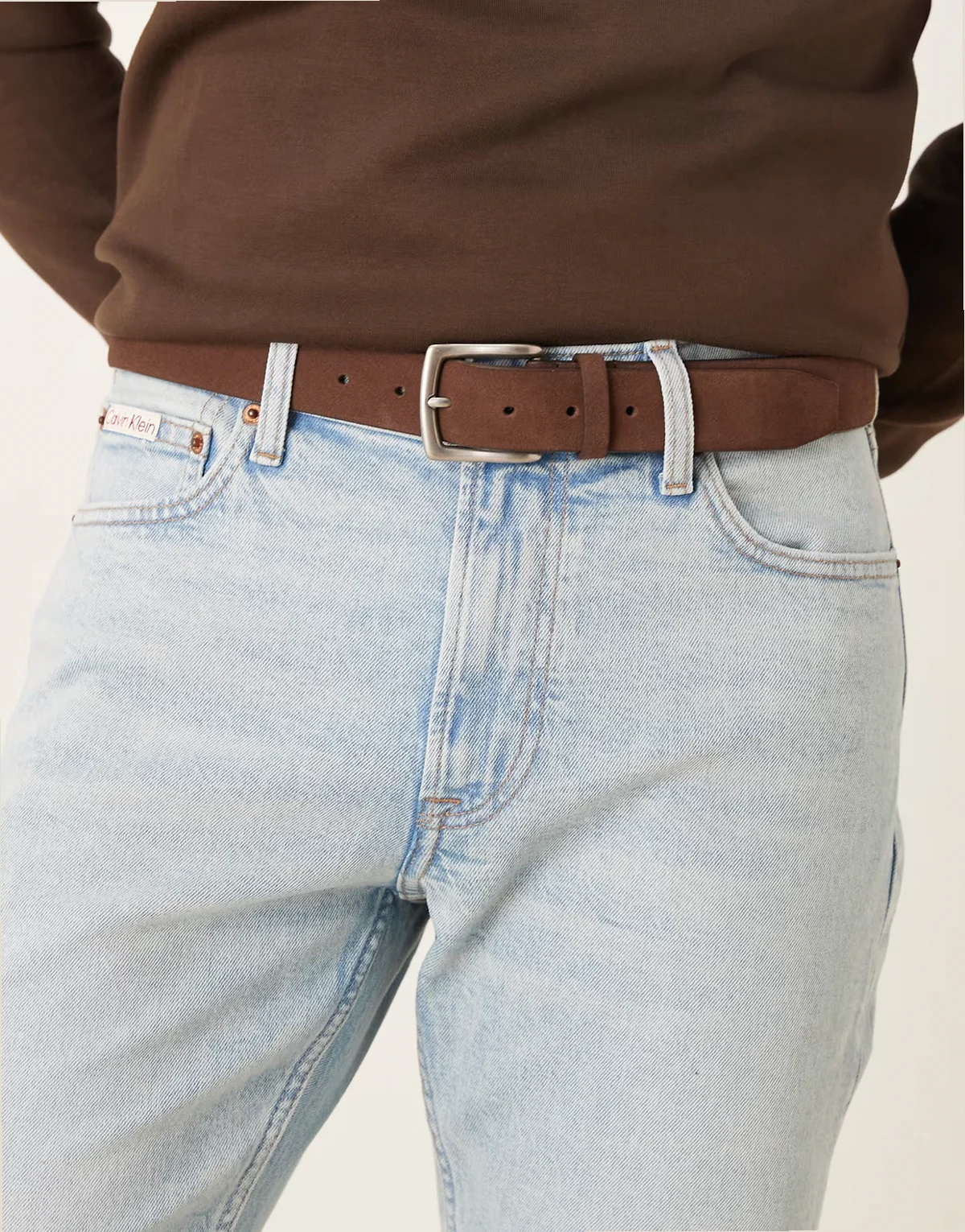 – Eleganter Wildleder-Gürtel in Dunkelbraun mit silberfarbener Schnalle