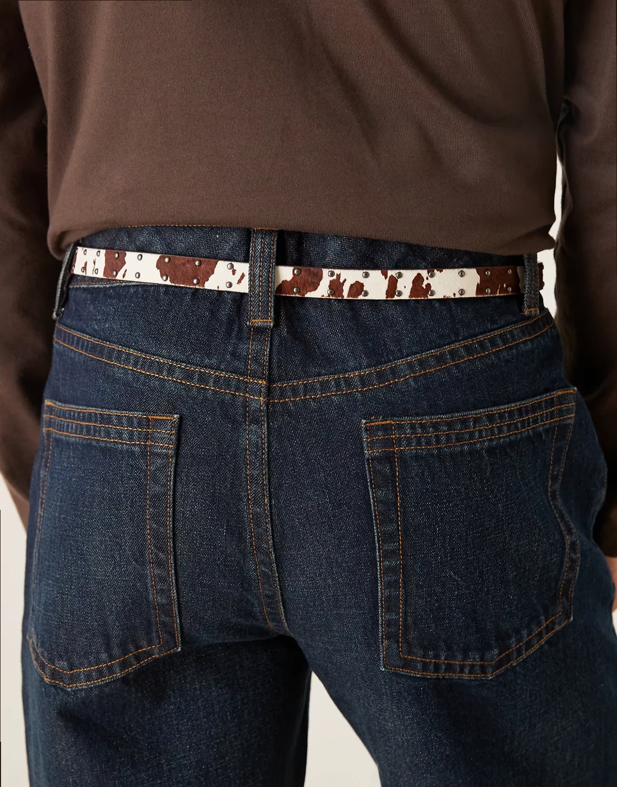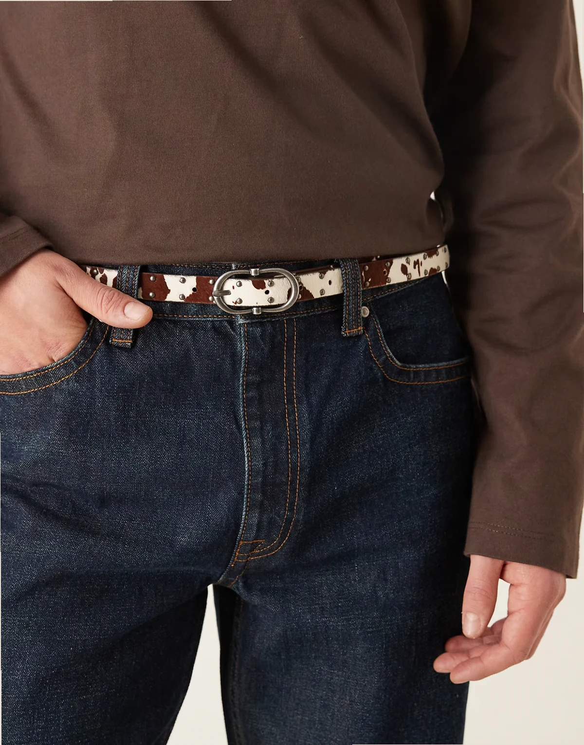 – Schmaler Western-Gürtel aus Leder mit Kuhfellmuster