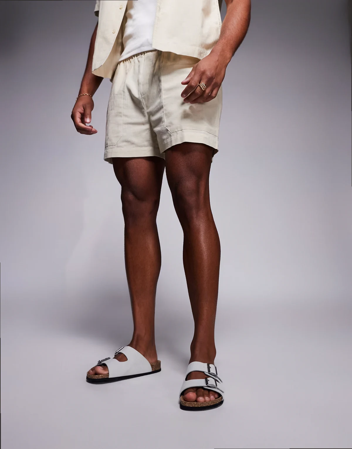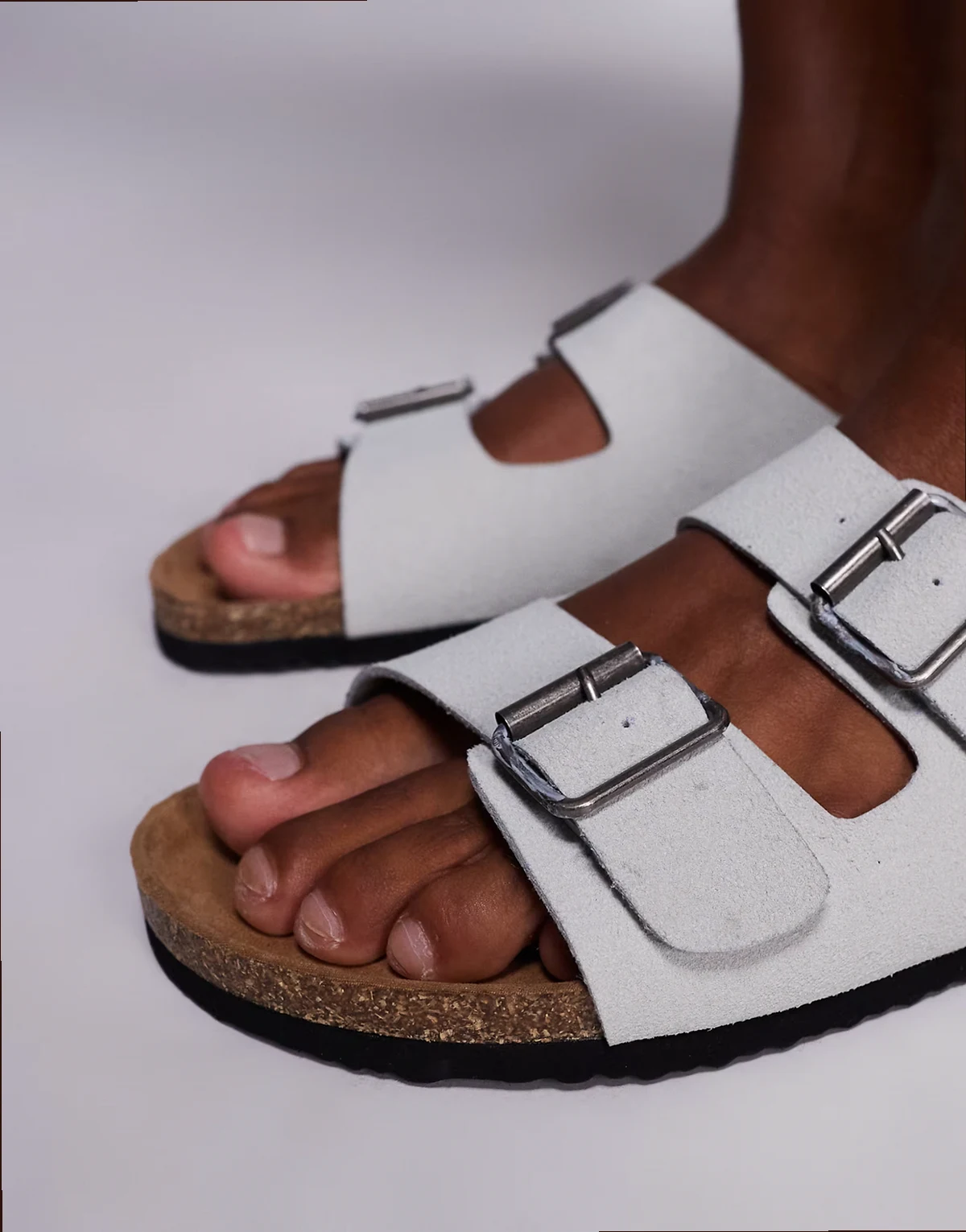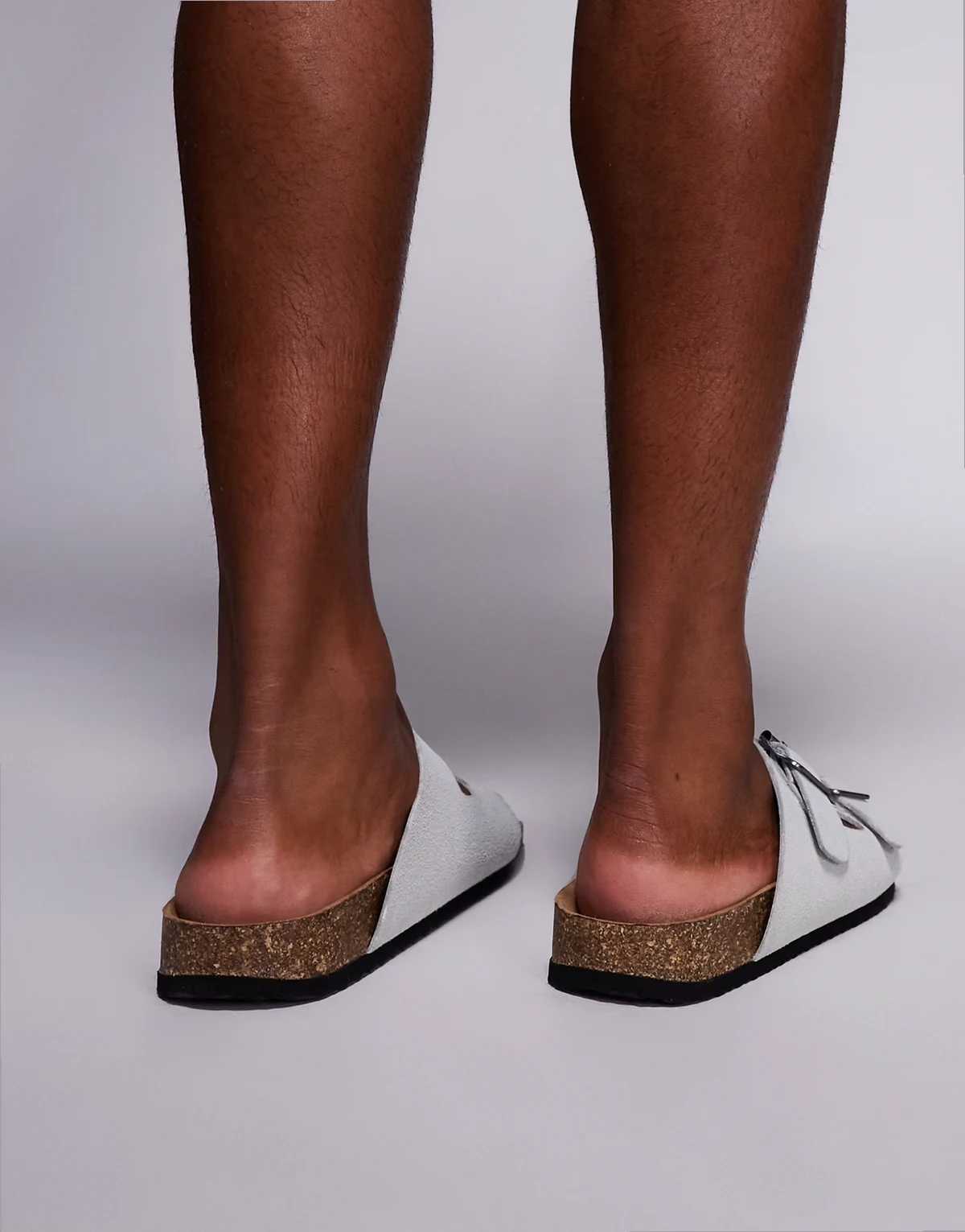 – Sandalen in Grau mit zwei Riemen und Korksohle