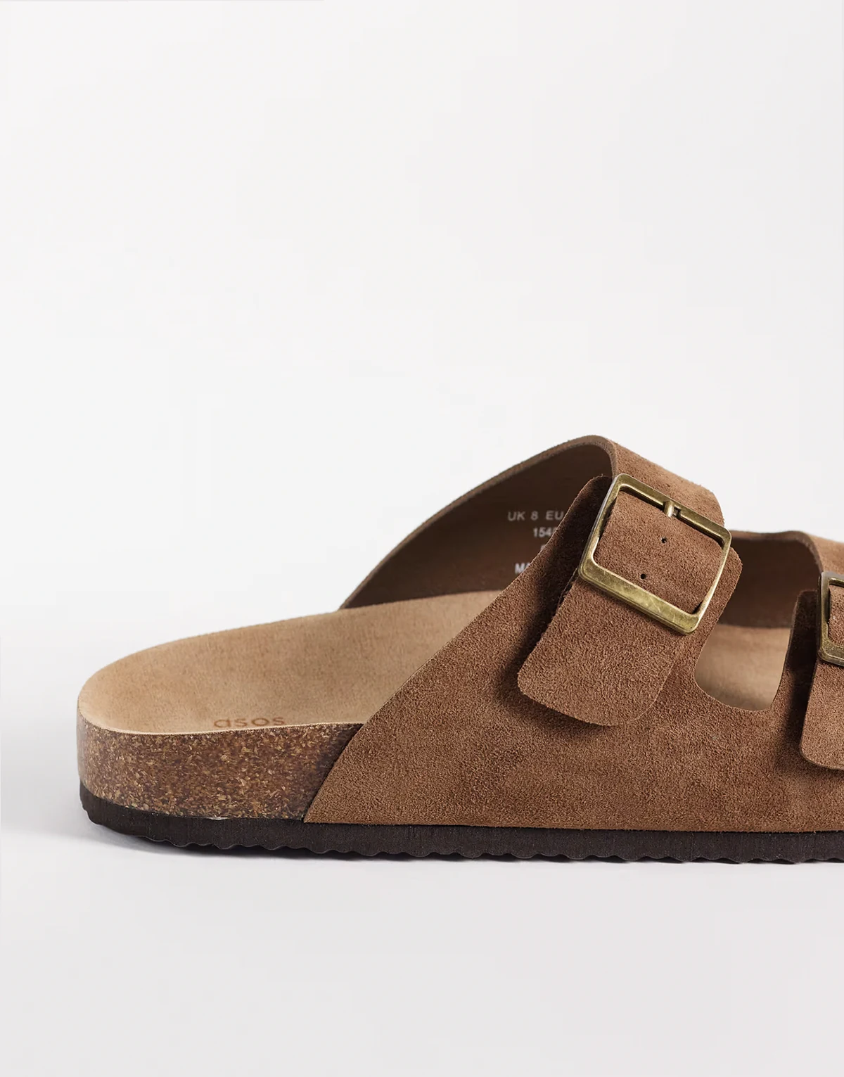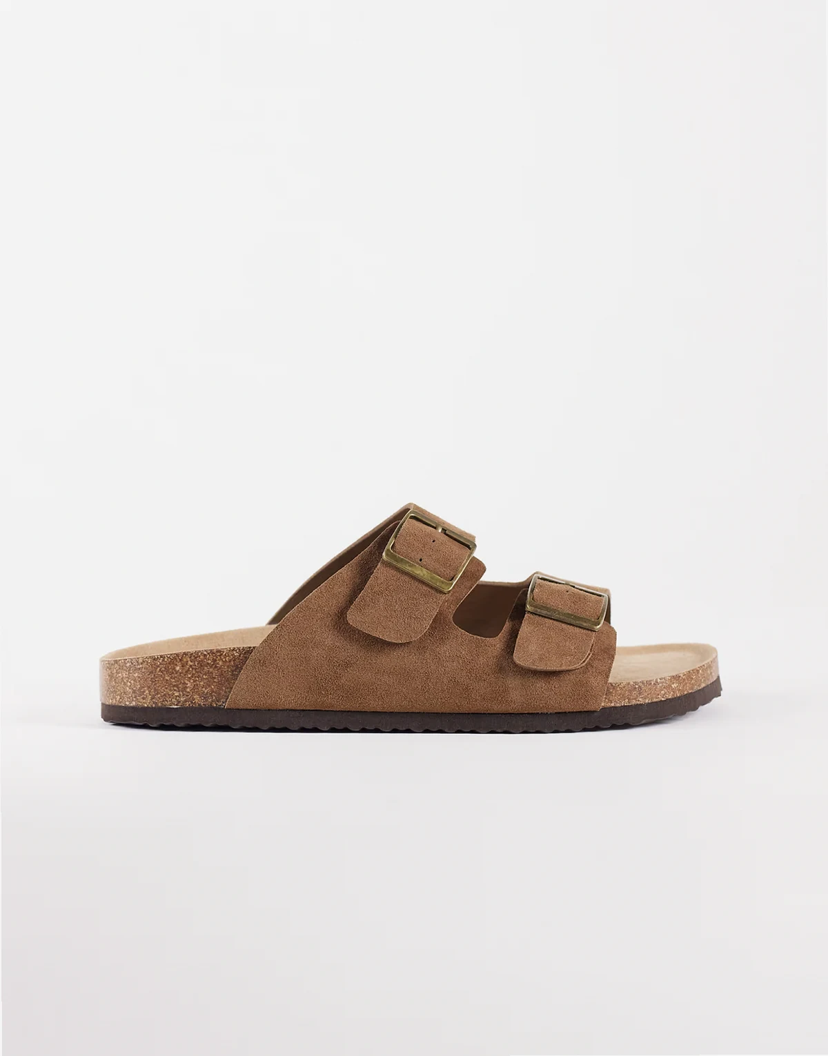 – Sandalen aus verstärktem Wildleder in Maulwurfbraun mit zwei Riemen und Korksohle