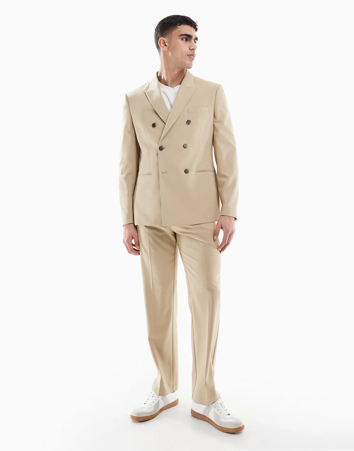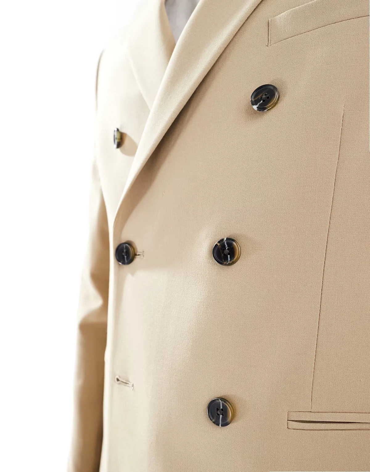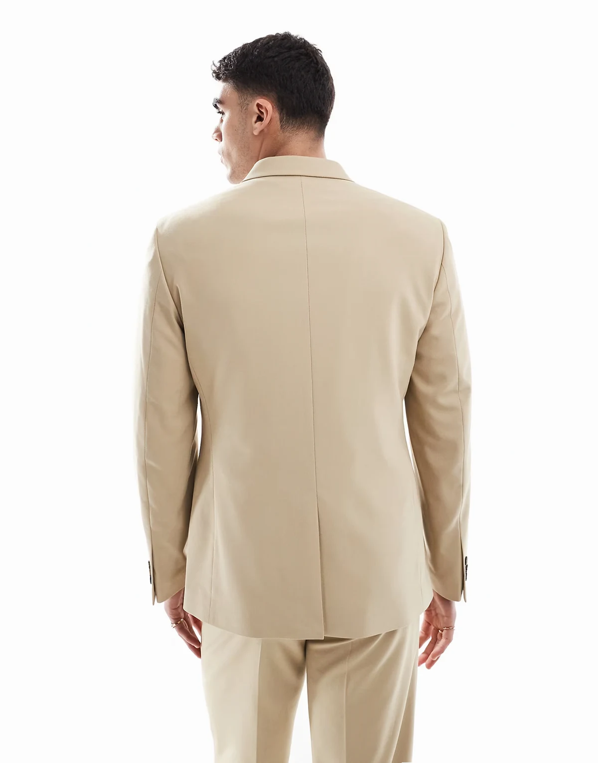 – Zweireihige Anzugjacke mit schmalem Schnitt in Stein