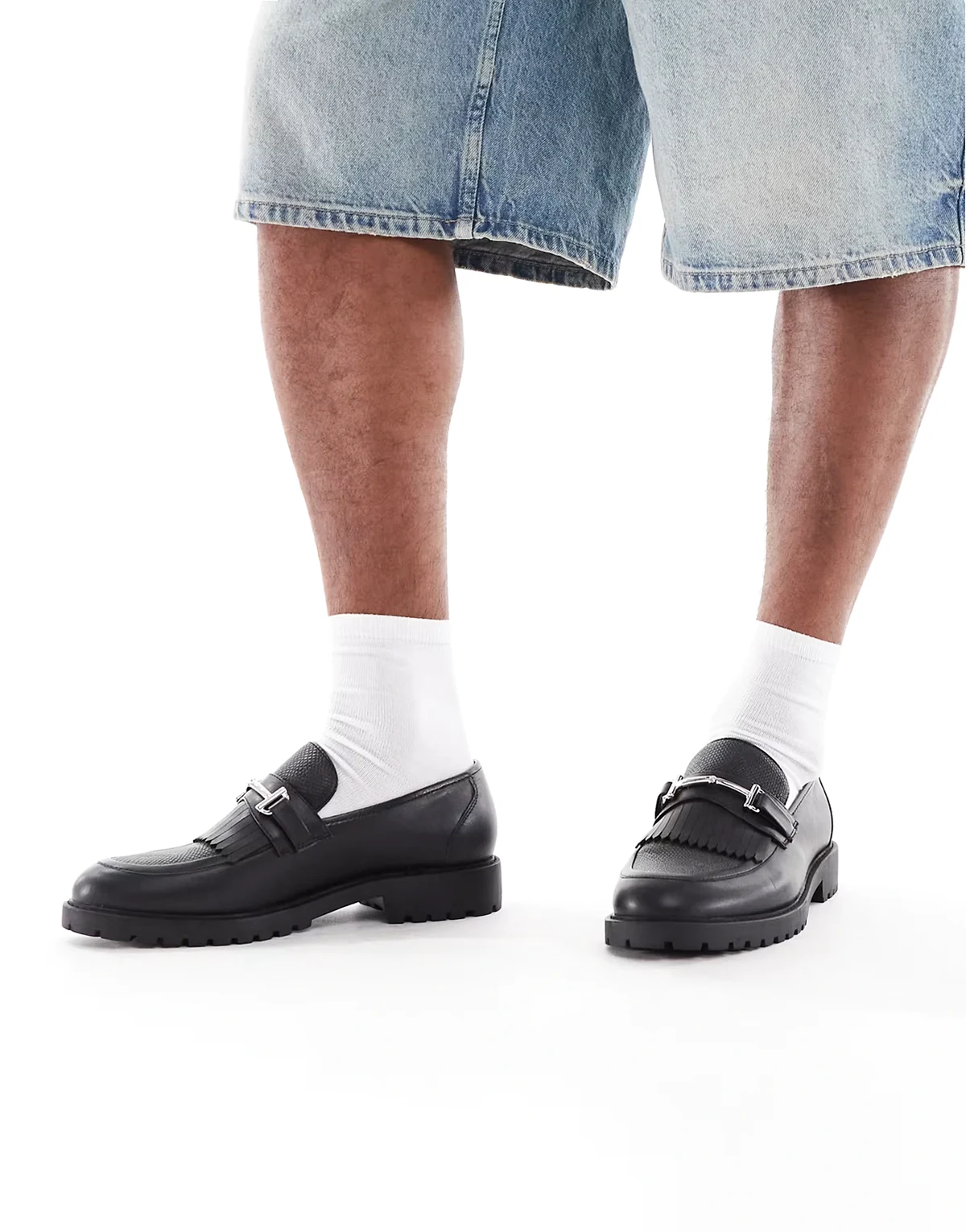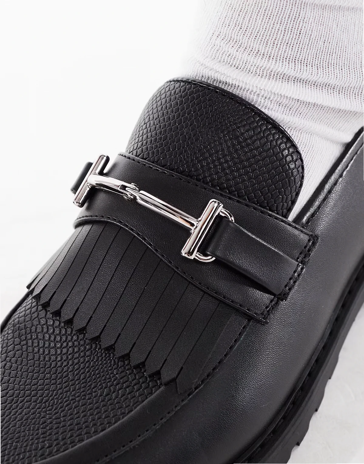 – Schwarze Loafer aus Kunstleder in Kroko-Optik mit Profilsohle und Trensendetail