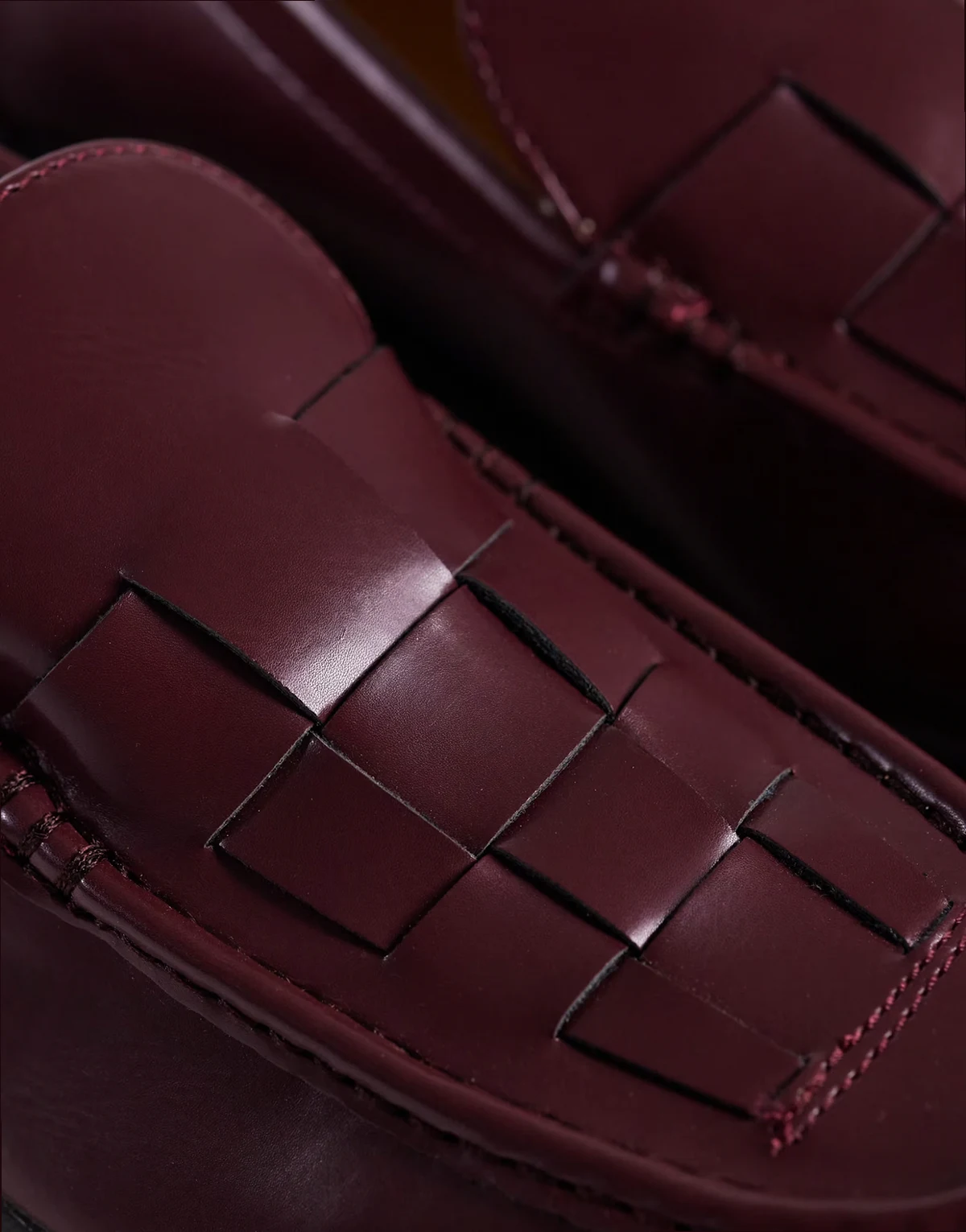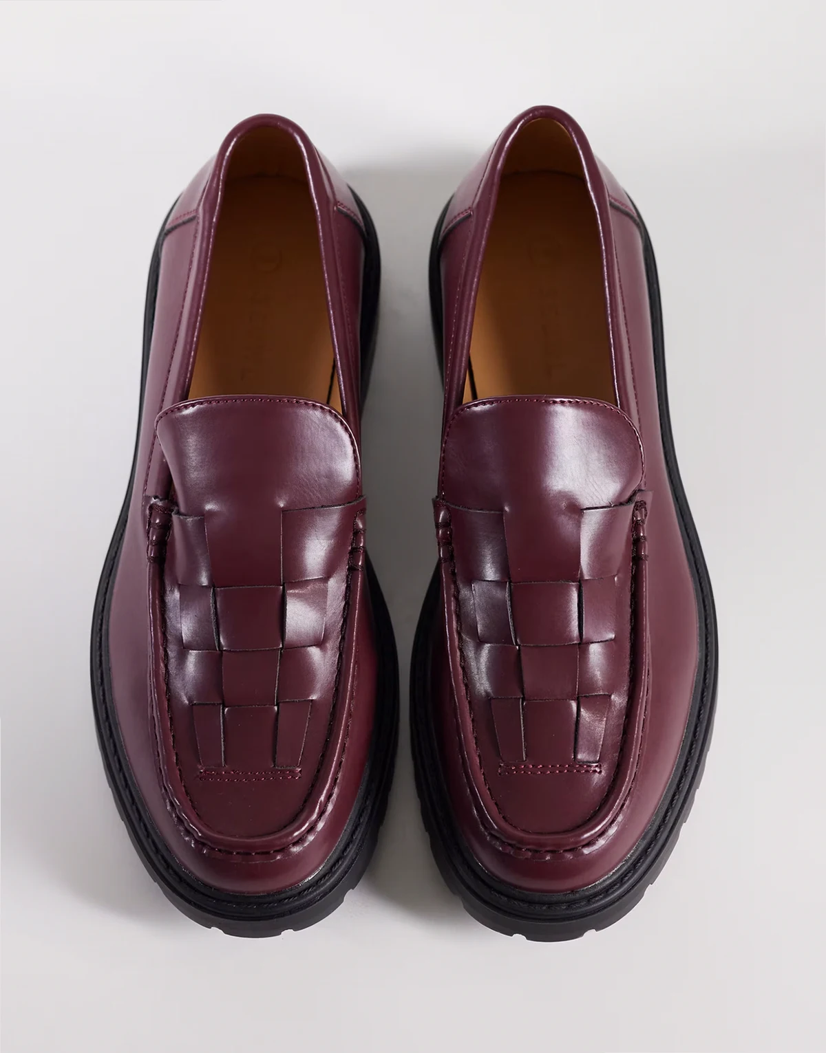 4. – Pier – Loafer in Burgunderrot mit Obermaterial in Flechtoptik und dicker Sohle